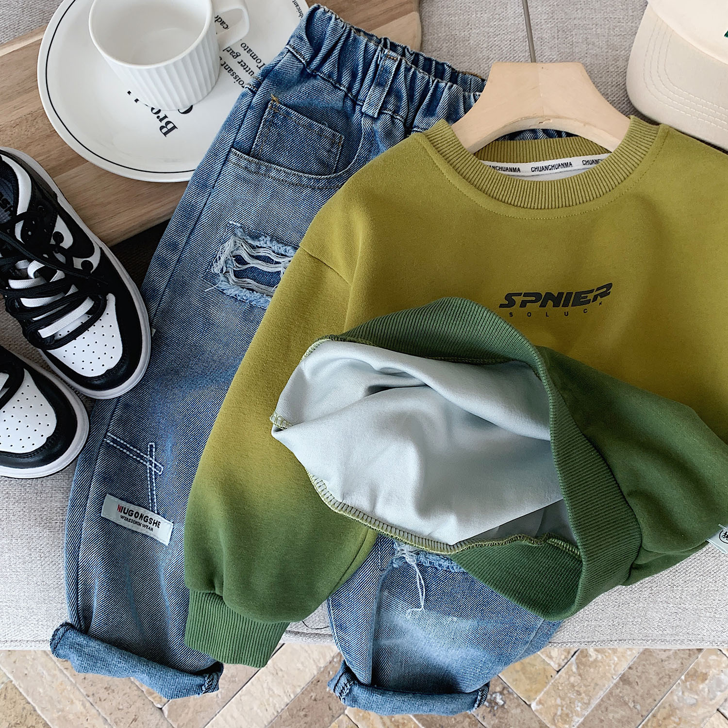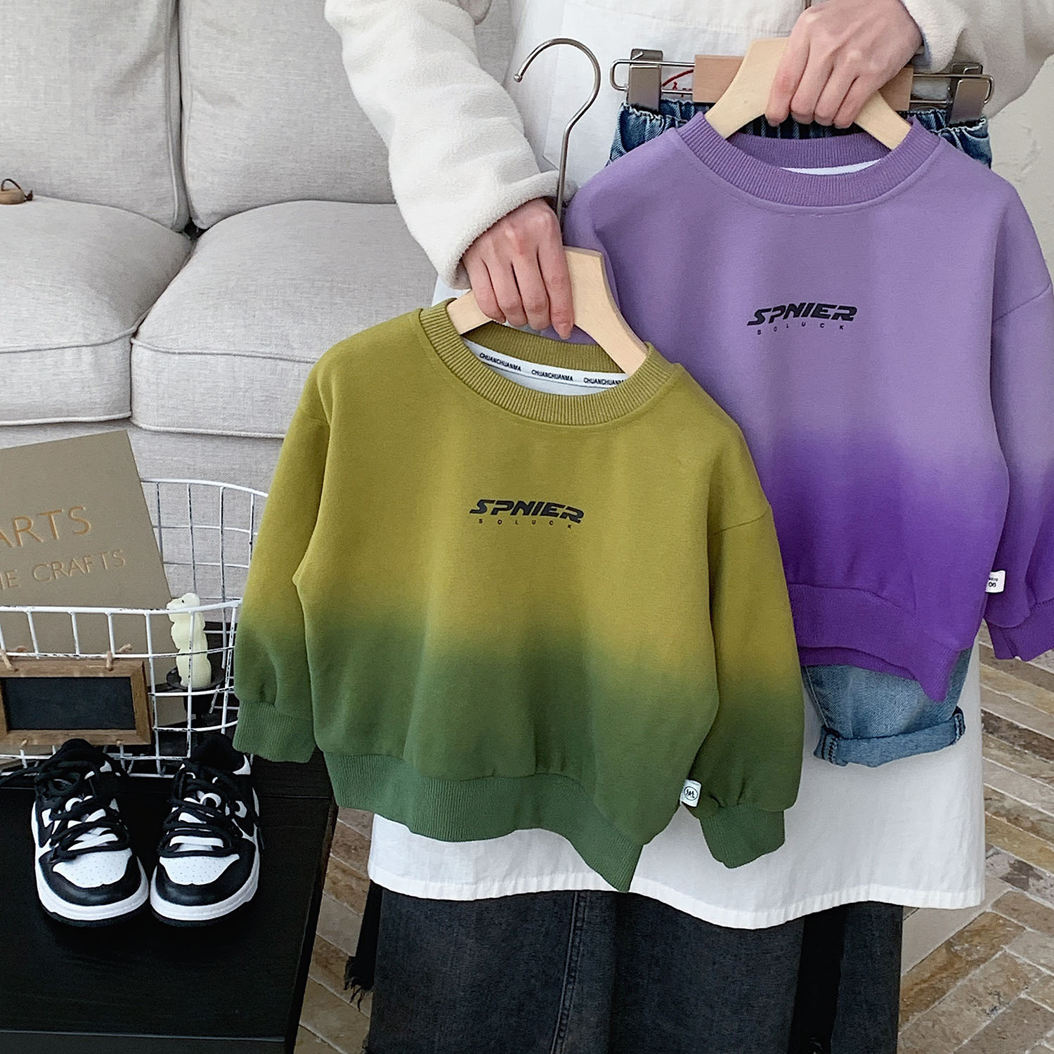 소년의 봄과 가을 그라디언트 스웨트 셔츠 넥타이 염색 새 어린이 봄 옷베이스 크루 넥 긴팔 탑 얇은 서양 스타일