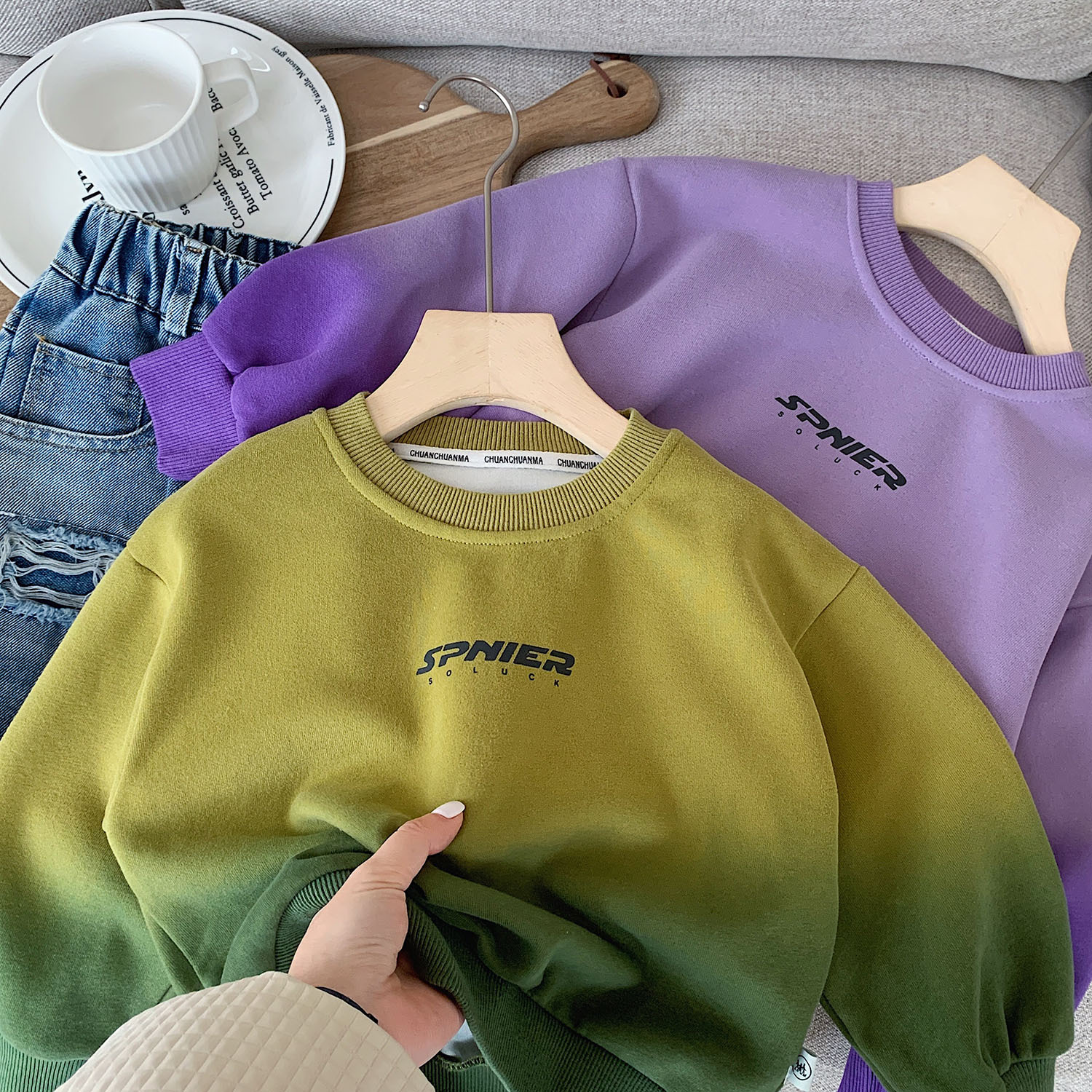 소년의 봄과 가을 그라디언트 스웨트 셔츠 넥타이 염색 새 어린이 봄 옷베이스 크루 넥 긴팔 탑 얇은 서양 스타일스토어 가기