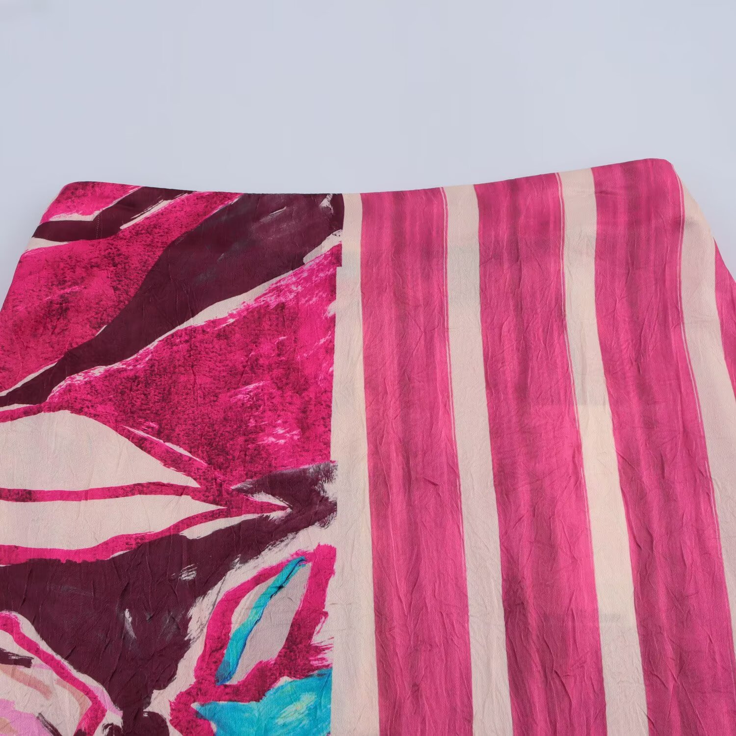 2025 봄 새로운 유럽과 미국의 국경 여성 패션 인쇄 실크 새틴 질감 미디 스커트 w025 1132