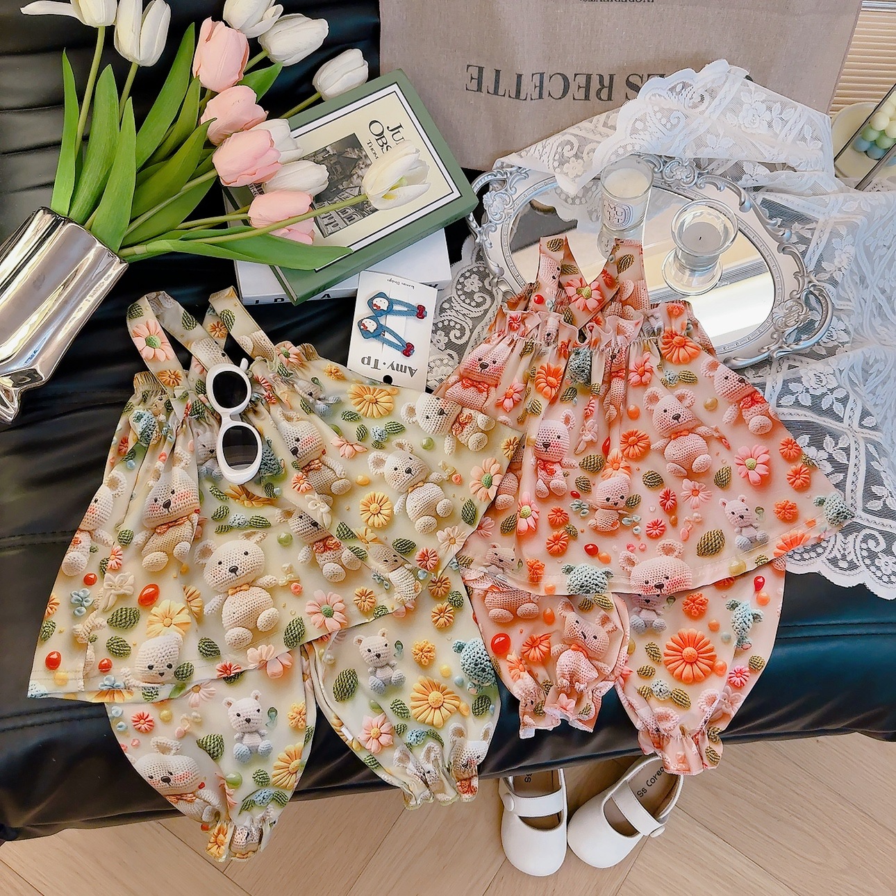 2025 어린이 소녀와 학생 귀여운 달콤한 세트 한국식 올매치 서양식 투피스 세트