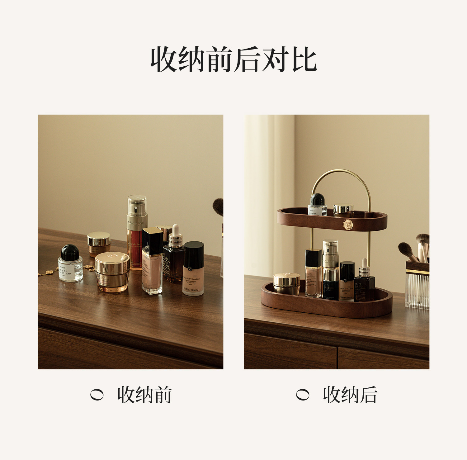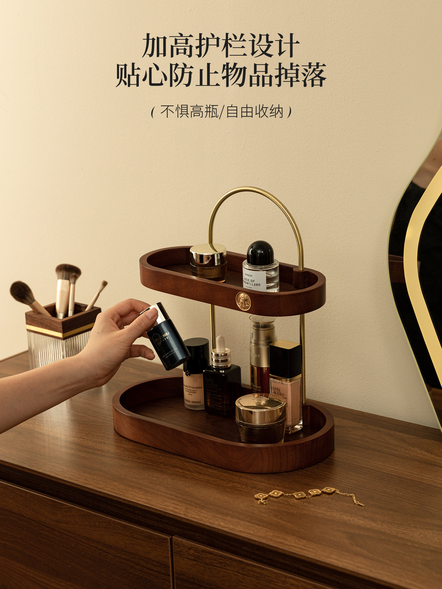화장품 스토리지 박스 데스크탑 향수 립스틱 스토리지 랙 멀티 레이어 솔리드 우드 드레싱 테이블 스킨 케어 쥬얼리 스토리지 랙