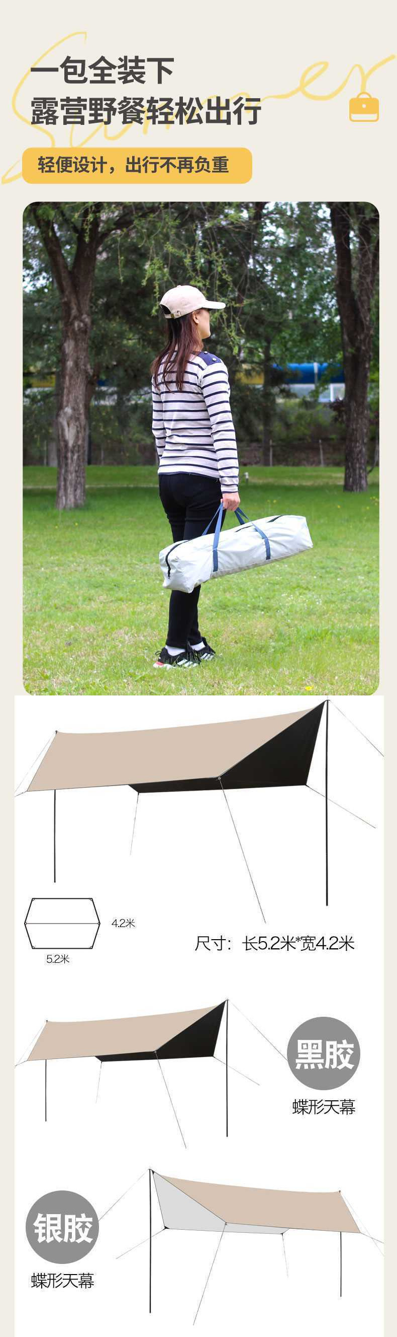 블랙 접착제 실버 코팅 캐노피 텐트 야외 대형 피크닉 이슬 캠핑 장비 전체 세트 나비 선 스크린 어닝 캐노피스토어 가기