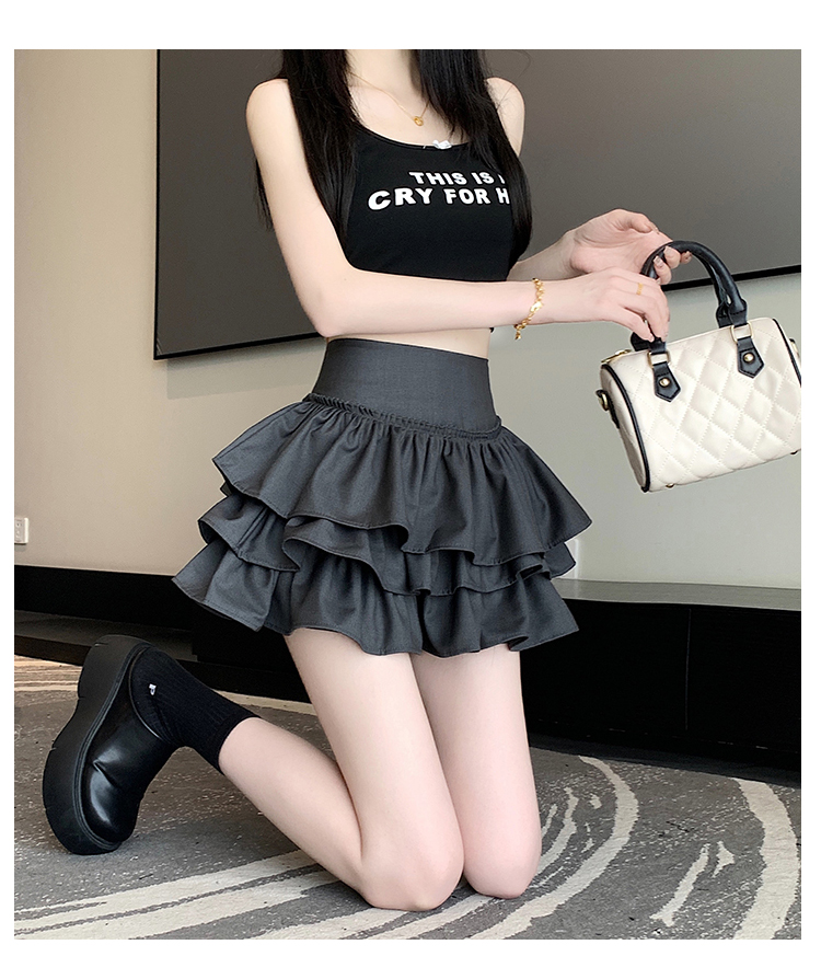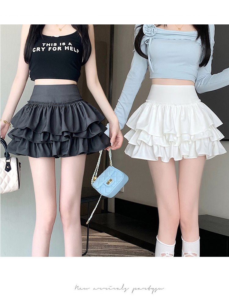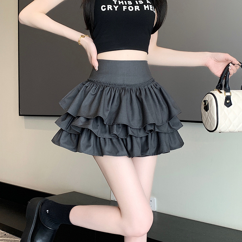 검은 짧은 치마 여름 발레 스타일 퍼프 러플 케이크 스커트 여성용 쁘띠 우아한 높은 허리 A 라인 스커트