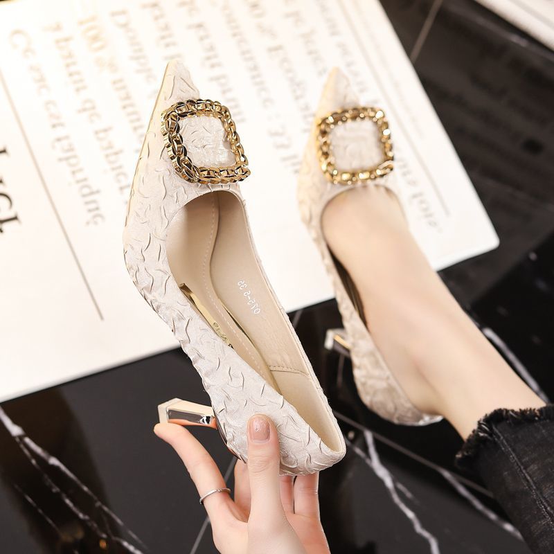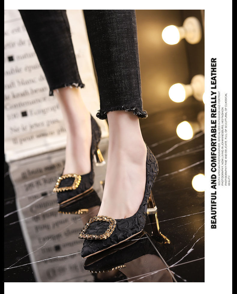 한국식 스퀘어 버클 포인팅 스틸레토 힐 슈즈 여성 2025 가을 새 도착 쇼로우 입 올매치 페어리 스타일 슈즈 여성용 트렌디스토어 가기
