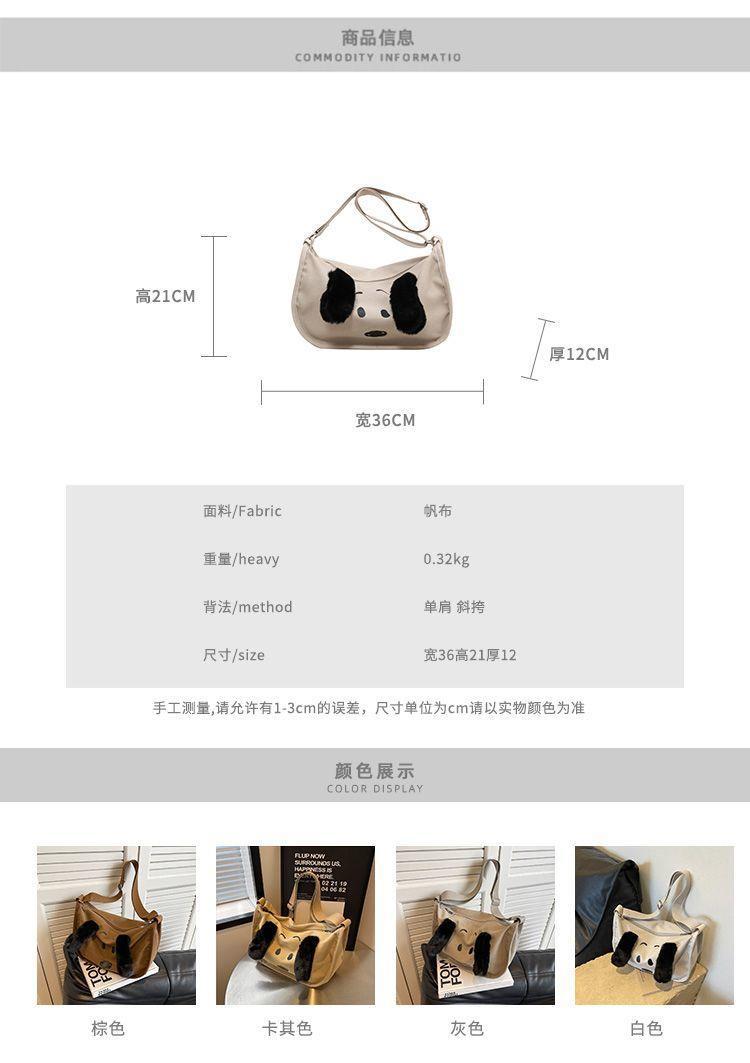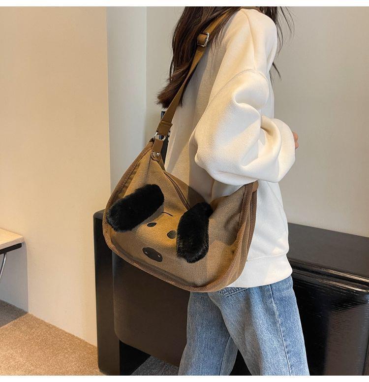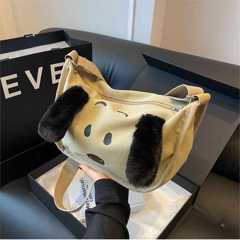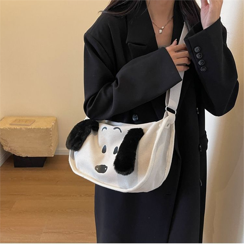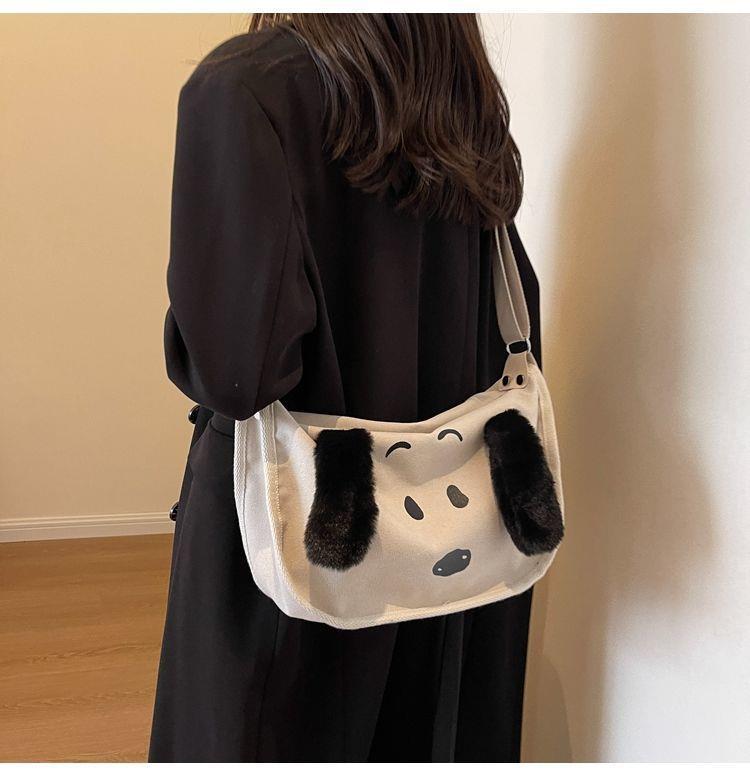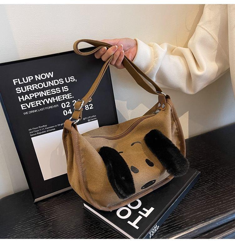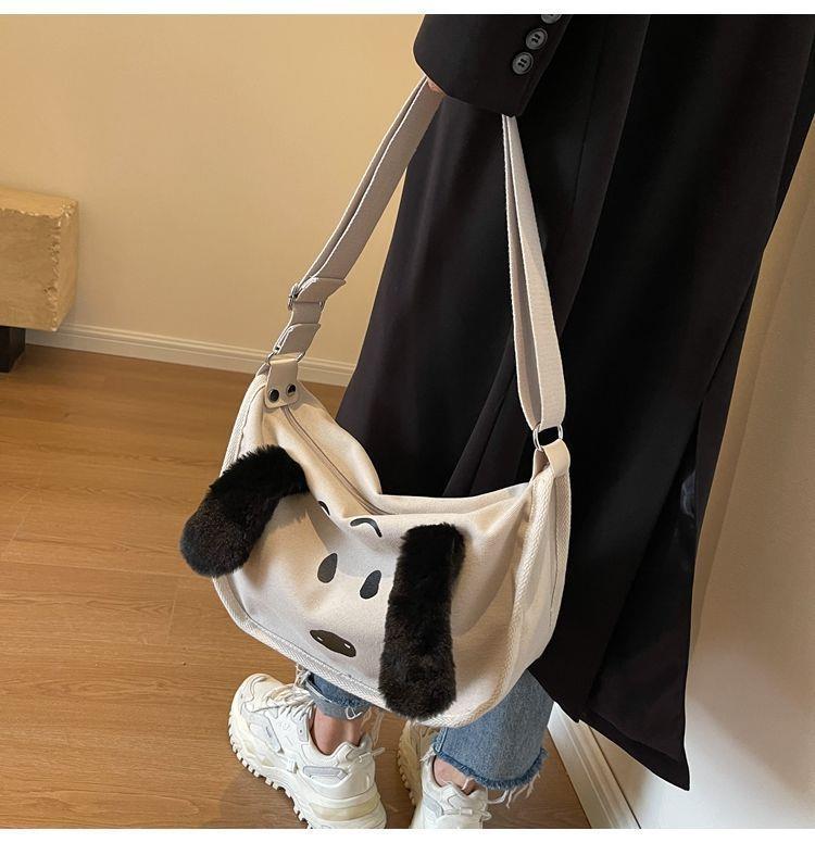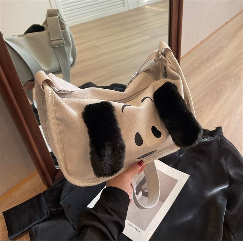 귀여운 만화 강아지 가방 2023 새로운 일본 스타일 올 매치 캐주얼 어깨 크로스 바디 가방 대용량 토트스토어 가기