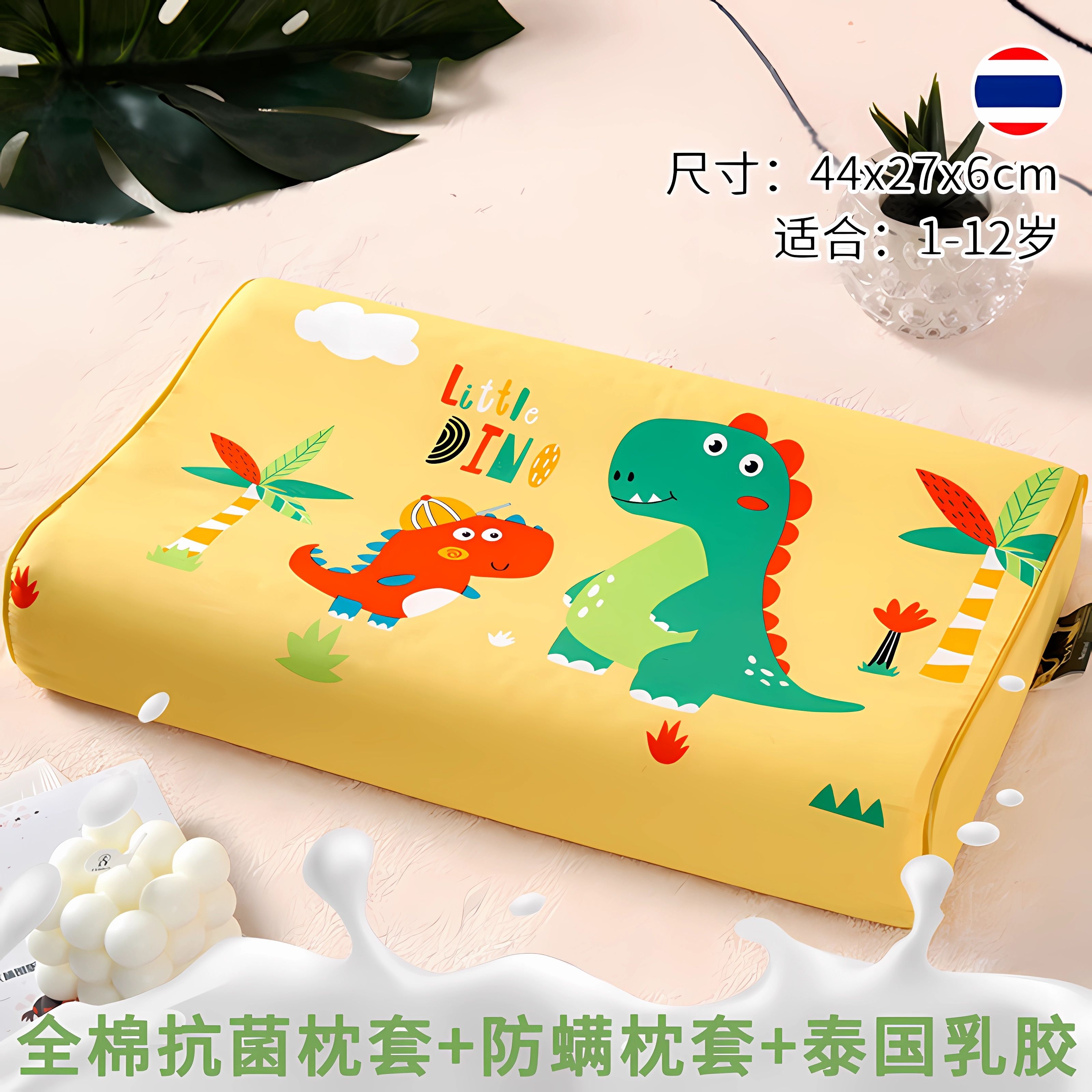 • 업그레이드된 라텍스 베개 + 공룡 형제 노란색 + 무료 순면 베갯잇