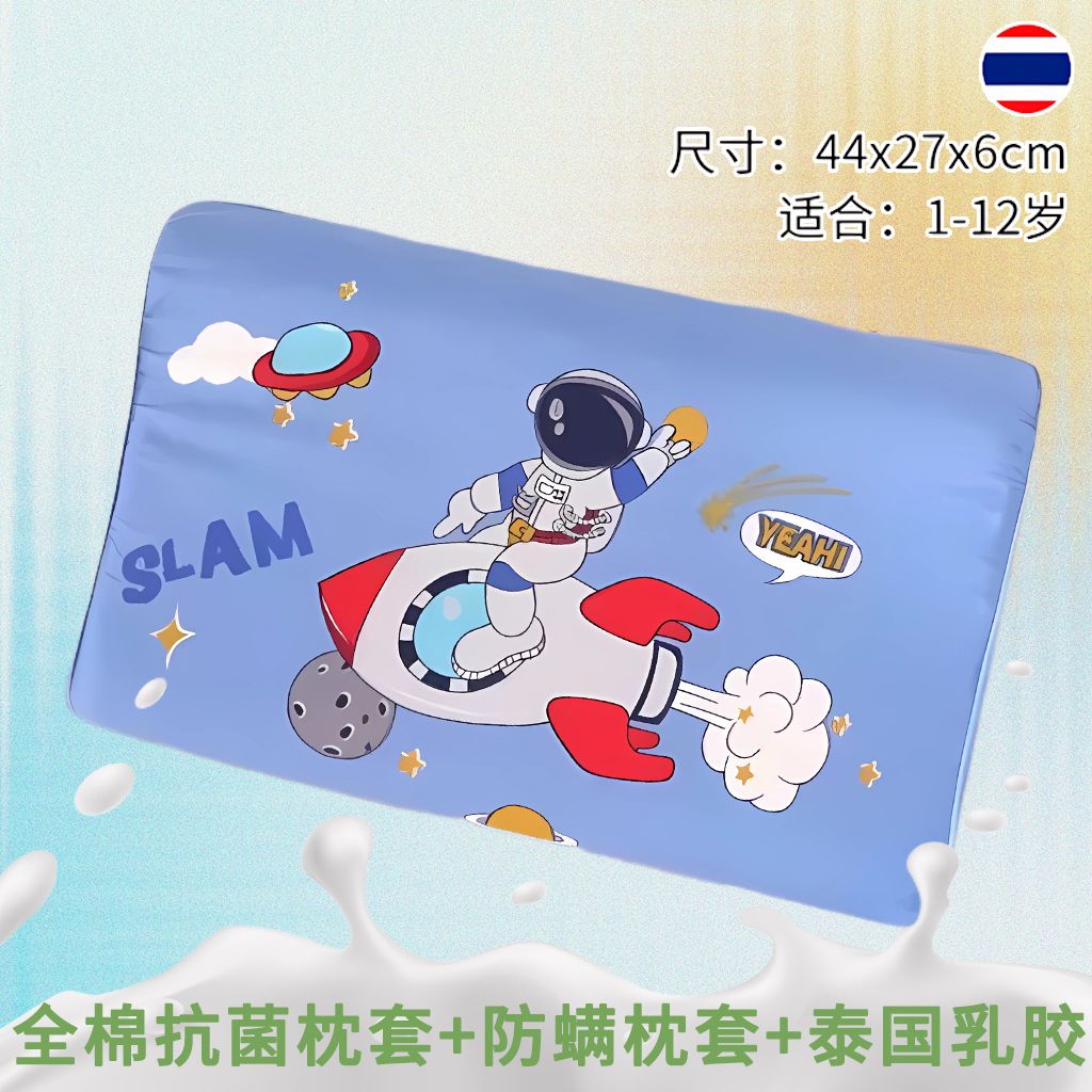 • 업그레이드된 라텍스 베개 + 파란색 우주 비행사 + 무료 순면 베갯잇