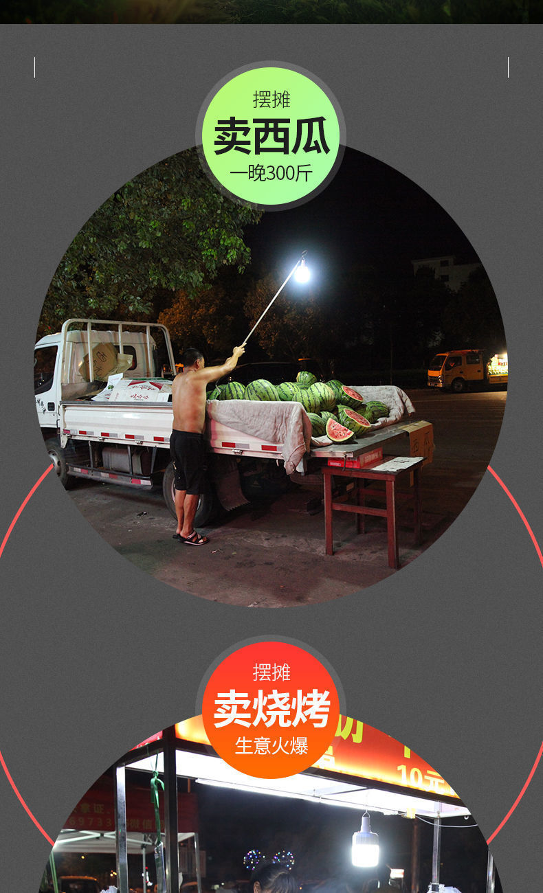 슈퍼 밝은 LED 충전식 전구 야외 모바일 야시장 램프 스톨 조명 홈 정전 비상 무선 램프 대외 무역