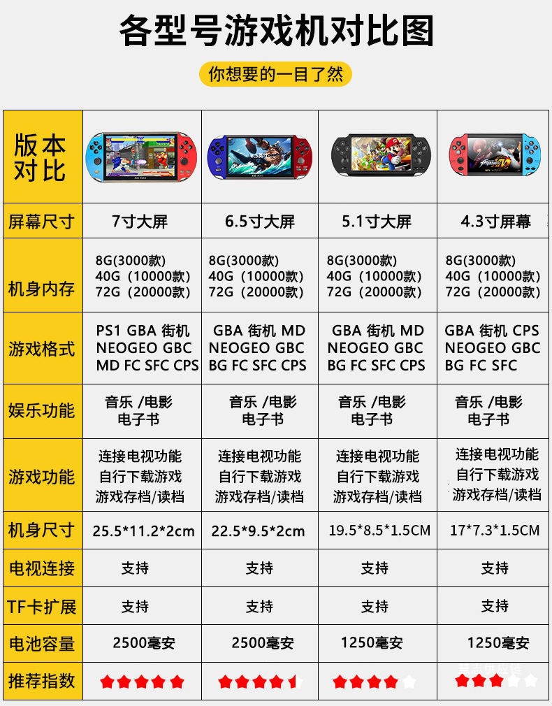 • 6.5inch 빨간색 및 파란색 더블 버전 + 컨트롤러 2개 - 8G(3000 게임)