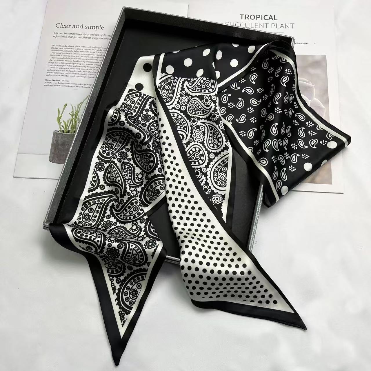 긴 실크 스카프 여성 하이 엔드 작은 광장 스카프 봄과 가을 여름 검은 목 보호 스카프 일치하는 셔츠 리본 넥타이스토어 가기