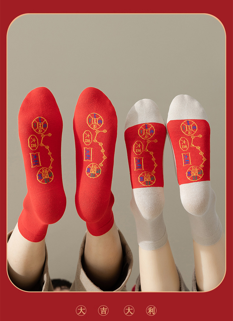 페달 세븐 스타 양말 비즈 양말 큰 빨간 구리 돈 걷는 양말 올해 뱀 남자의 해 결혼식 순면 양말