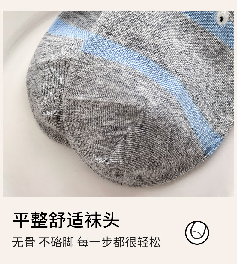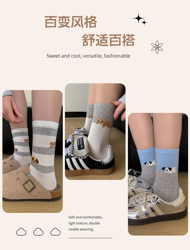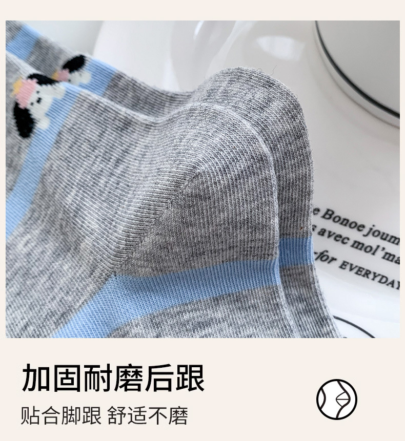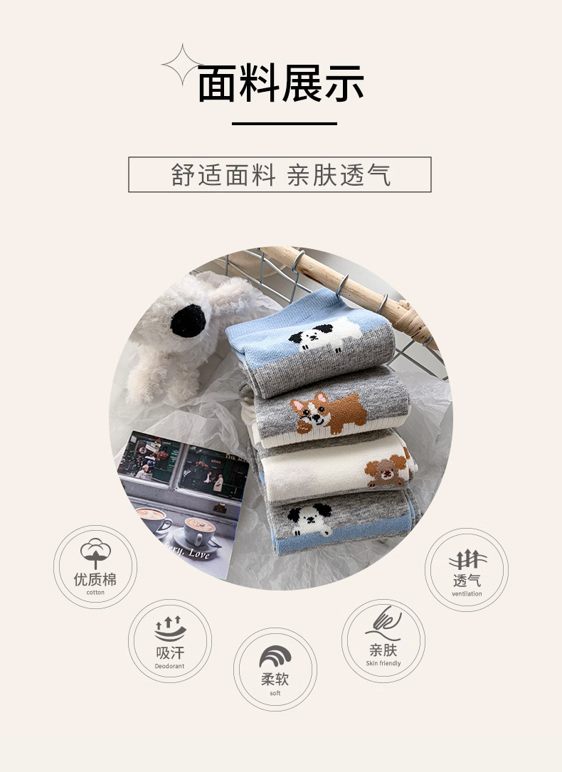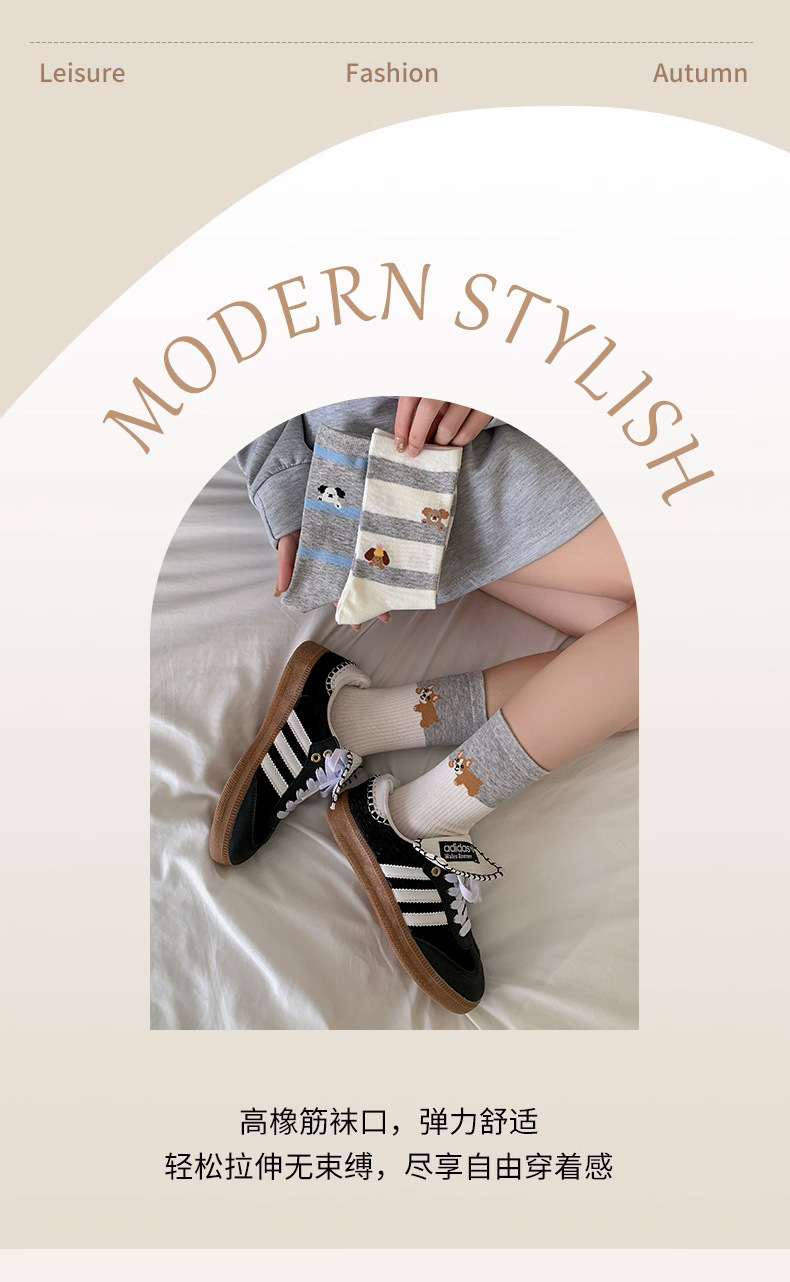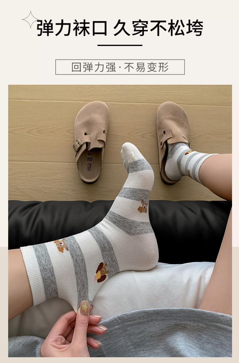 블루 그레이 양말 여성 봄과 여름 새로운 대학 스타일 스트라이프 미드 튜브 양말 만화 강아지 스택 양말 땀 흡수 뼈없는 양말