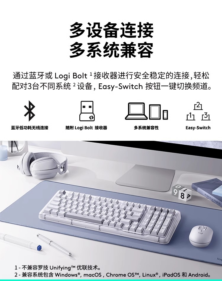 새로운 Logitech Logitech K98M 무선 기계식 키보드 AI 맞춤형 블루투스 e 스포츠 게임 핫 플러그스토어 가기