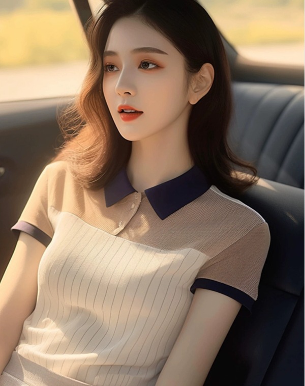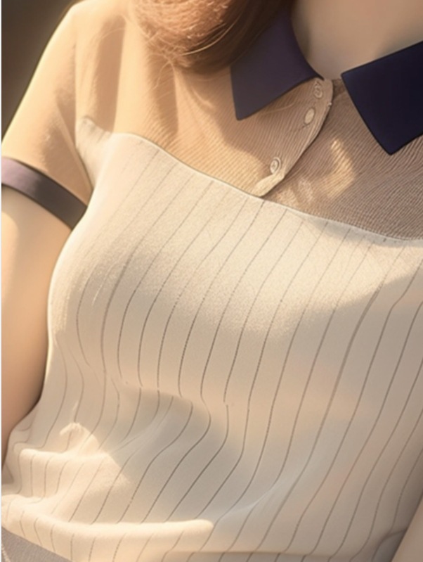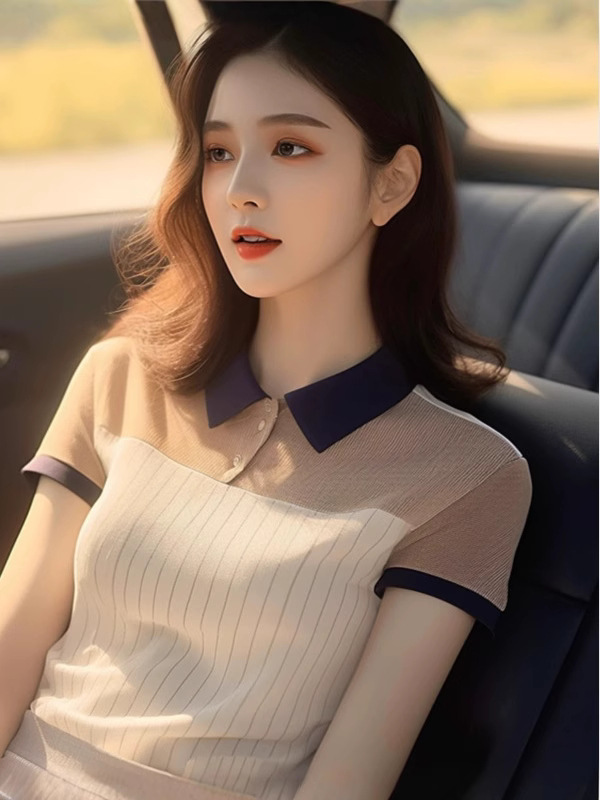 여름 세련된 레트로 홍콩 스타일 세련된 컬러 블록 슬림 핏 폴로 칼라 니트 탑 디자인 센스 틈새 반팔 티셔츠