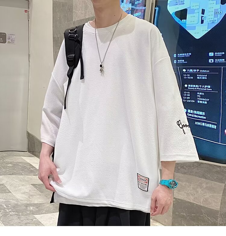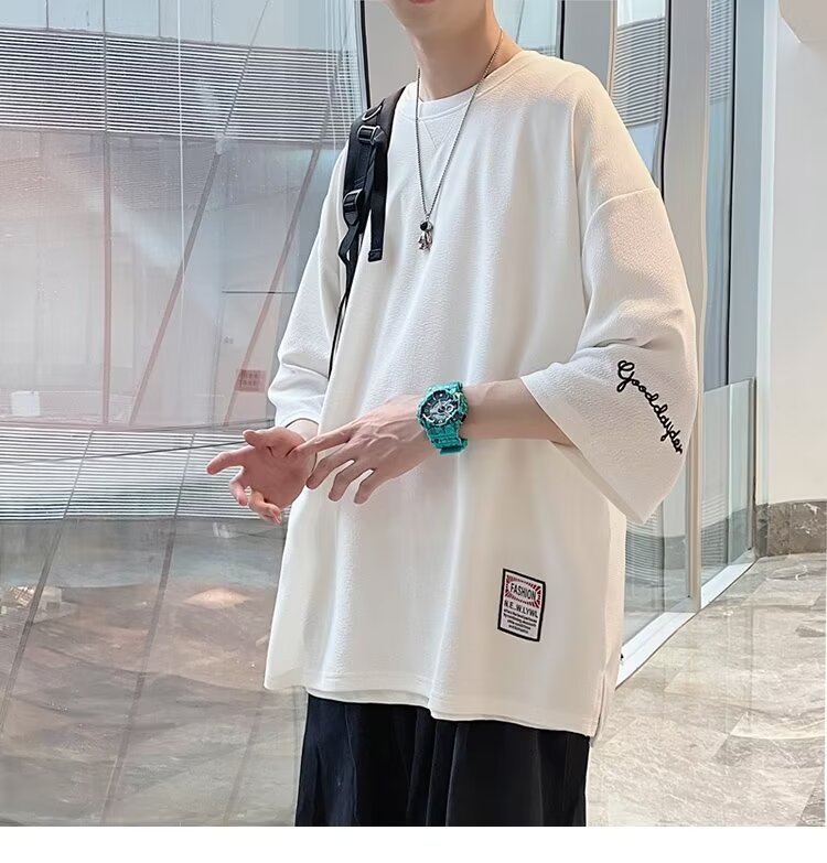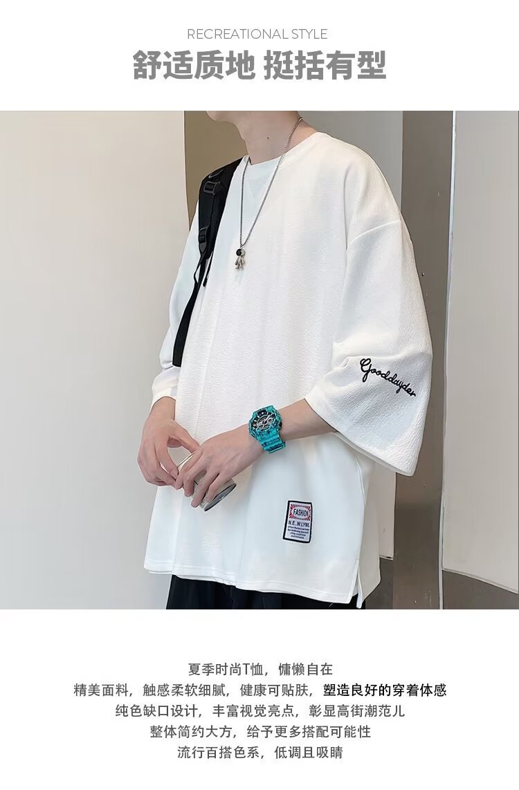 세븐 슬리브 티셔츠 남성용 여름 반소매 Ins 인기 브랜드 루즈옷 티셔츠 남성용 2025 새로운베이스 탑