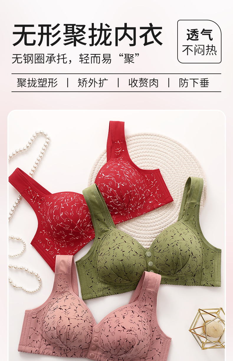 임페리얼 그라스 프론트 버클 중년 및 노인 브라 얇은 속옷 여성용 부드러운면 플러스 사이즈 스틸 링 조끼 속옷스토어 가기