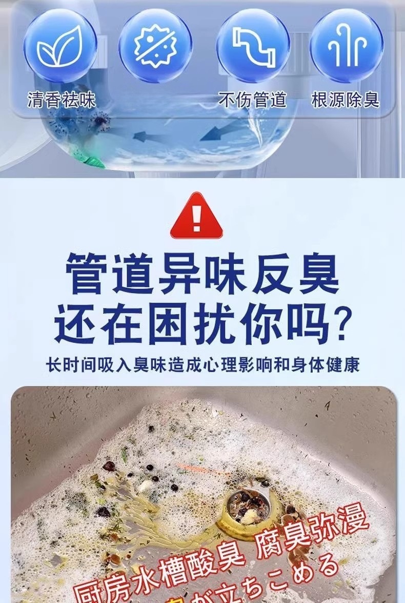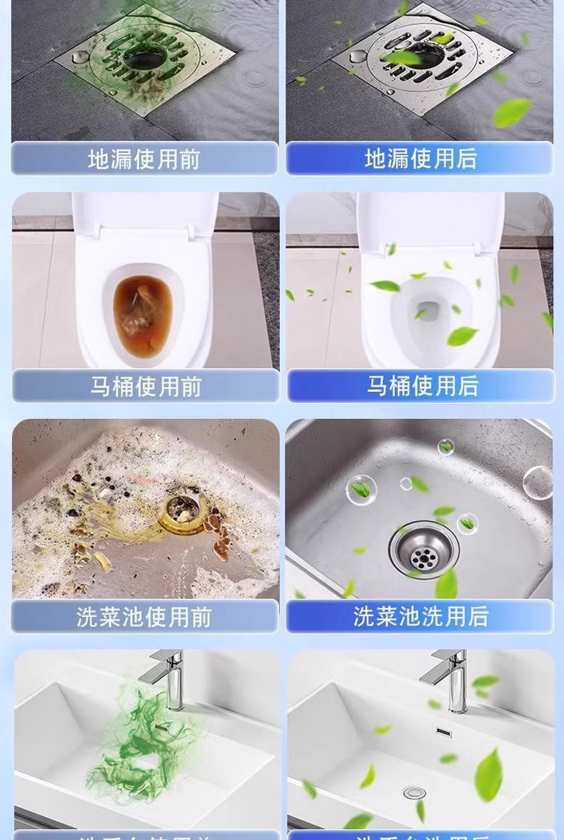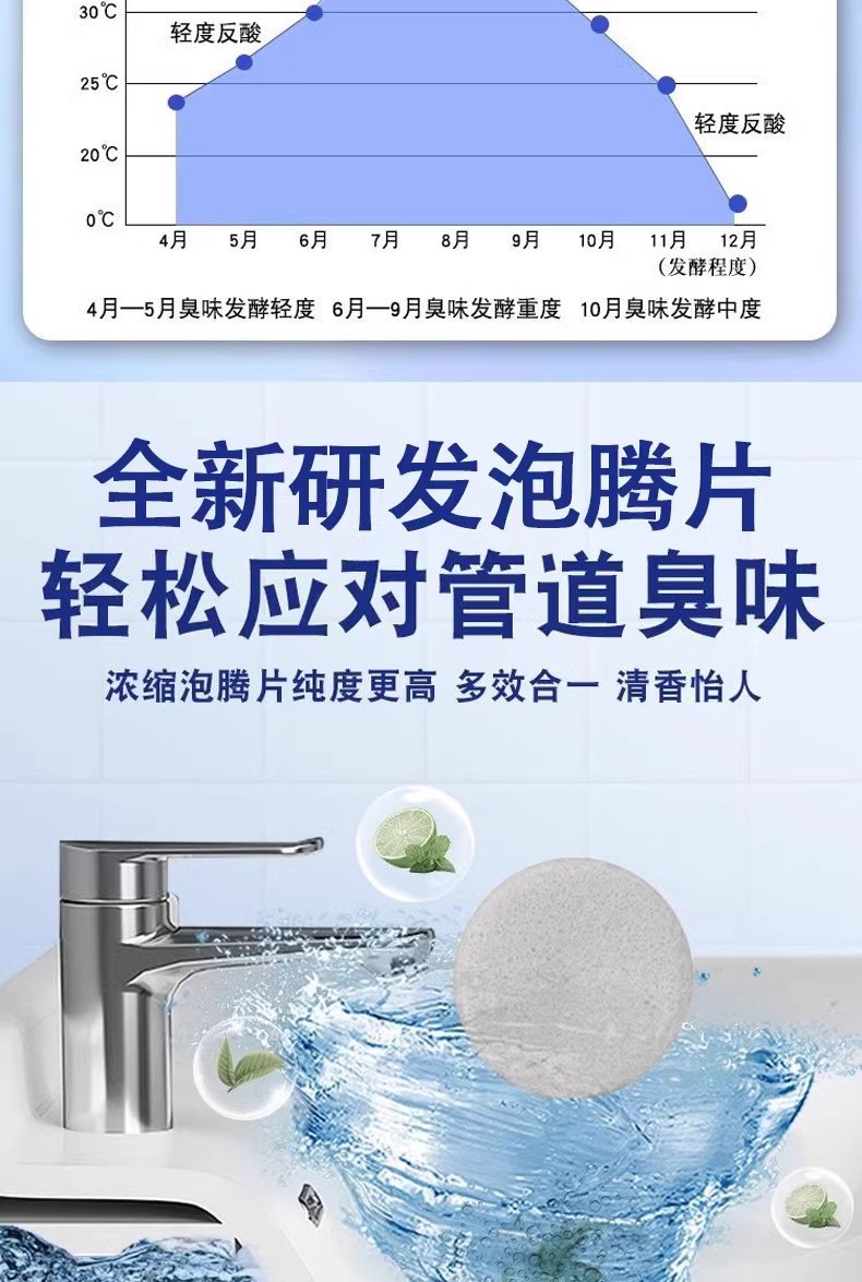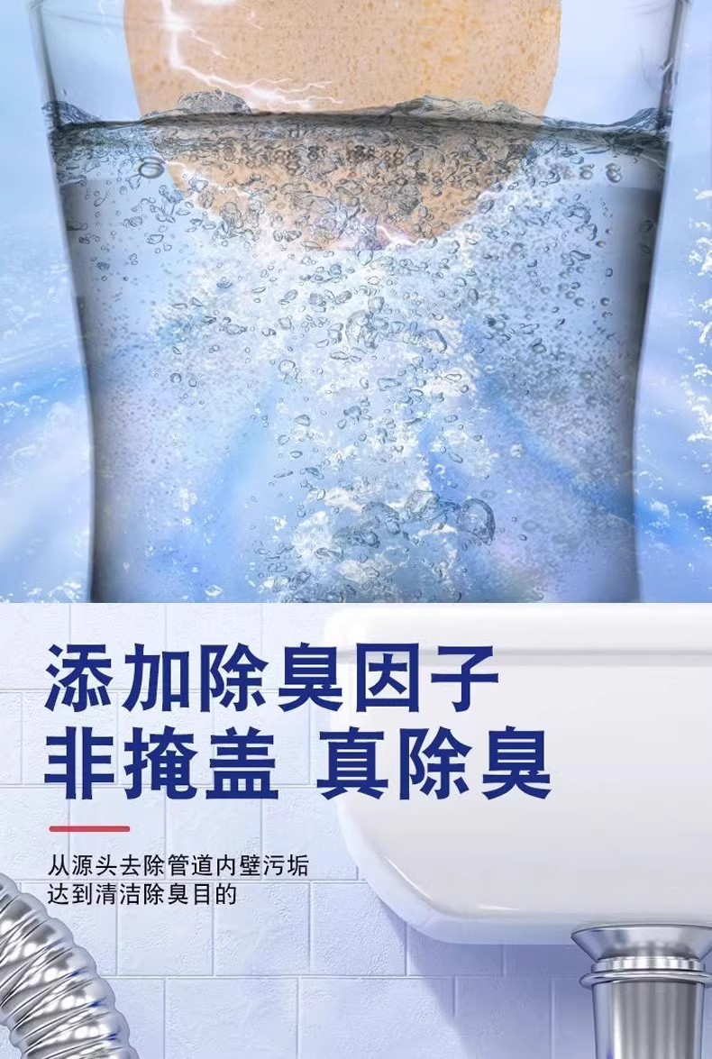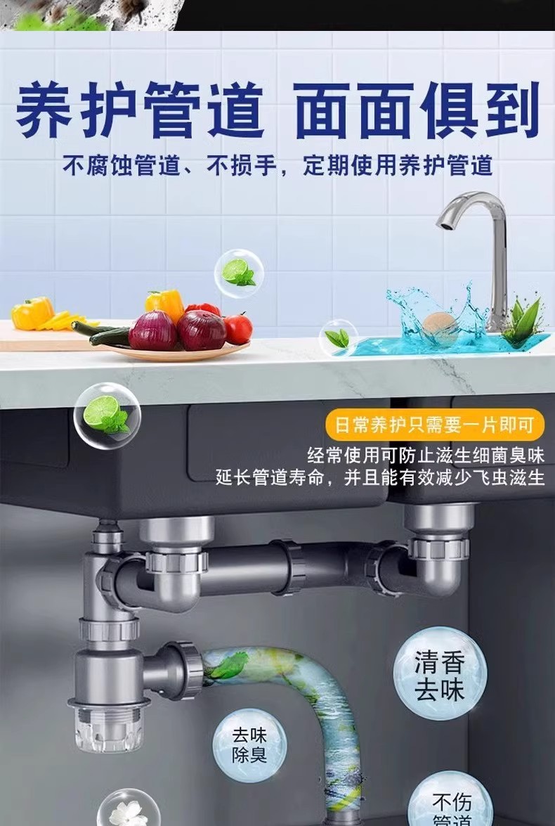 파이프 라인 준설 발포성 정제는 아티팩트 준설제 탈취제를 차단하는 주방 하수도 오일 얼룩 용해제를 강력하게 용해시킵니다.스토어 가기