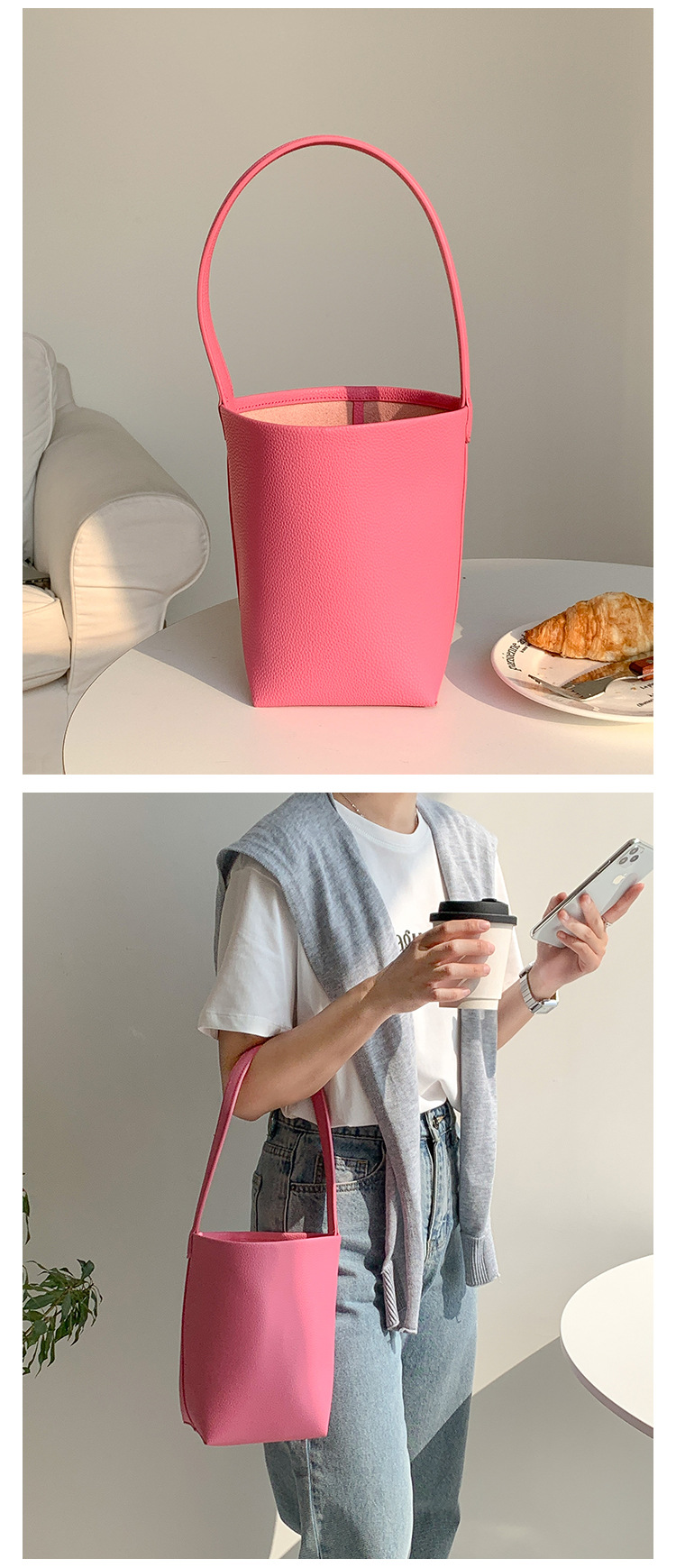 작업 통근 PU 캔디 컬러 실린더 가방 모든 경기 패션 2025 봄과 여름 여성을위한 새로운 어깨 가방 휴대용 버킷 가방스토어 가기