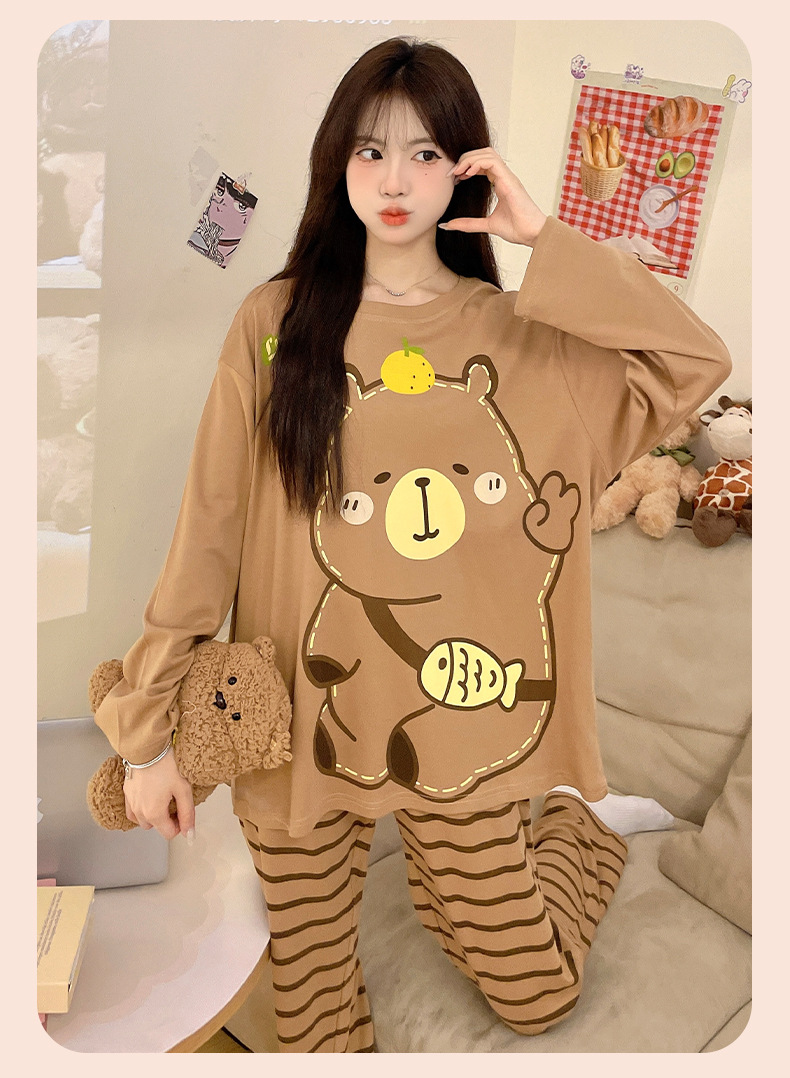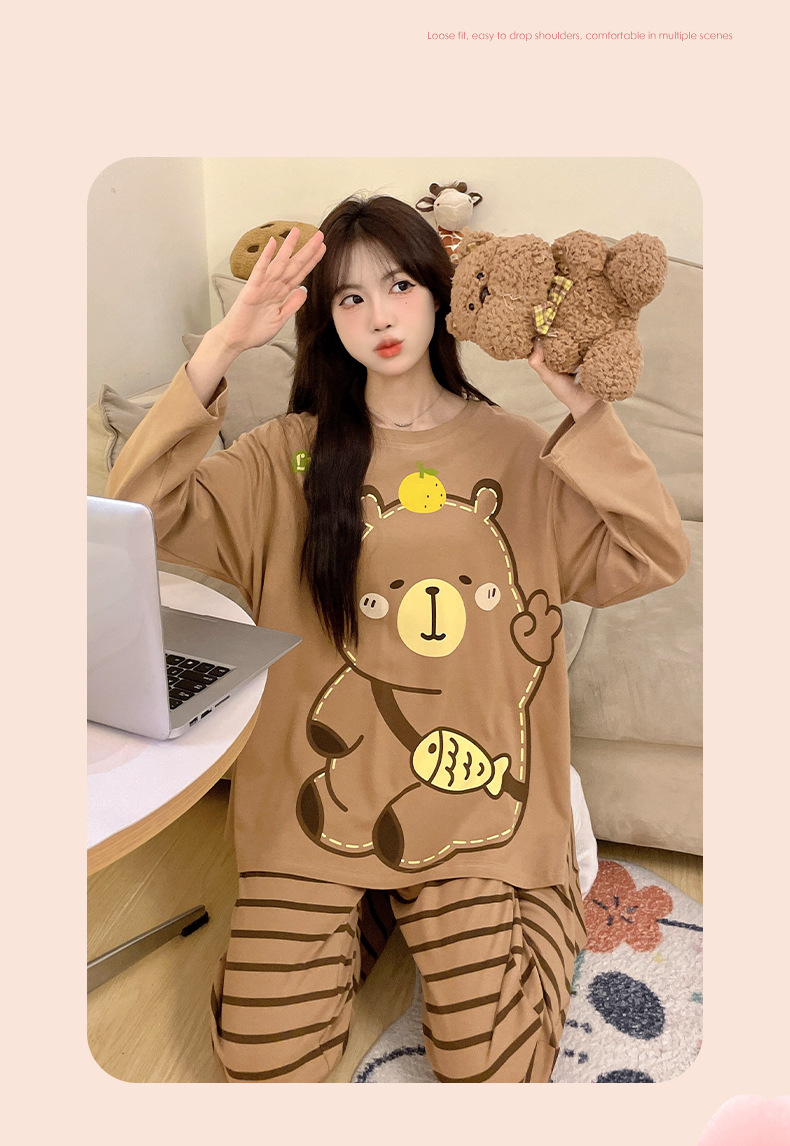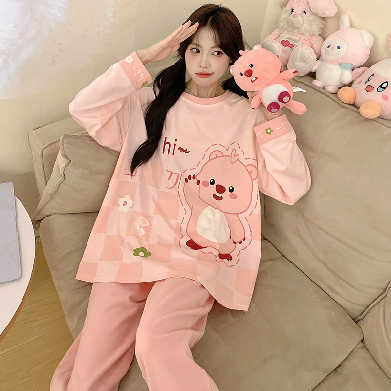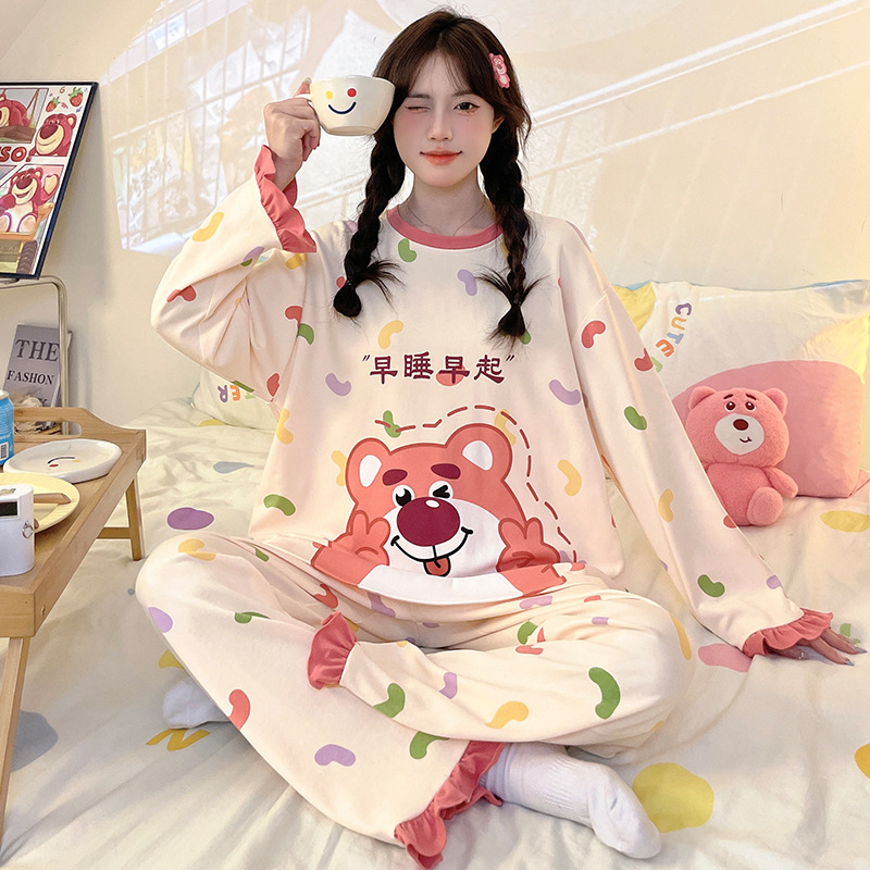 소녀 잠옷 순면 여름 얇은 어린이 소녀 봄과 가을 공주 긴 소매 큰 크기 느슨한 세트스토어 가기