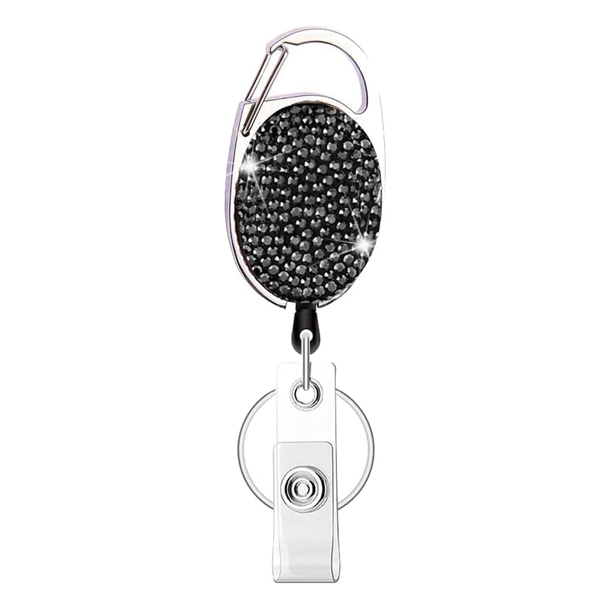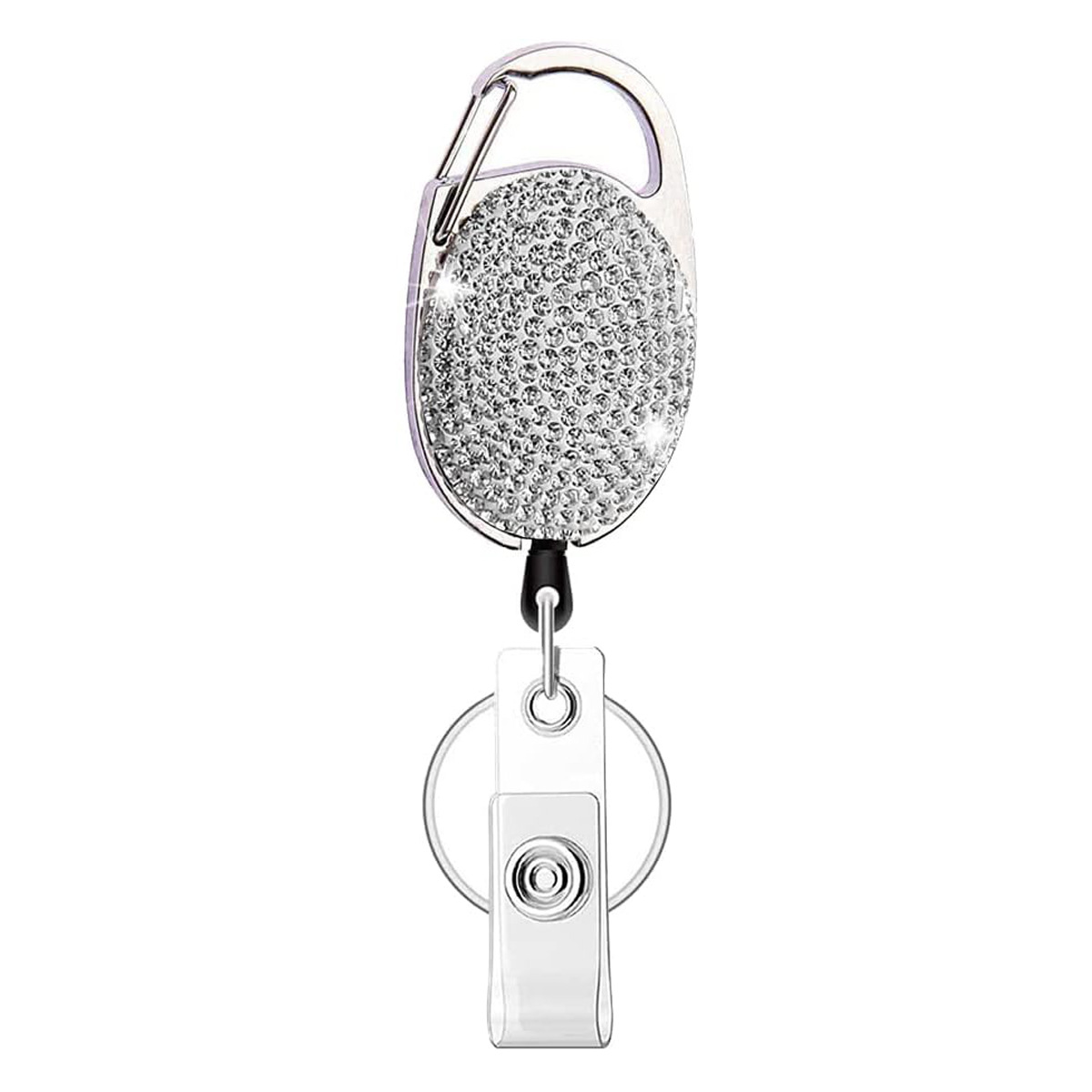 국경 간 빛나는 모조 다이아몬드를 당기기 쉬운 금속 열쇠 고리 의료진 배지 홀더 개폐식 배지 홀더스토어 가기