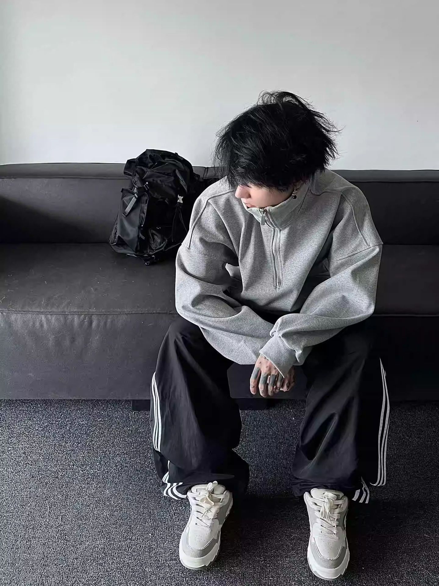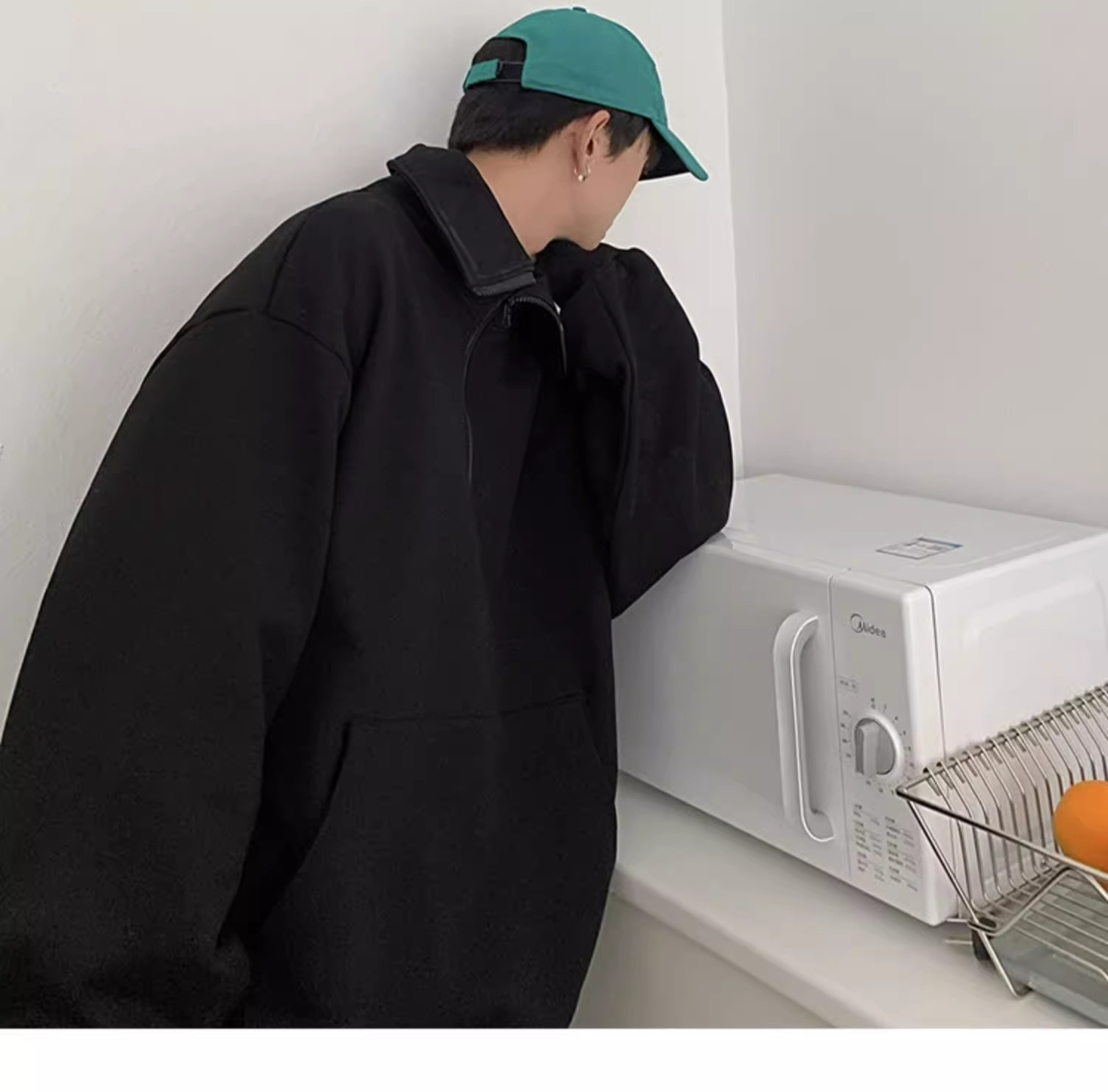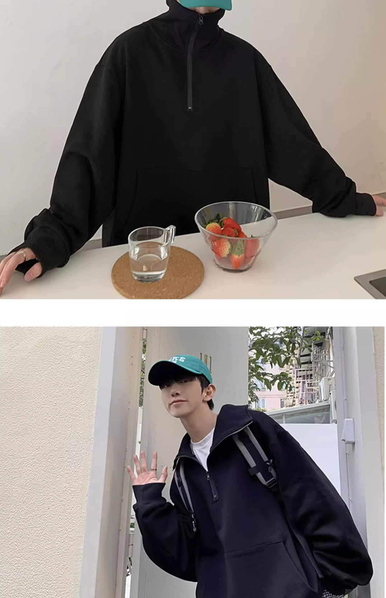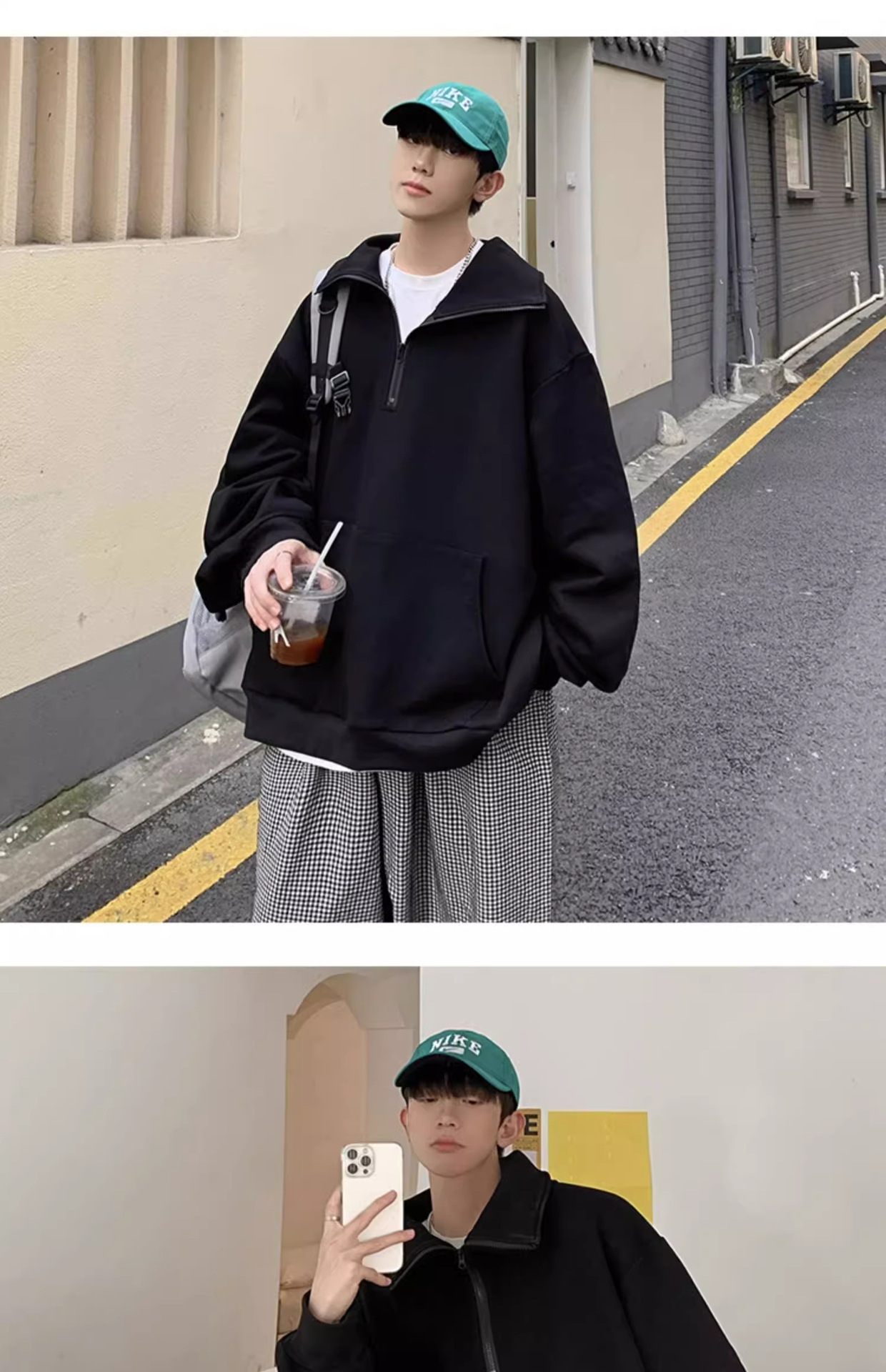 미국 하프 지퍼 스웨터 남자 2024 가을 겨울 새로운 하이 칼라 코트 하이 스트리트 트렌디 브랜드 풀오버 코트 탑스토어 가기
