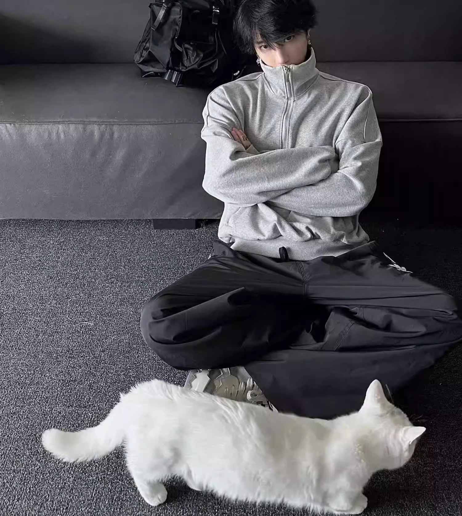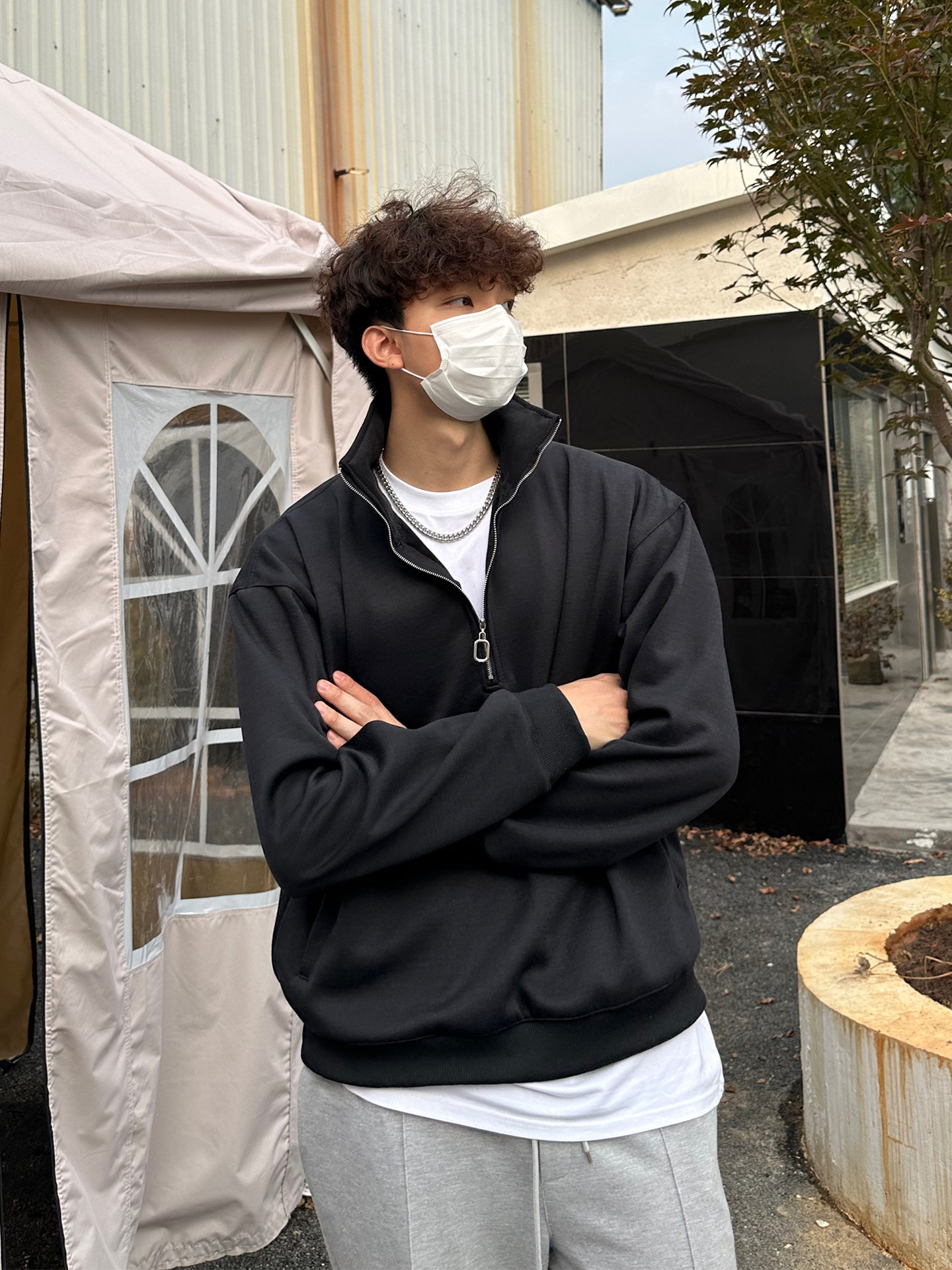 미국 하프 지퍼 스웨터 남자 2024 가을 겨울 새로운 하이 칼라 코트 하이 스트리트 트렌디 브랜드 풀오버 코트 탑
