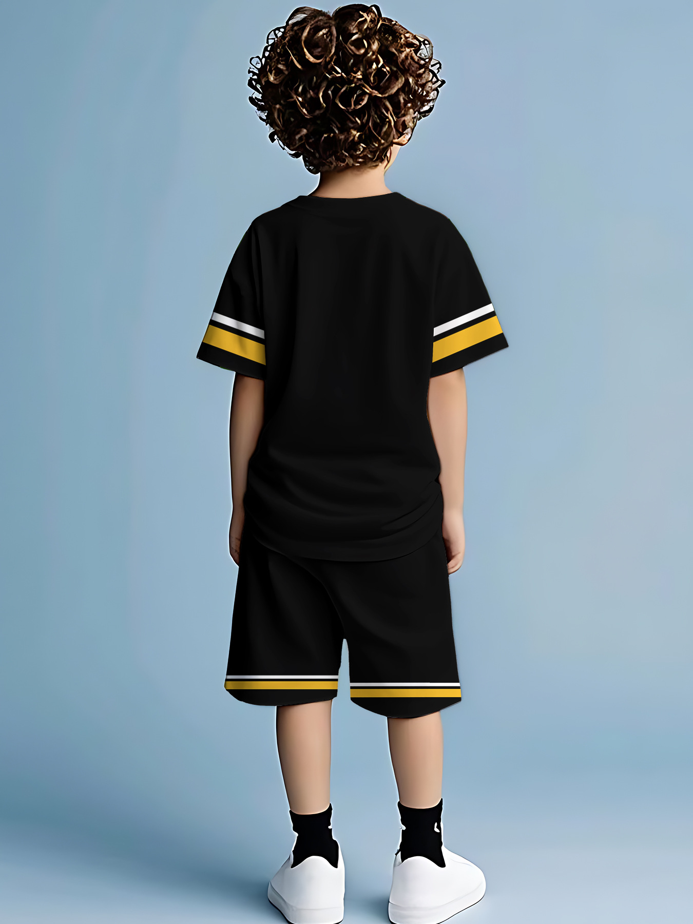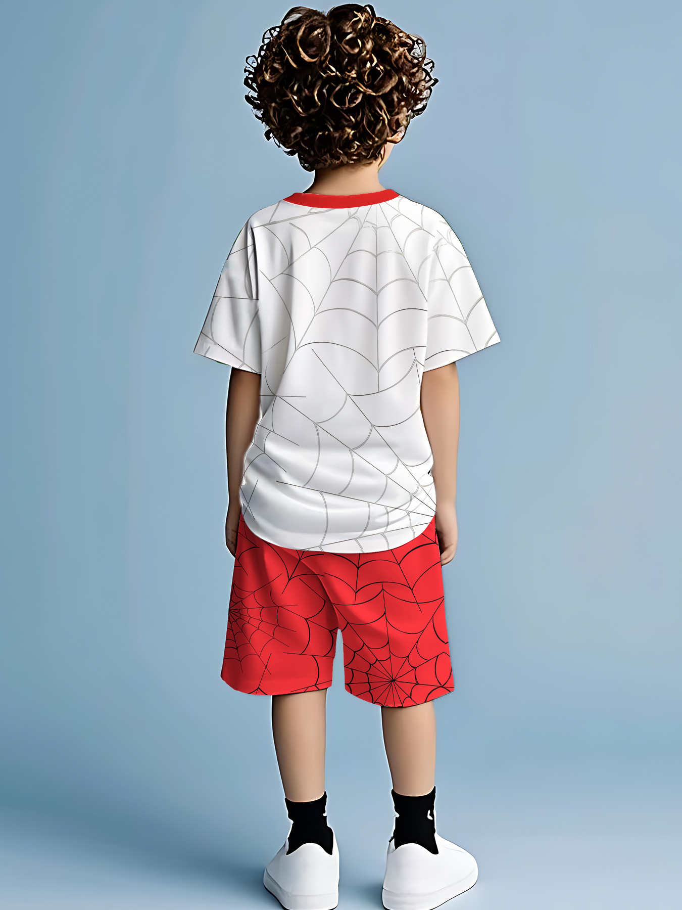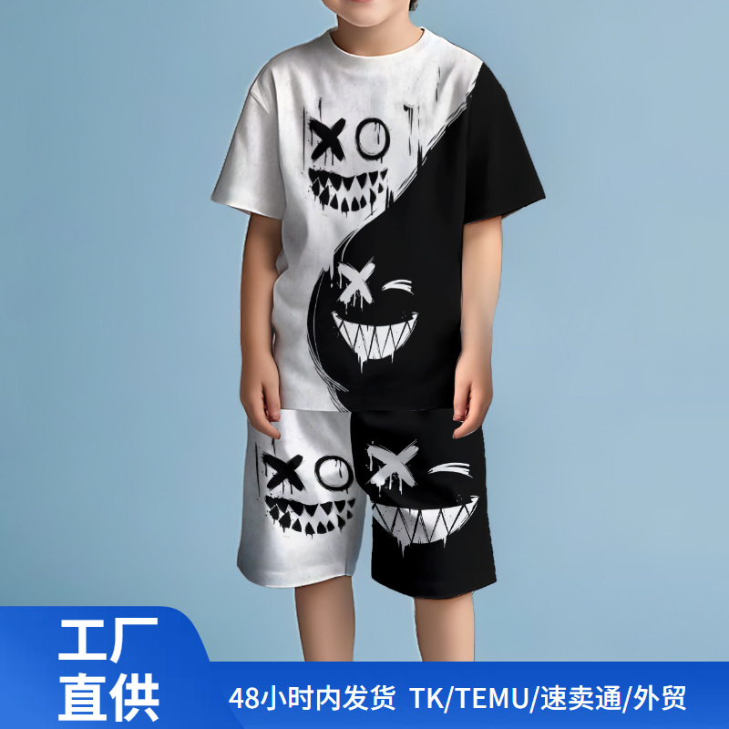 아마존 3D 디지털 소년 짧은 소매 티셔츠 세트 애니메이션 만화 인쇄 라운드 넥 스포츠 캐주얼 어린이 탑