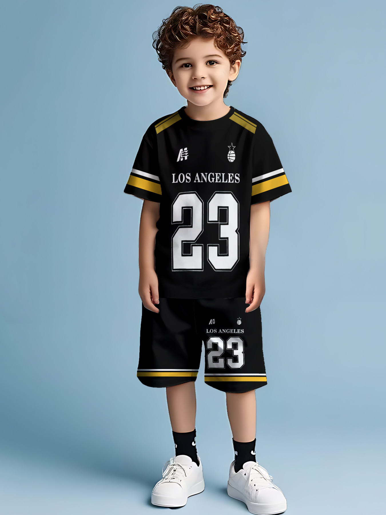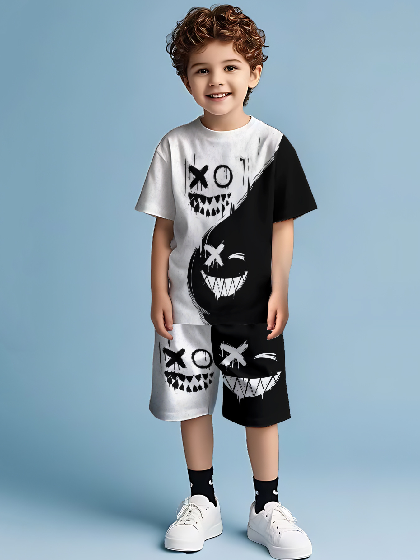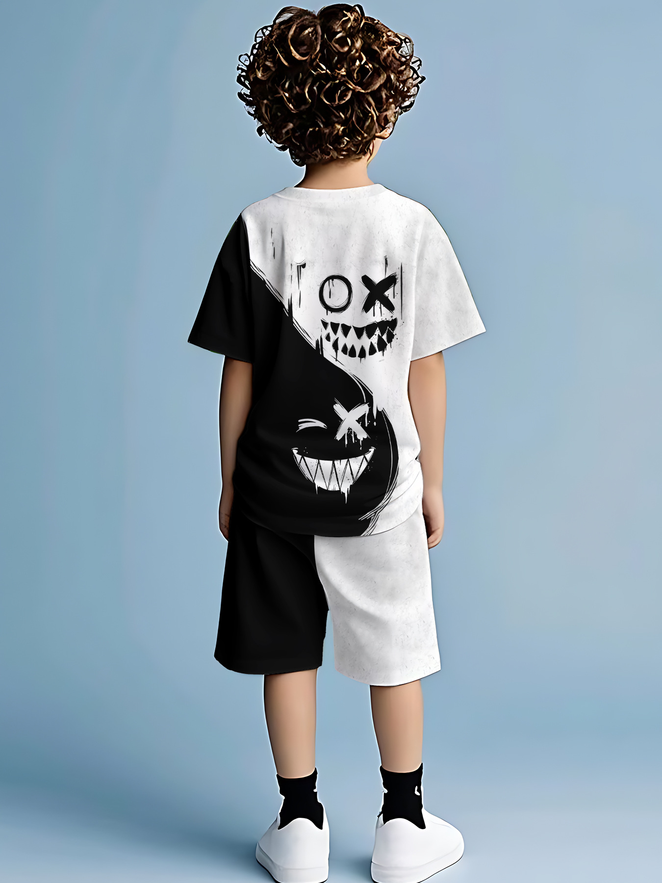 아마존 3D 디지털 소년 짧은 소매 티셔츠 세트 애니메이션 만화 인쇄 라운드 넥 스포츠 캐주얼 어린이 탑