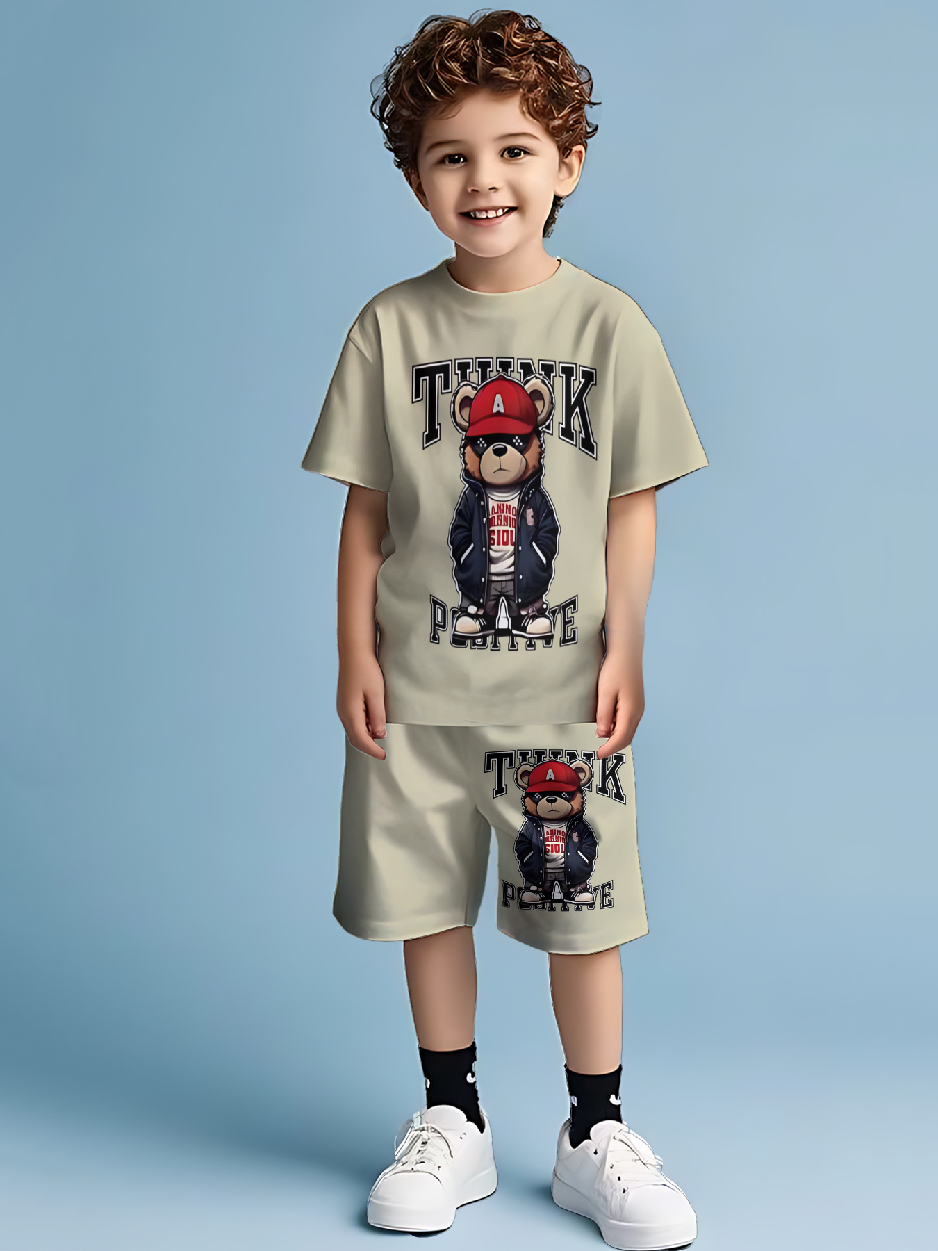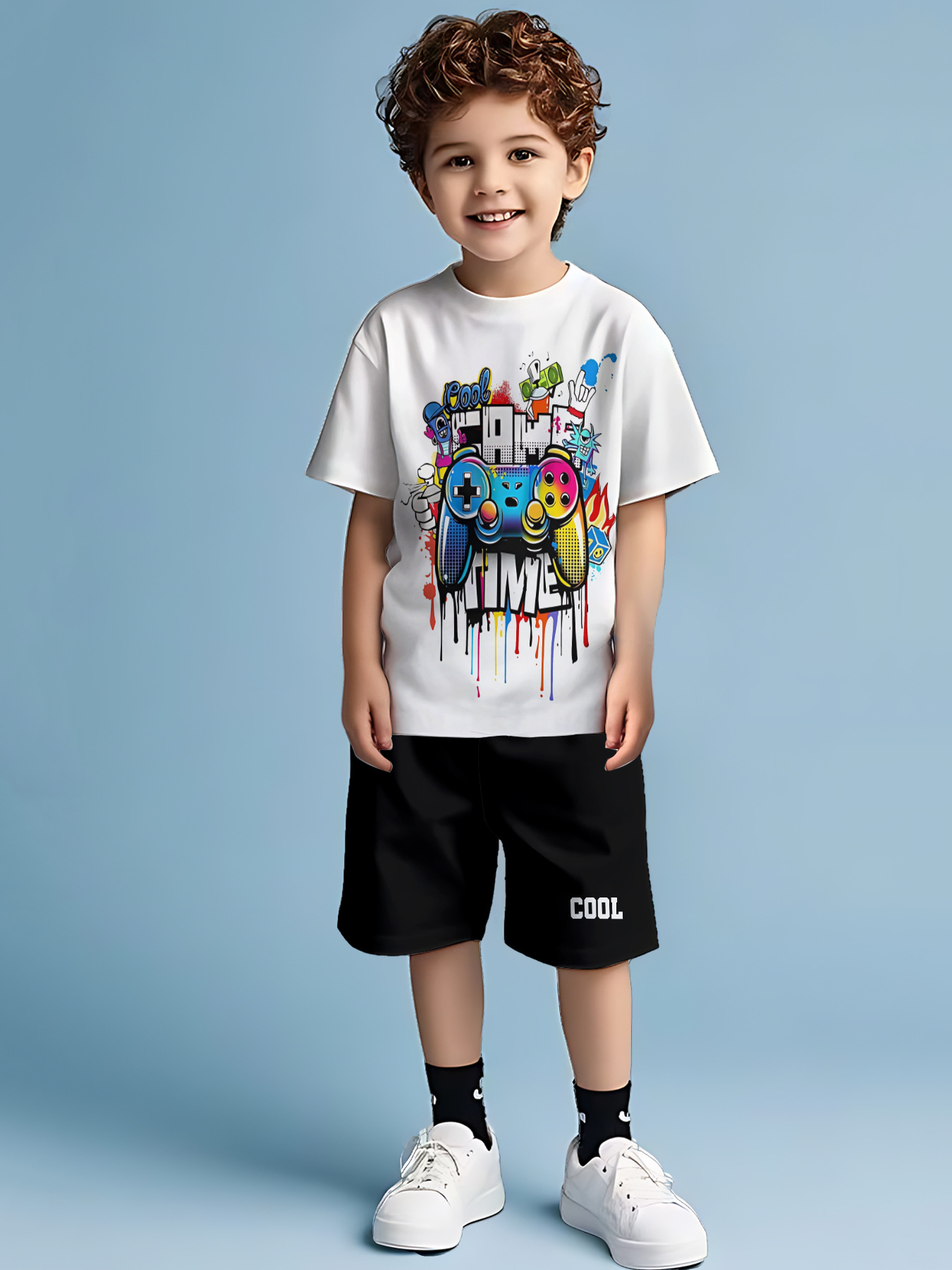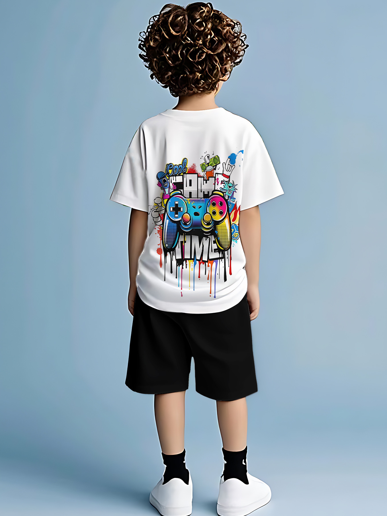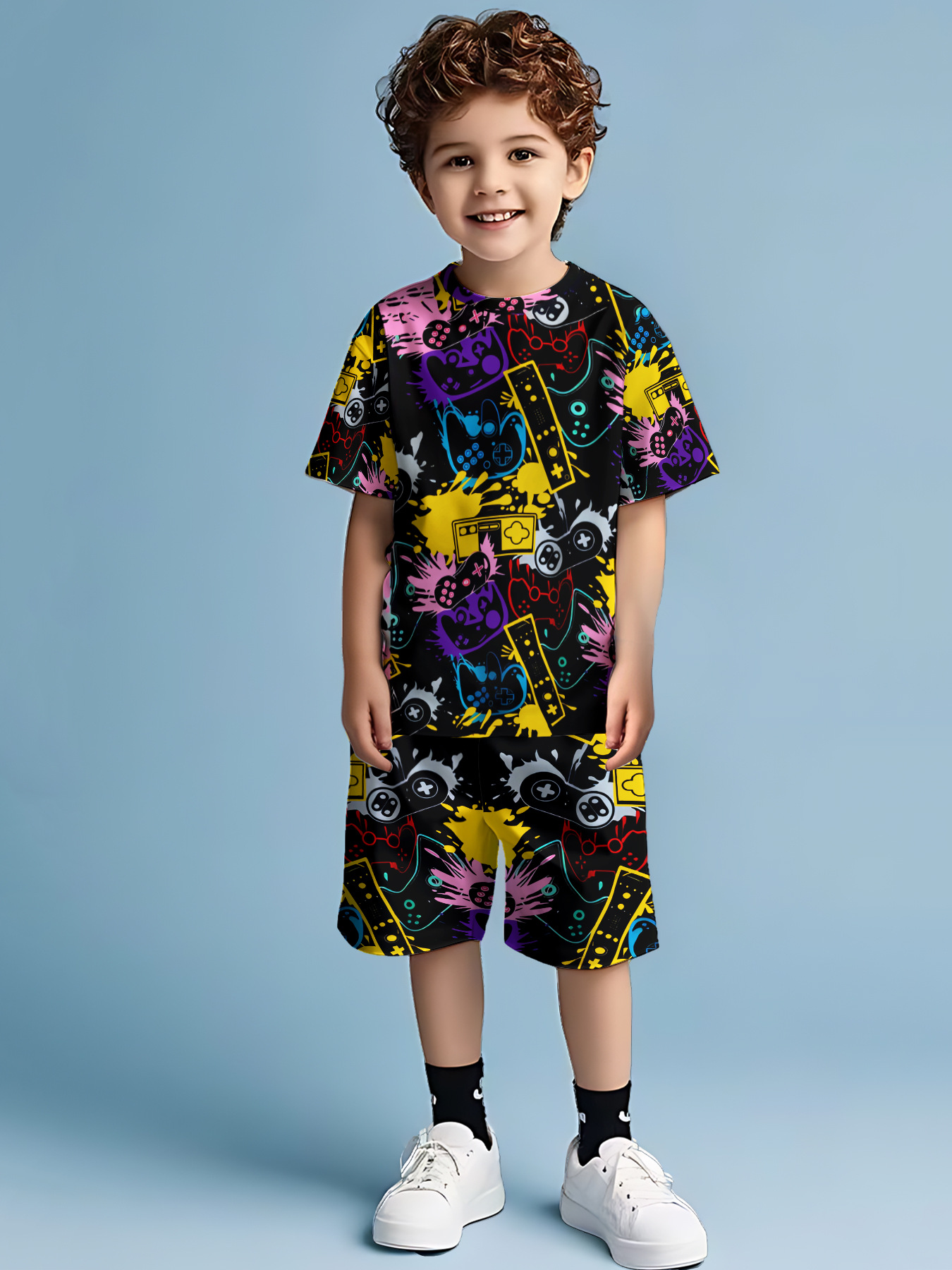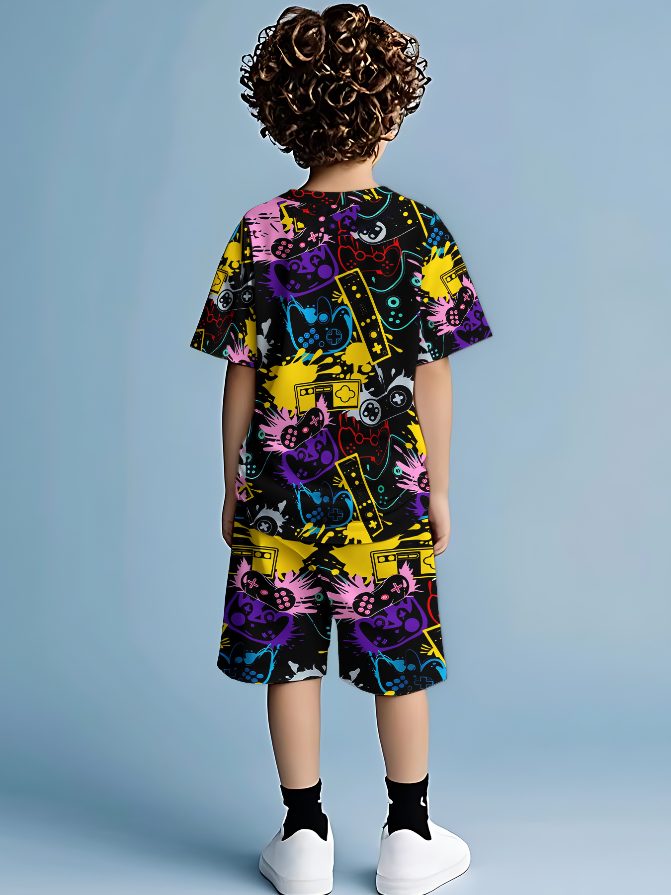 아마존 3D 디지털 소년 짧은 소매 티셔츠 세트 애니메이션 만화 인쇄 라운드 넥 스포츠 캐주얼 어린이 탑스토어 가기