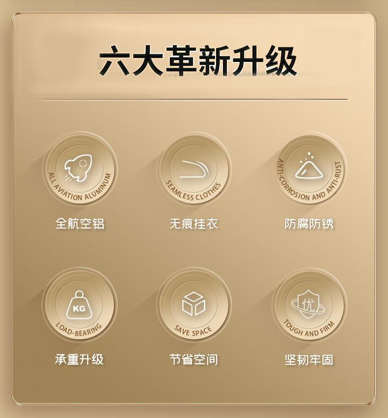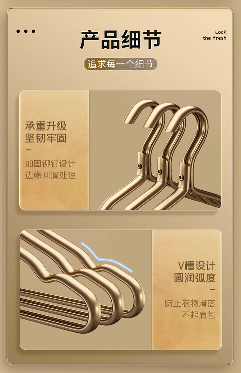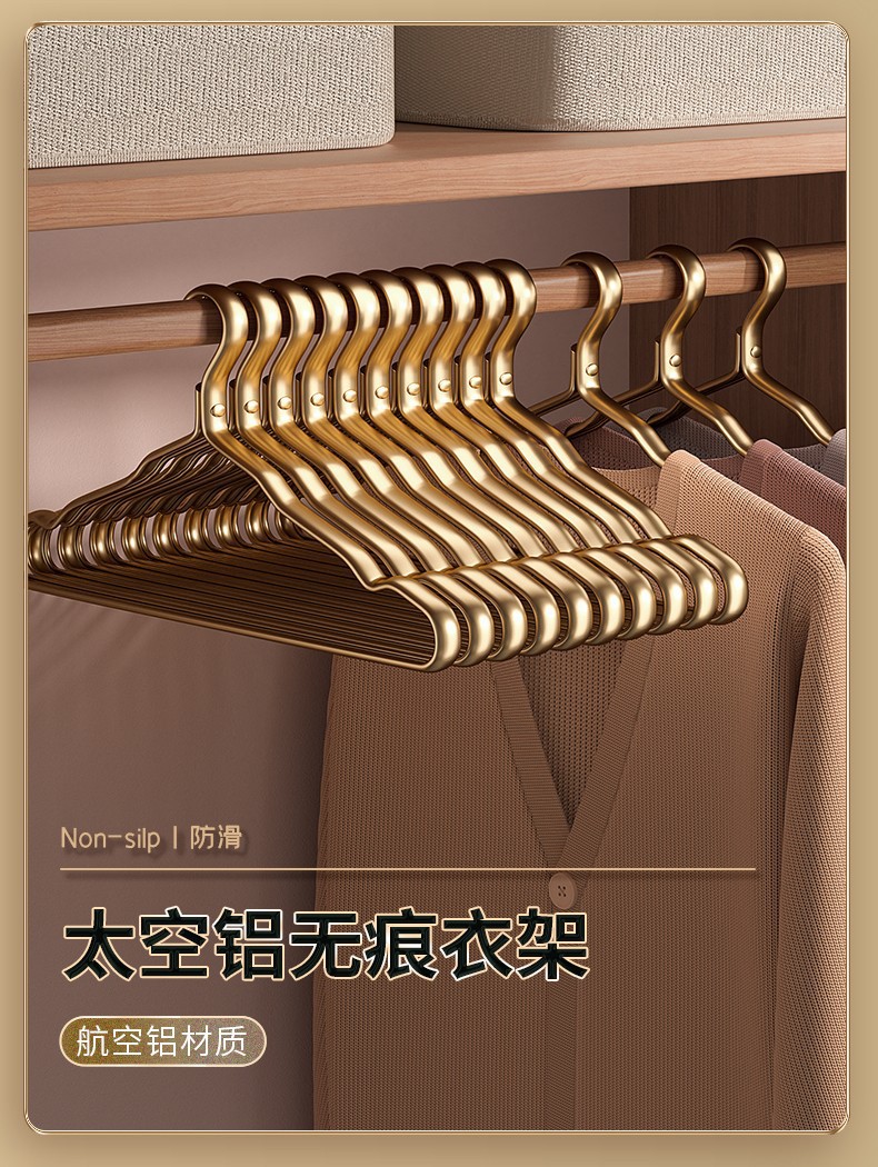가정용 옷걸이용 공간 알루미늄 합금 옷걸이, 흔적 없는 두껍고 두꺼운 옷걸이, 고급 가벼운 고급 옷 지지대, 알루미늄 옷걸이