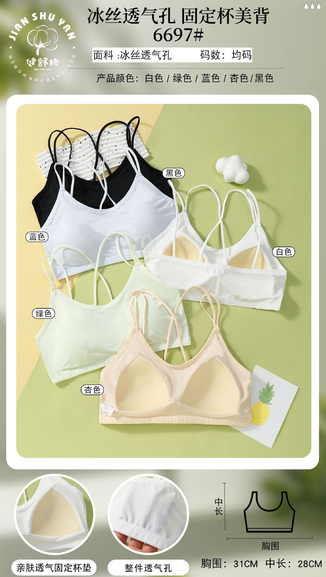 라텍스 컵패드 통기성 아이스 실크 소녀 속옷 청소년 학생 속옷 끈 조끼 탄력 스포츠 속옷