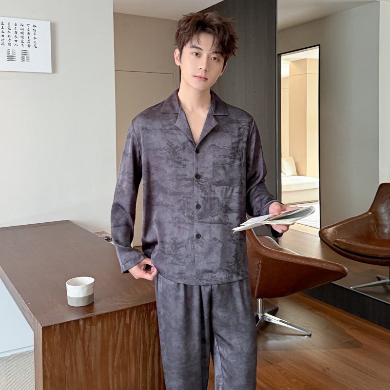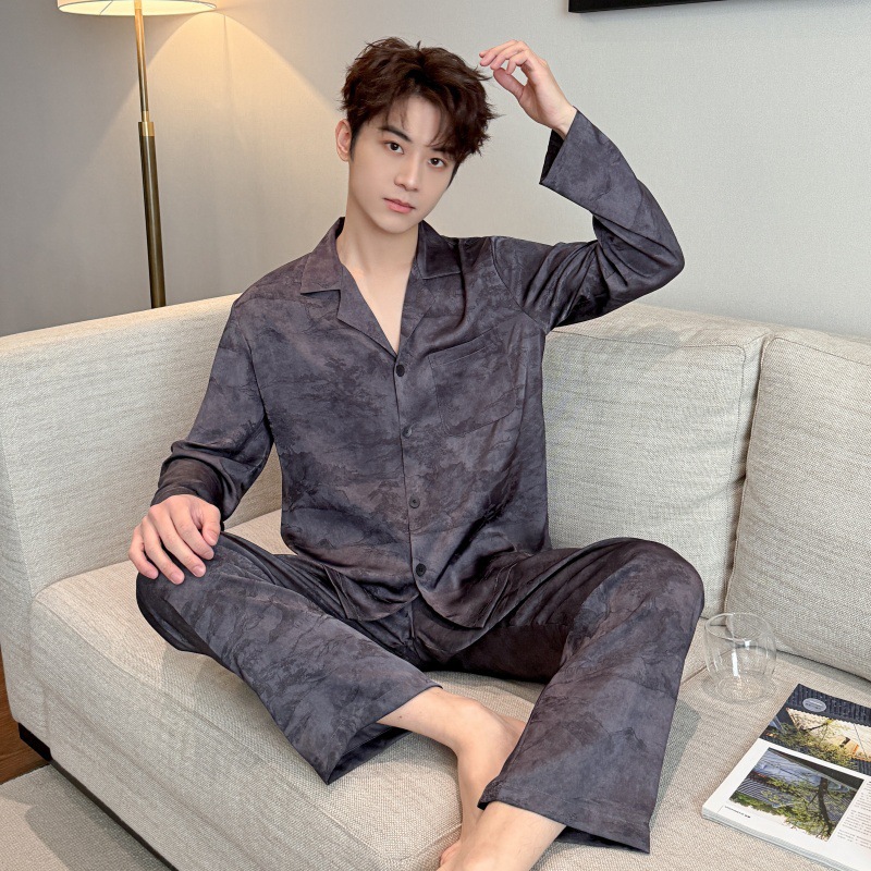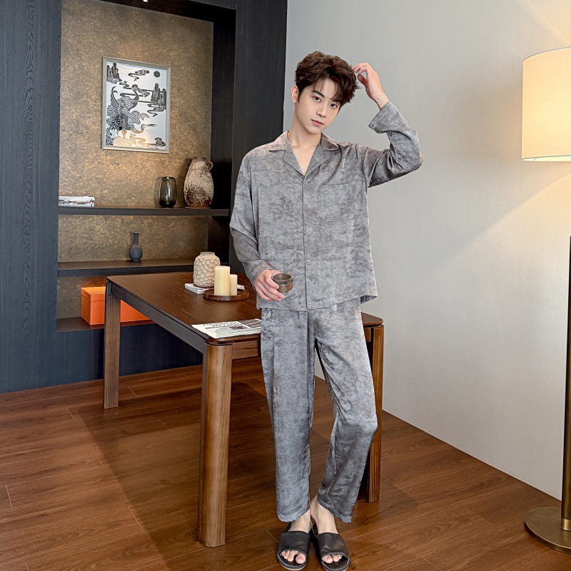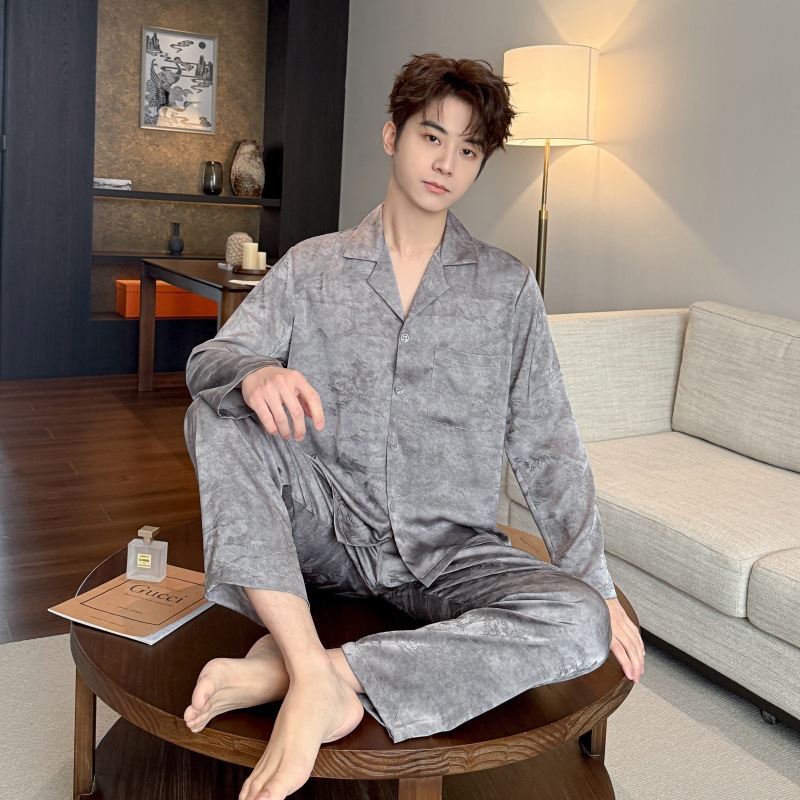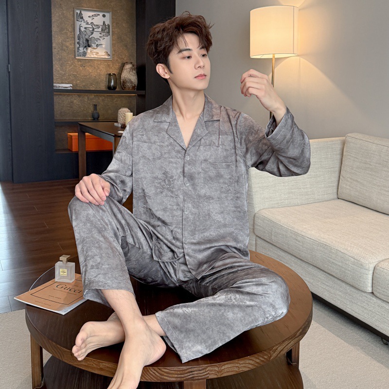 봄, 가을 남성 잠옷, 아이스 실크 얇은 양복, 고급스럽고 가벼운 럭셔리 홈웨어, 대형 사이즈, 홈웨어 외부 착용 가능스토어 가기