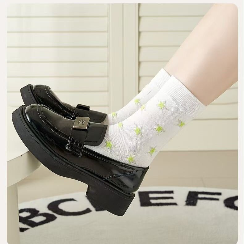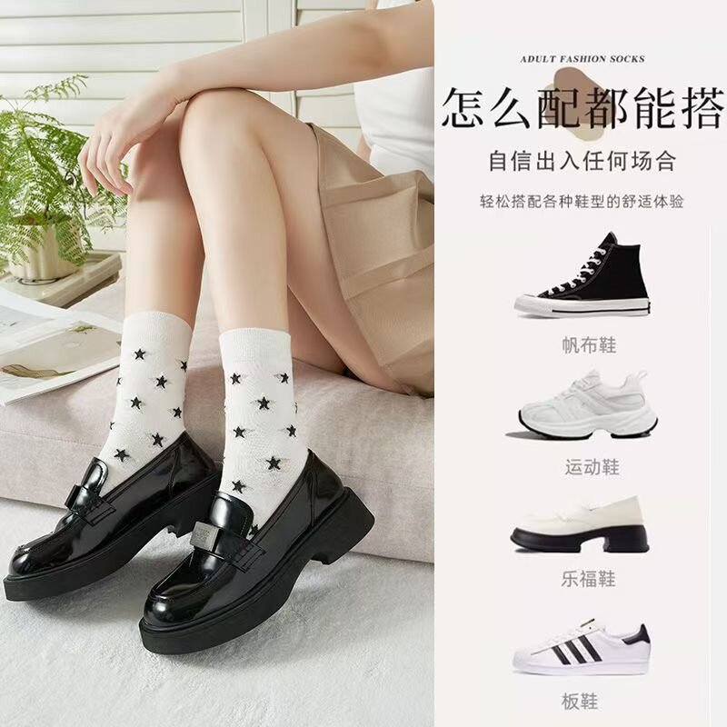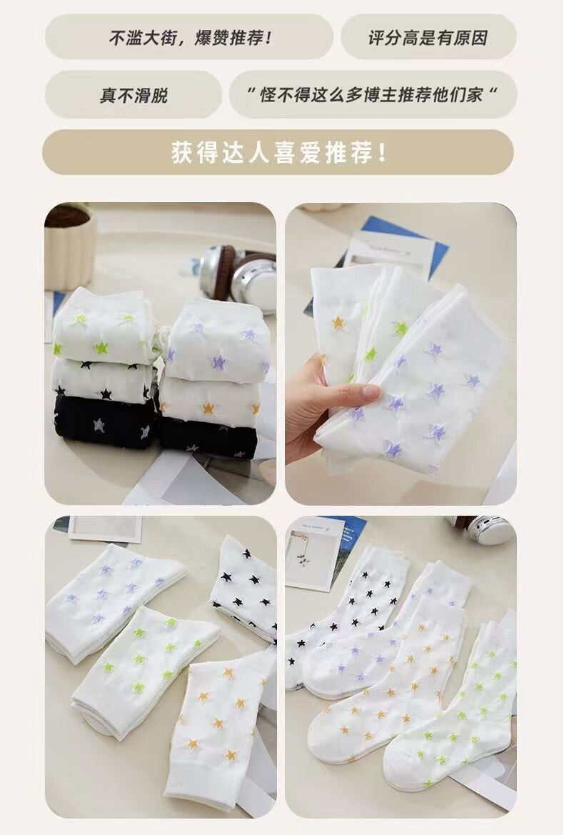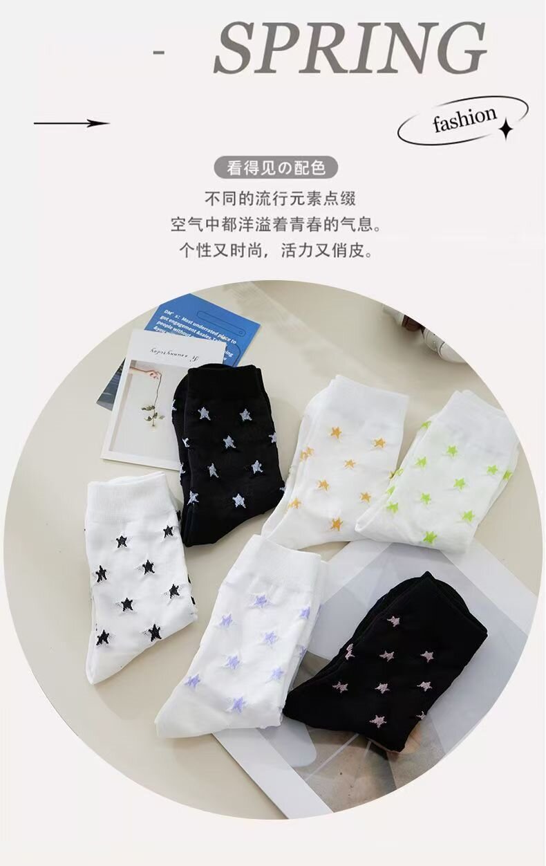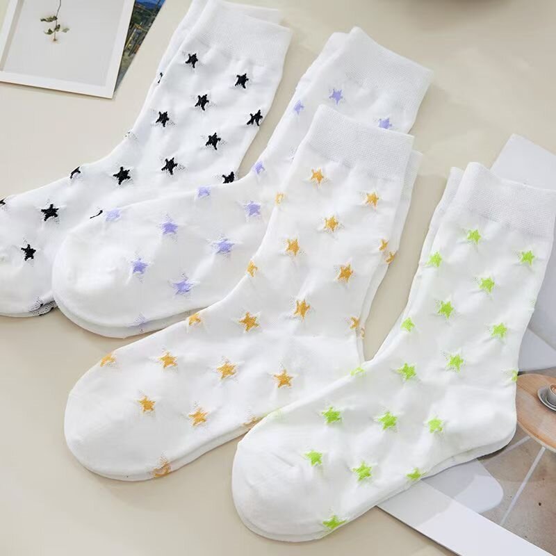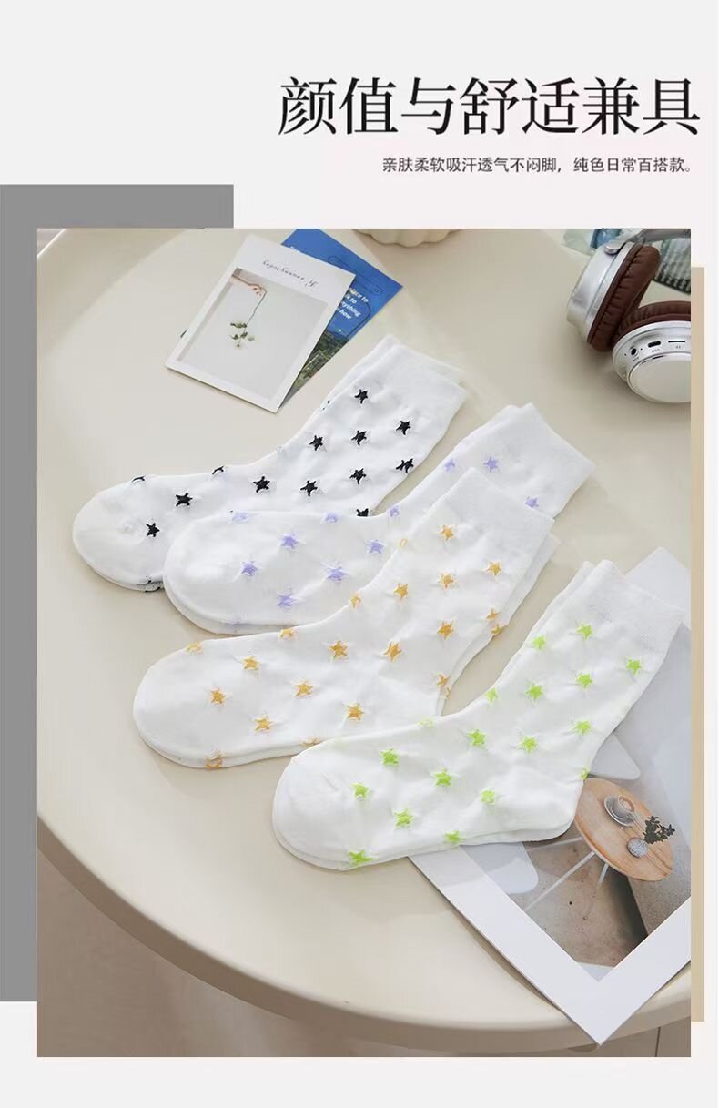 어린이 독특한 3 차원 양각 스타 양말 봄 및 여름 얇은 간단한 올매치 일본 학과 대학 독특한 중간 튜브스토어 가기