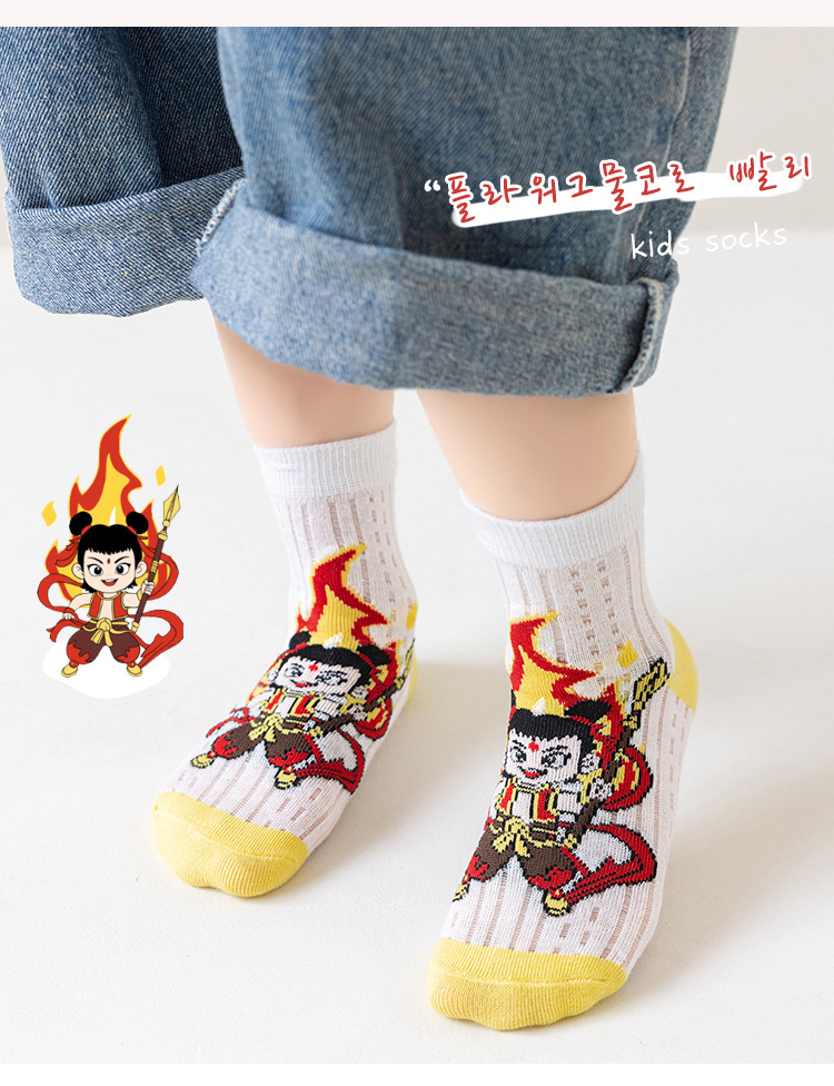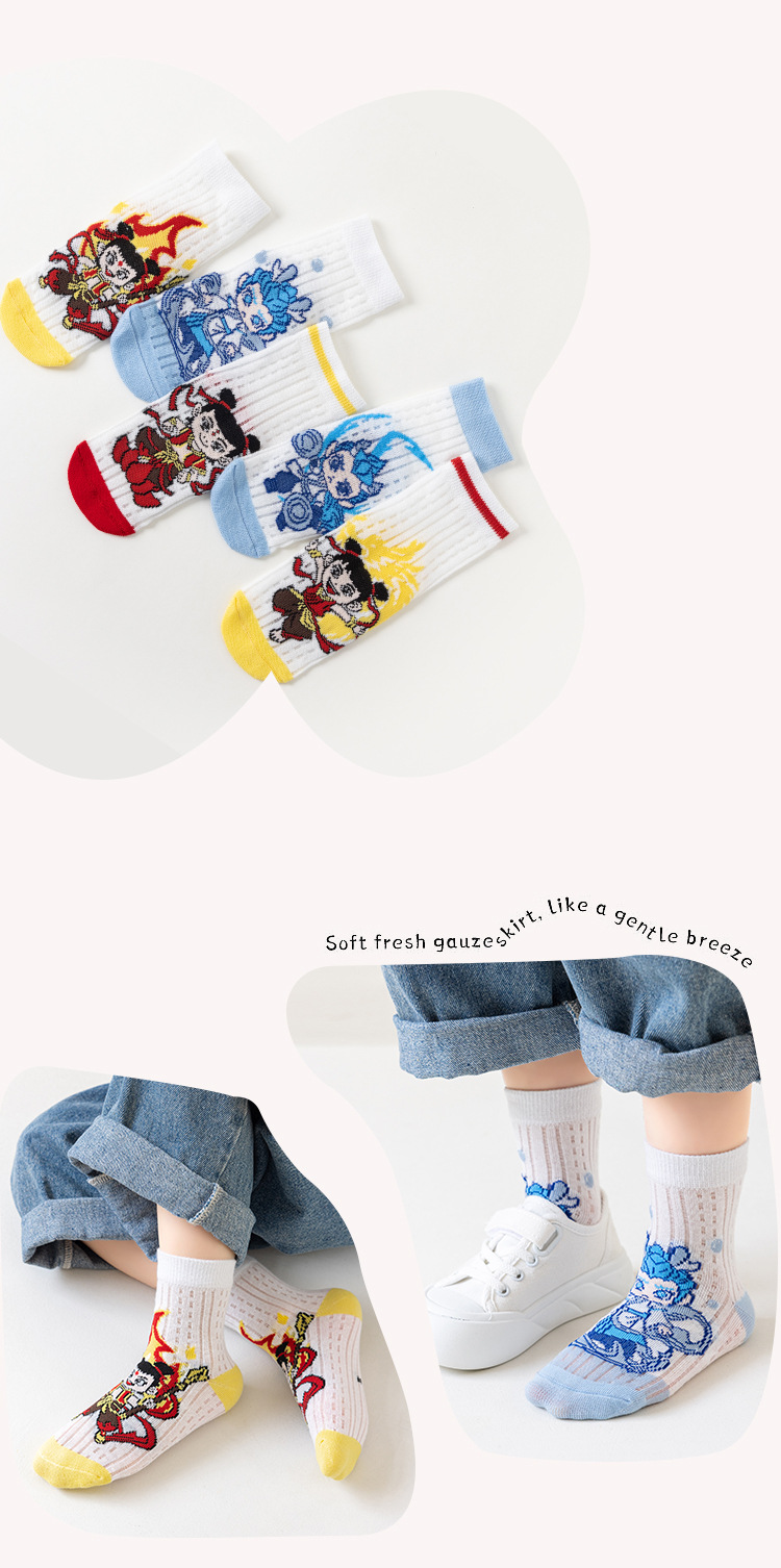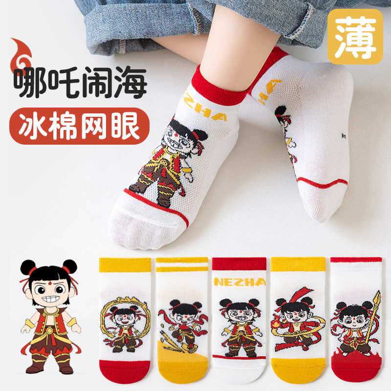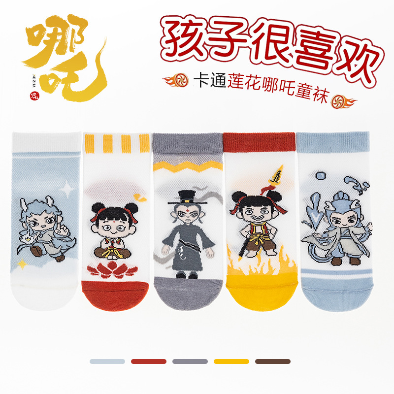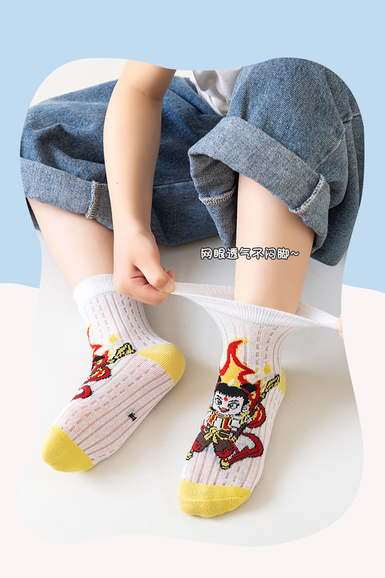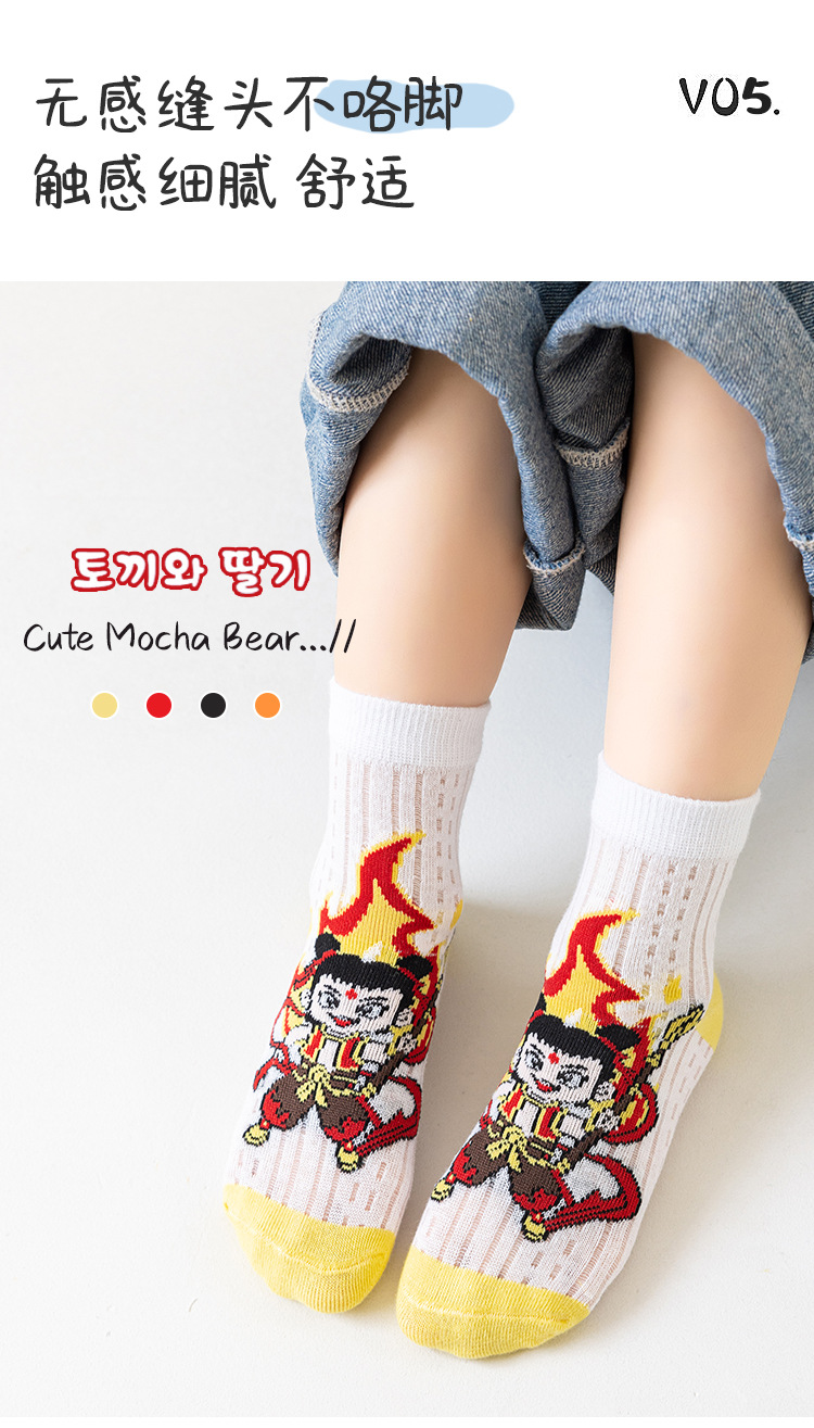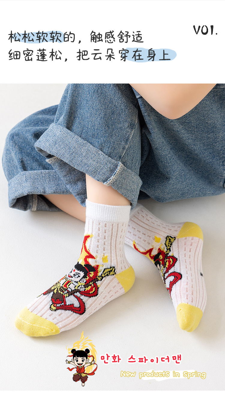 2025 양말 만화 nazha ao c 어린이 양말 클래스 봄과 가을 메쉬 뼈없는 양말 남성 및 여성 양말 도매
