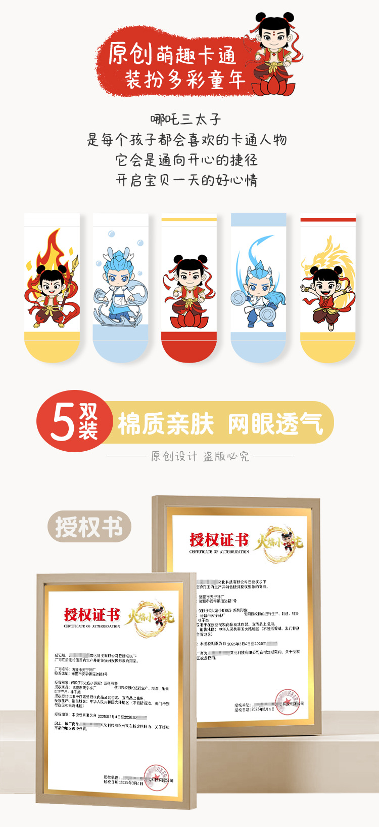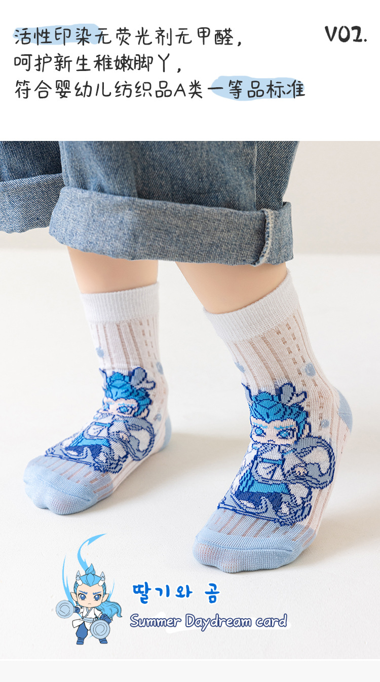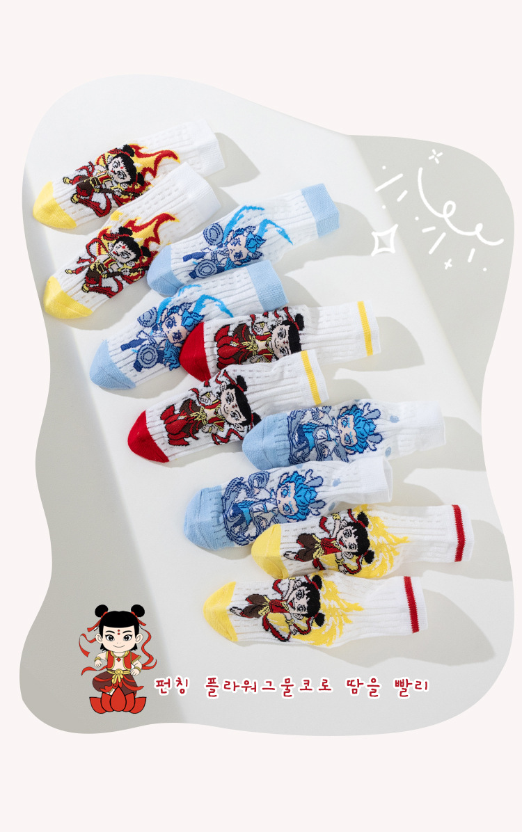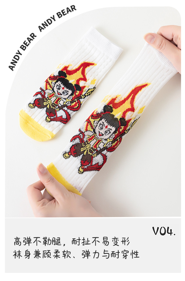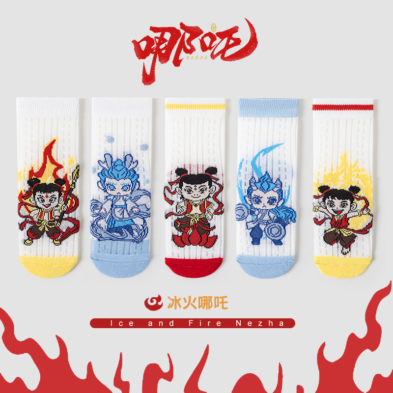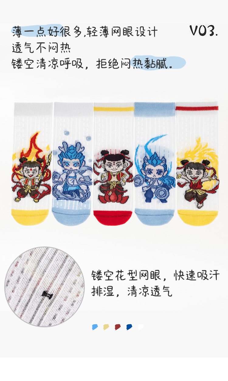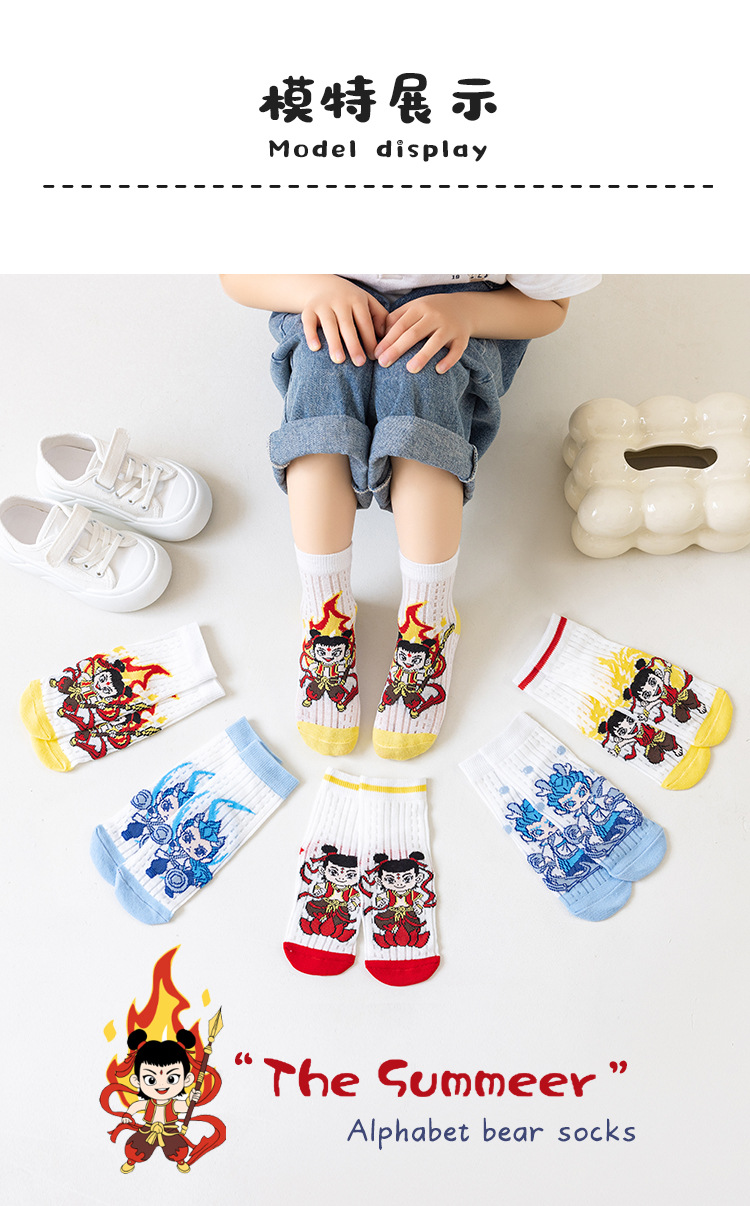 2025 양말 만화 nazha ao c 어린이 양말 클래스 봄과 가을 메쉬 뼈없는 양말 남성 및 여성 양말 도매