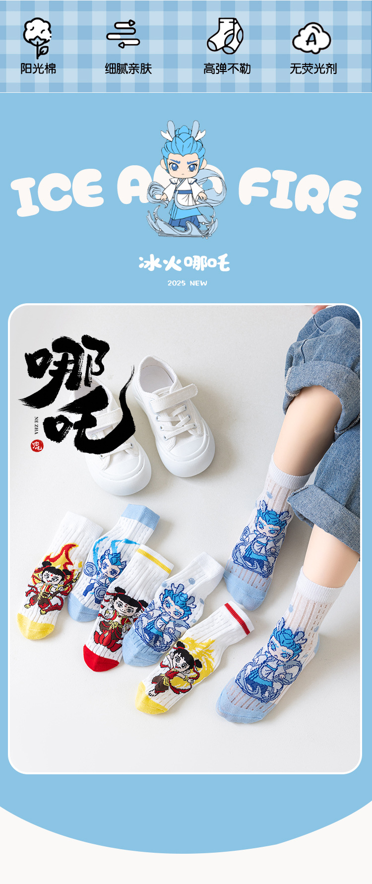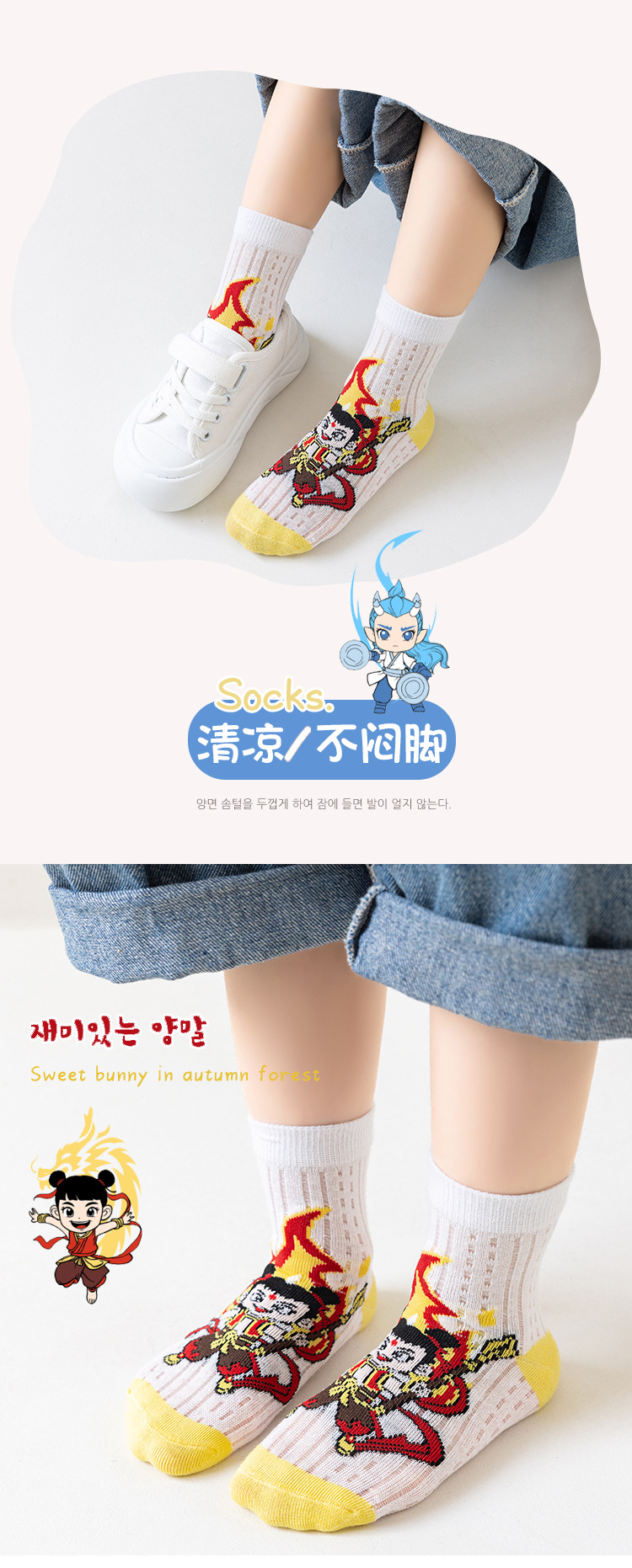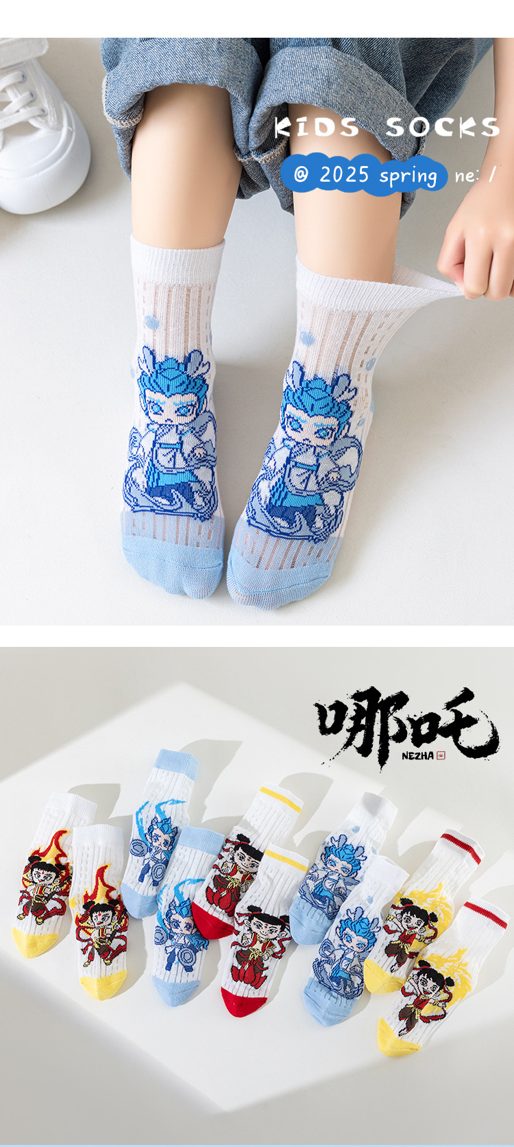 2025 양말 만화 nazha ao c 어린이 양말 클래스 봄과 가을 메쉬 뼈없는 양말 남성 및 여성 양말 도매스토어 가기