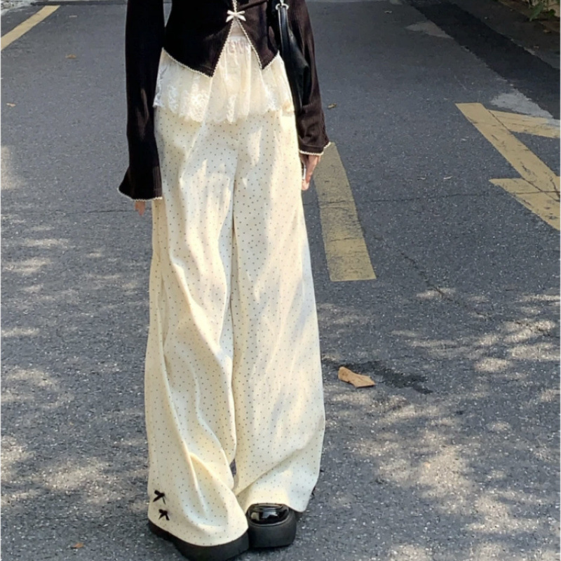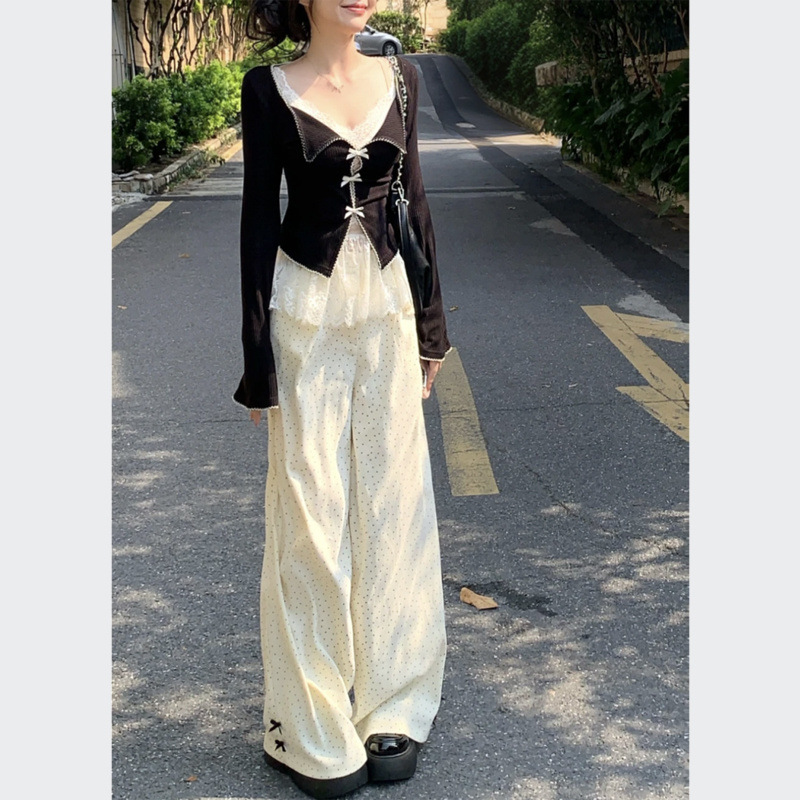 스파이스 걸스 세트 활 긴팔 니트웨어 여성용 이른 봄 레이스 카미솔 캐주얼 웨이브 도트 바지