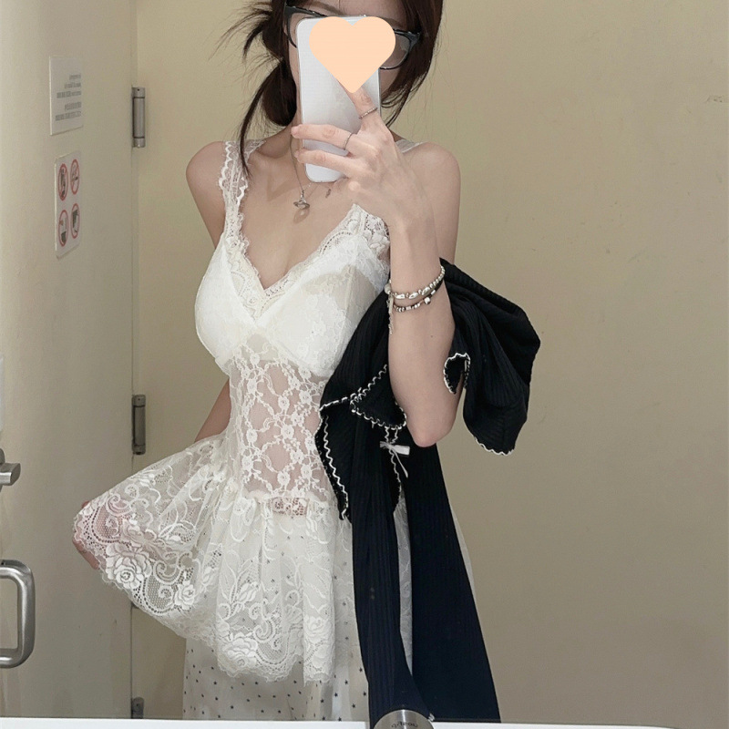 • 블랙 가디건+레이스 멜빵[투피스세트]