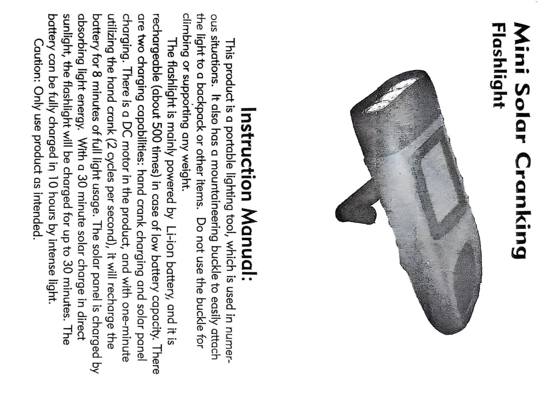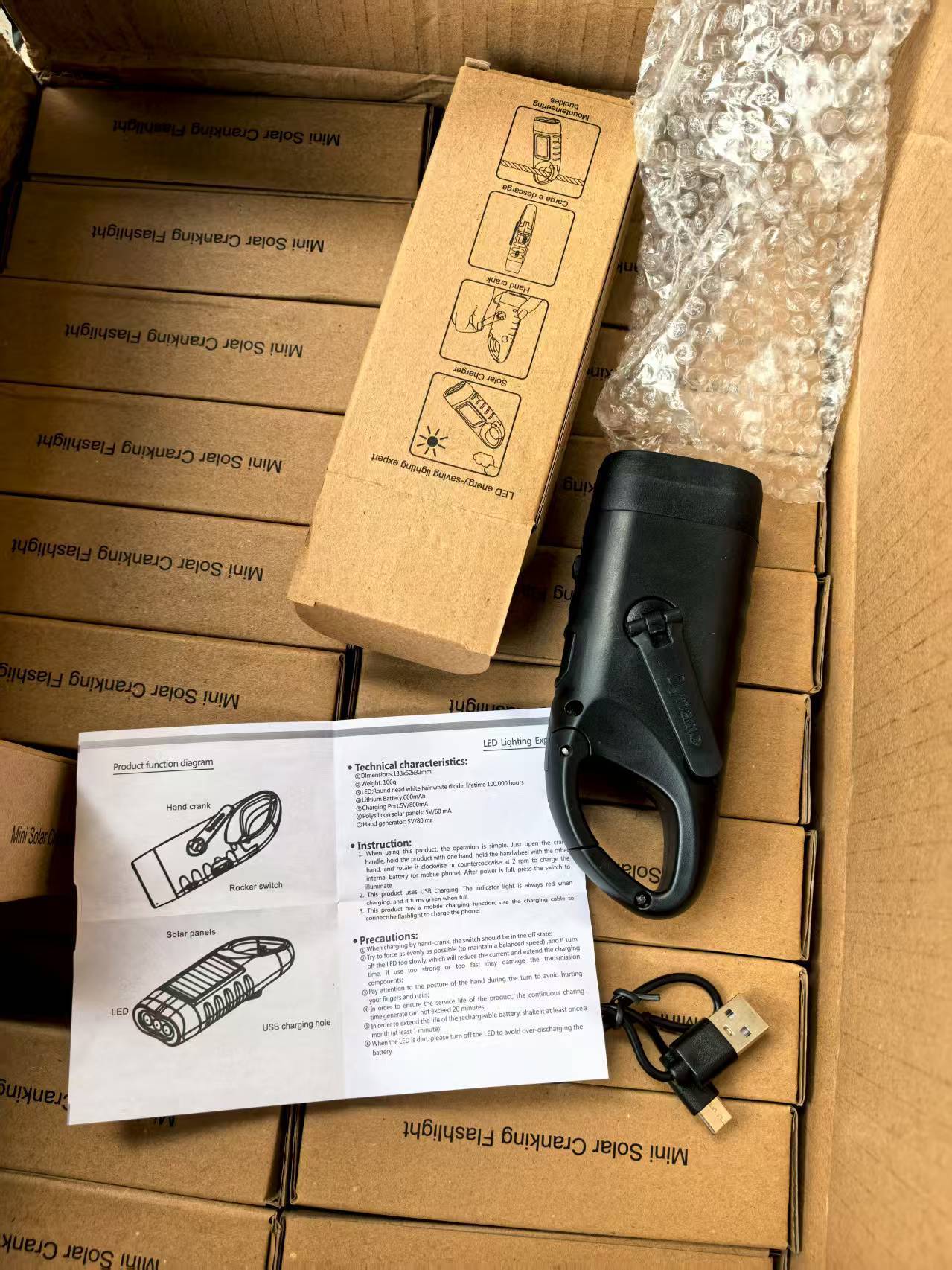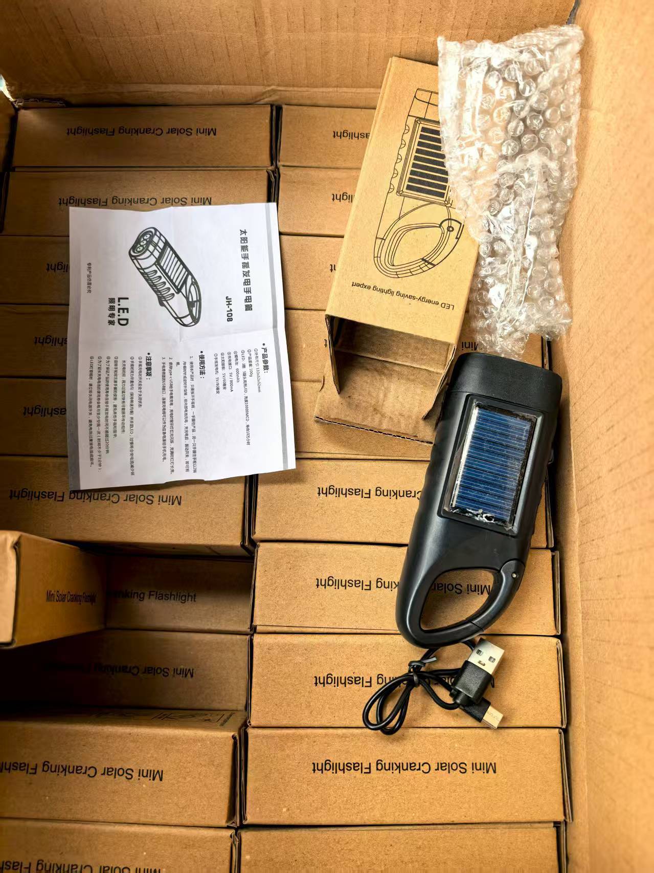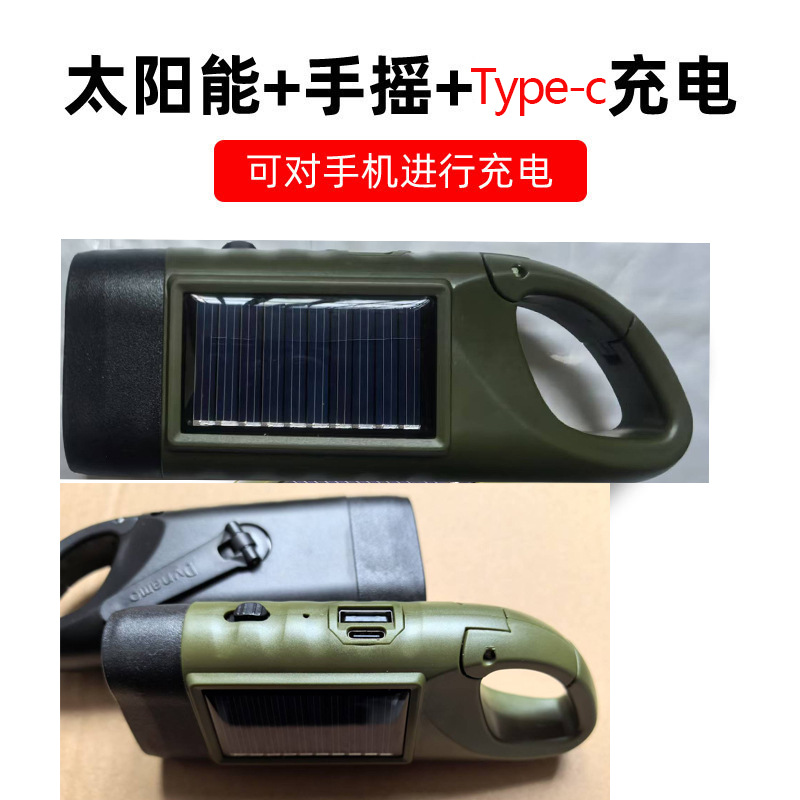 产品本身是靠太阳能+手摇两种方式充电手摇一分钟大约可亮8分钟