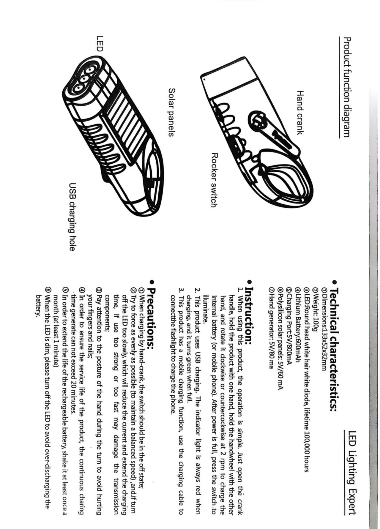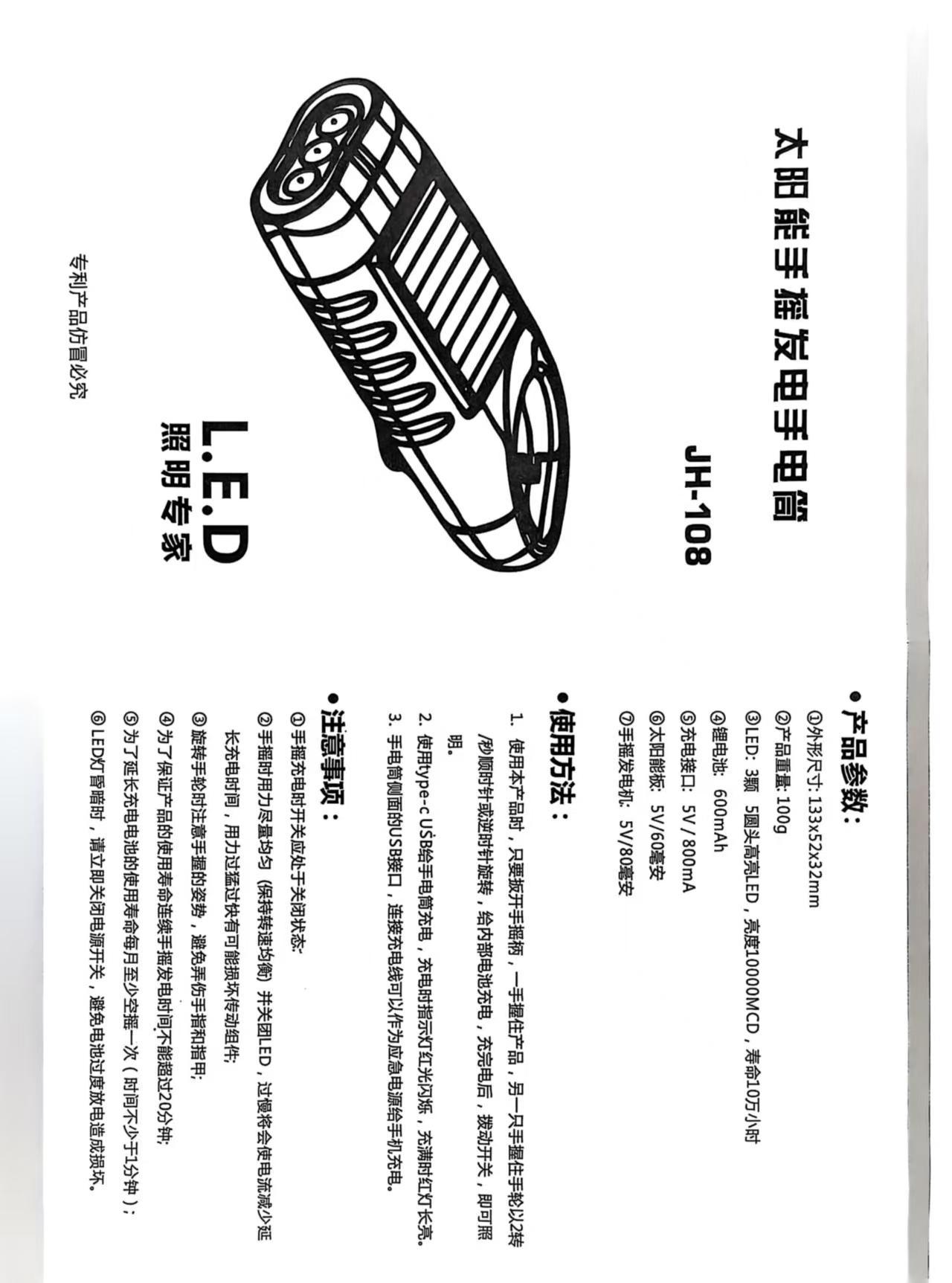 1.手摇发电,连续使用时间120分钟,使用时间长达10万小时