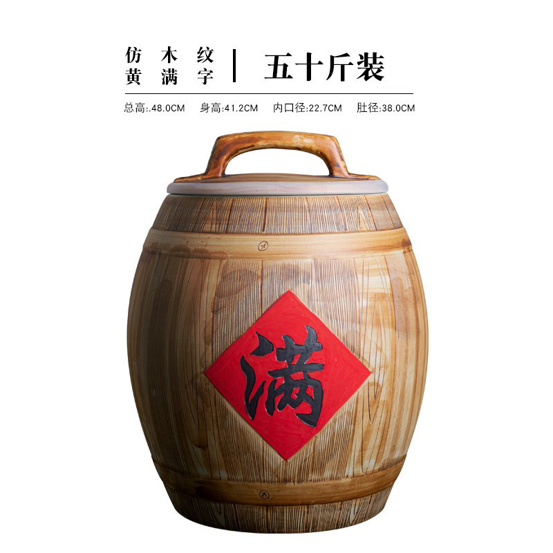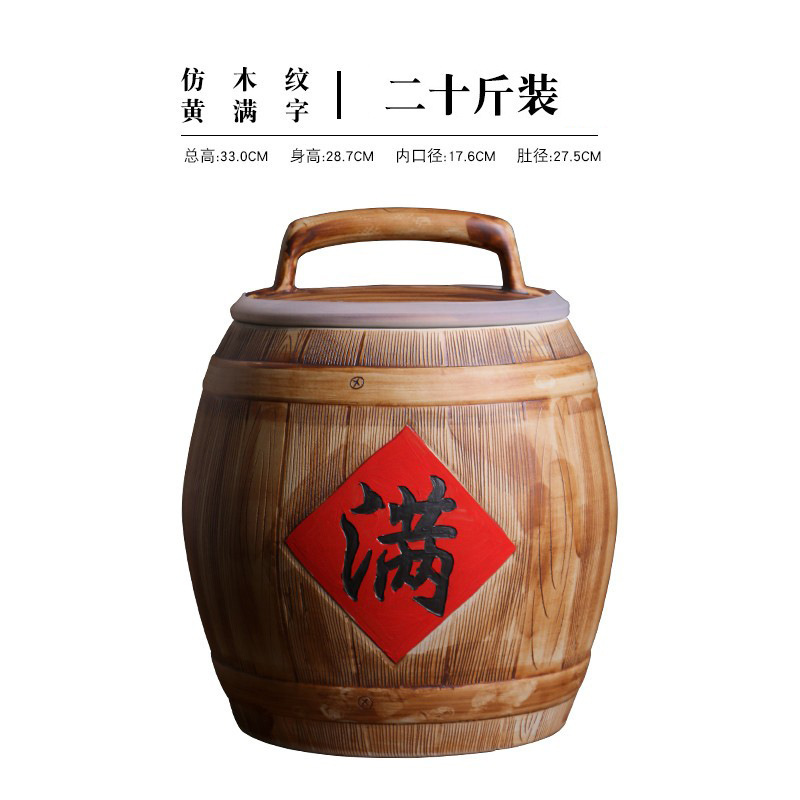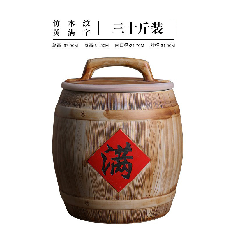 뚜껑이있는 Jingdezhen 세라믹 쌀 탱크 가정용 방습 및 곤충 방지 구식 10kg 20kg 50kg 쌀 저장 상자 쌀 양동이