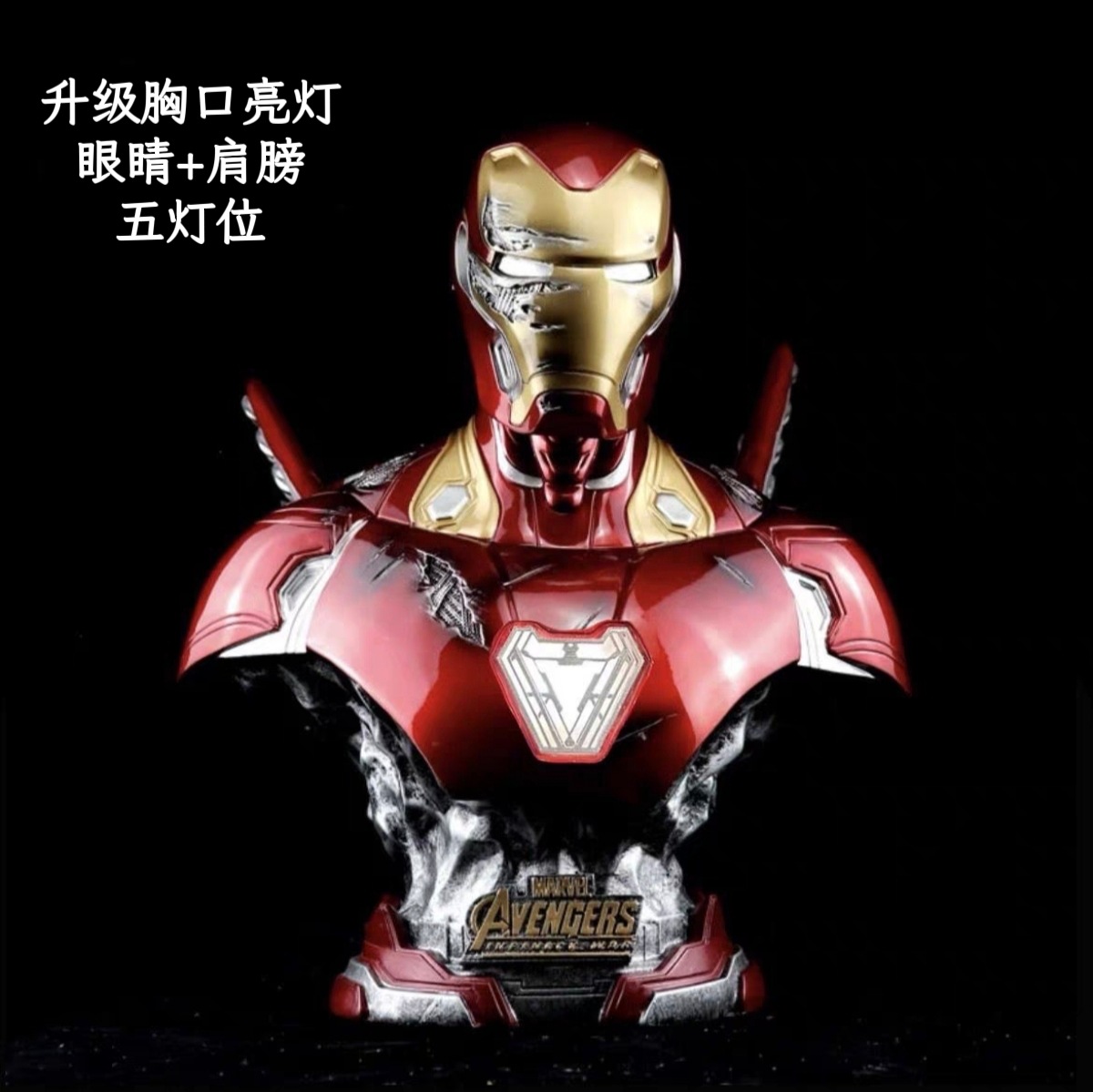 어벤져 스 아이언 맨 MK50 하프 바디 수지 GK 동상 모델 핸드 헬드 컴퓨터 데스크톱 장식 선물