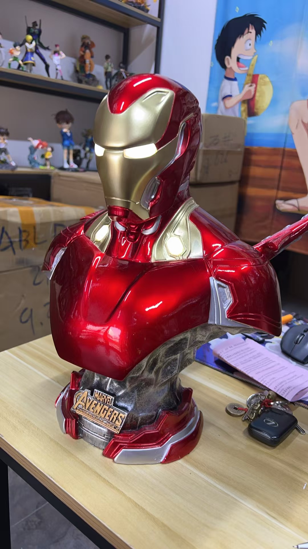 어벤져 스 아이언 맨 MK50 하프 바디 수지 GK 동상 모델 핸드 헬드 컴퓨터 데스크톱 장식 선물스토어 가기