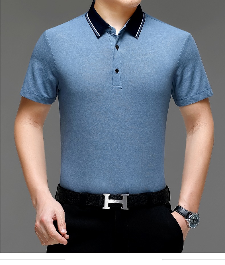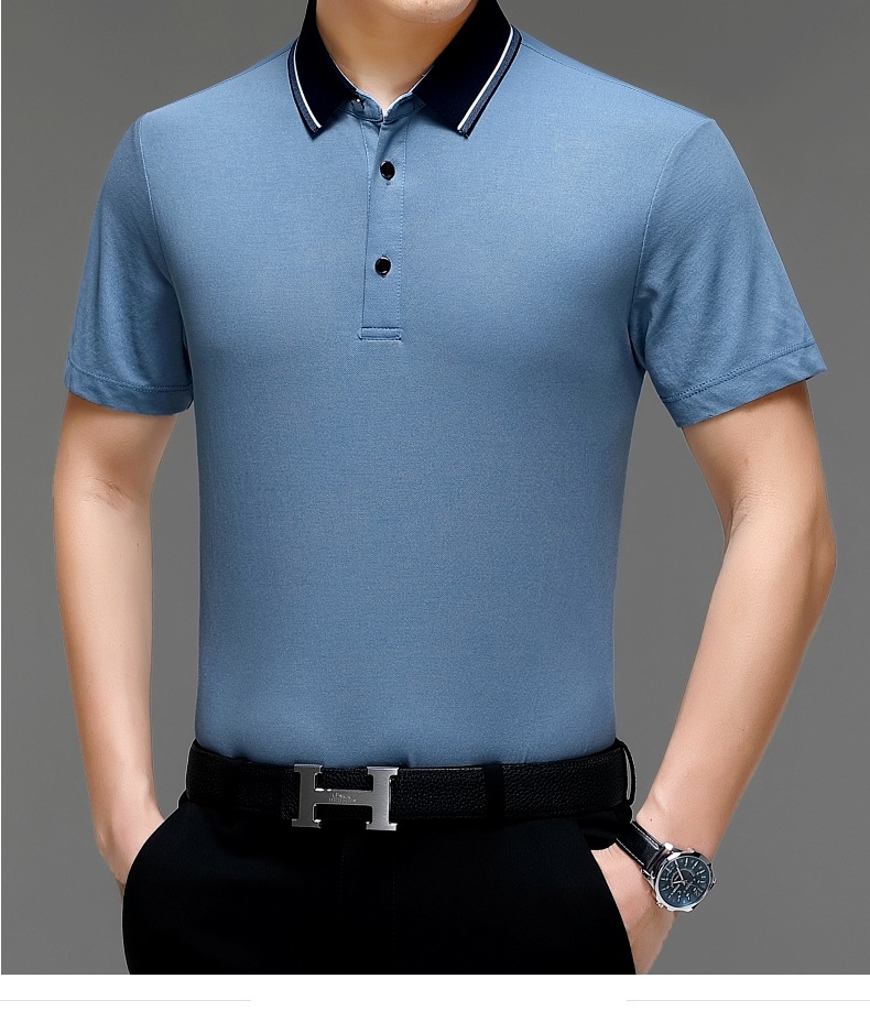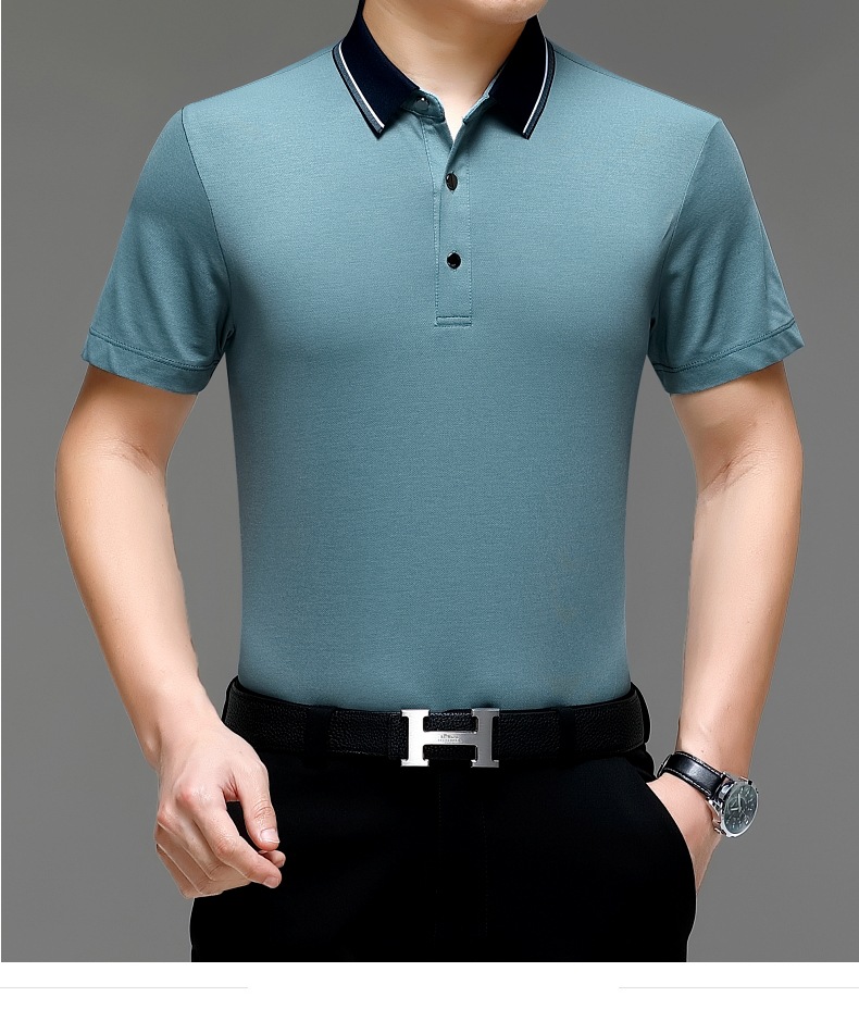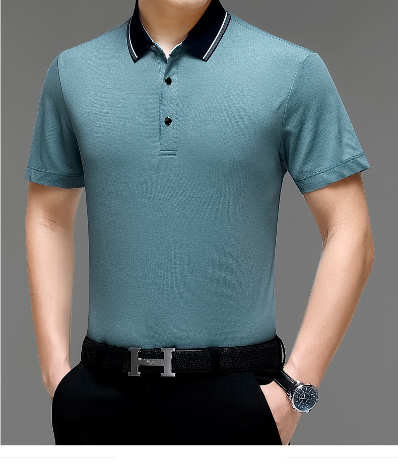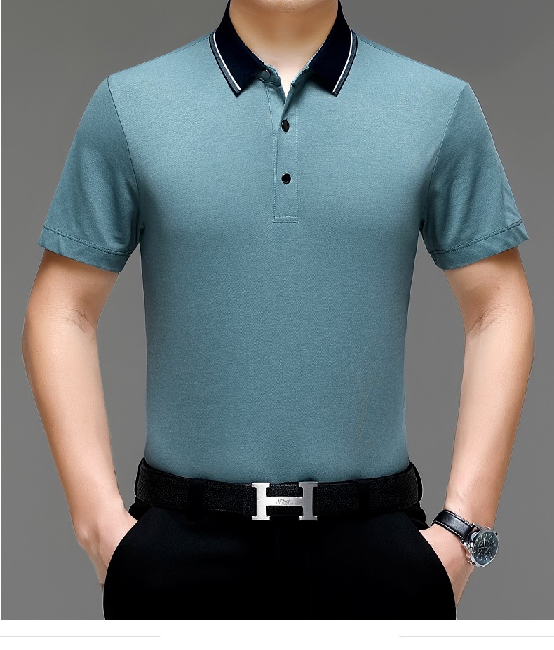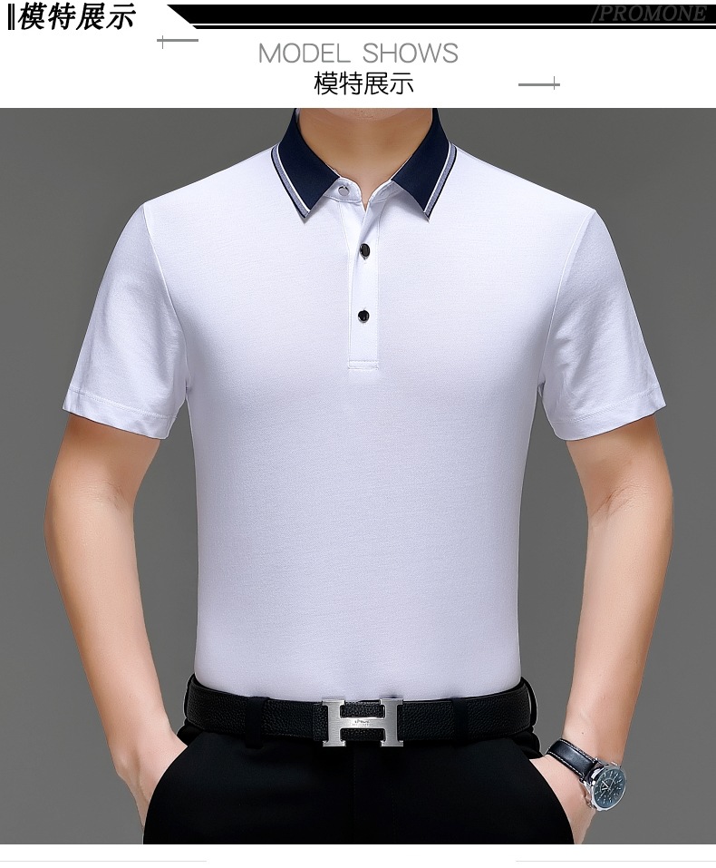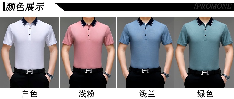 공장 도매 고급 뽕나무 실크 주름 방지 남성용 티셔츠 짧은 소매 비즈니스 캐주얼 중년 여름 POLO 셔츠 탑스토어 가기