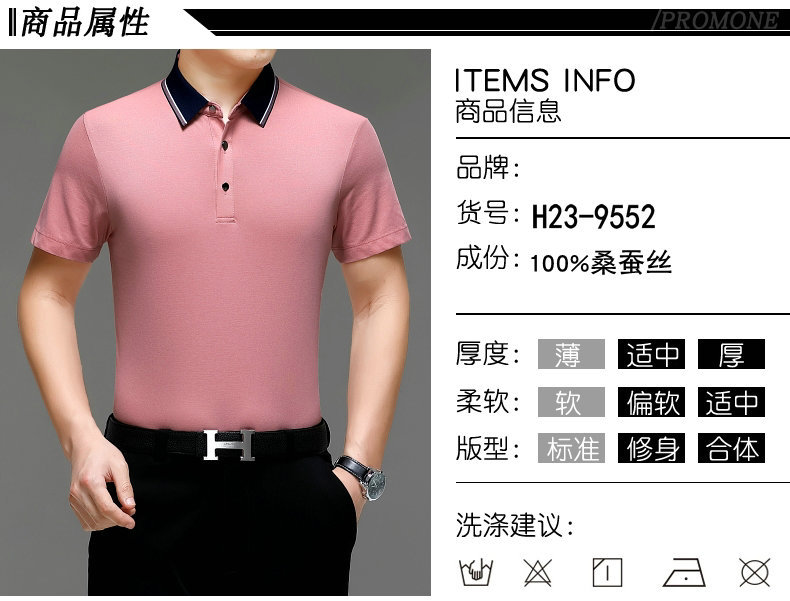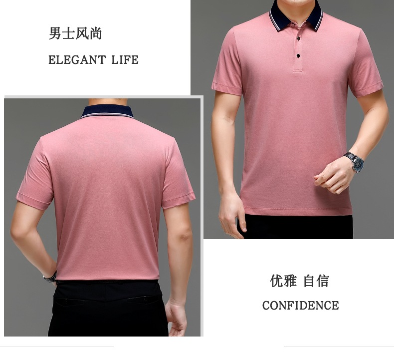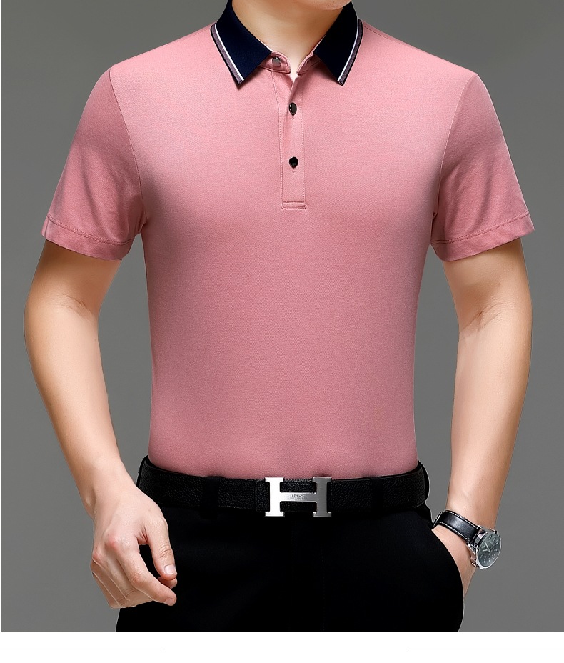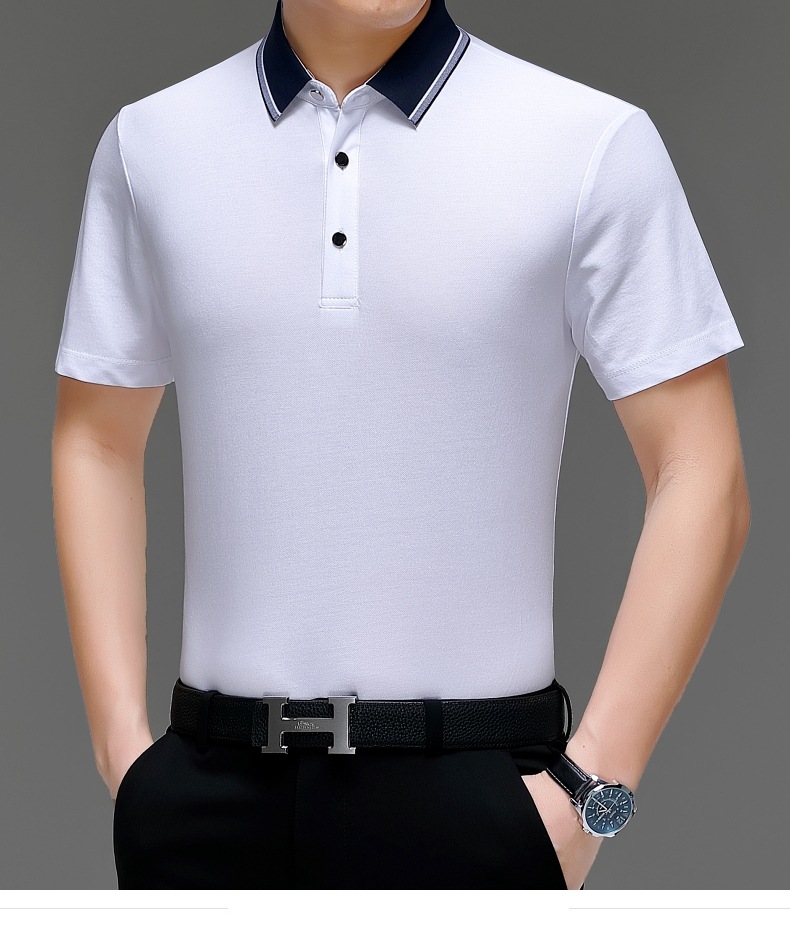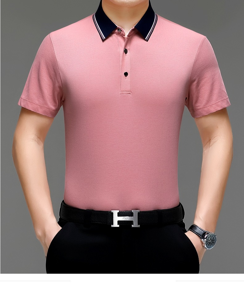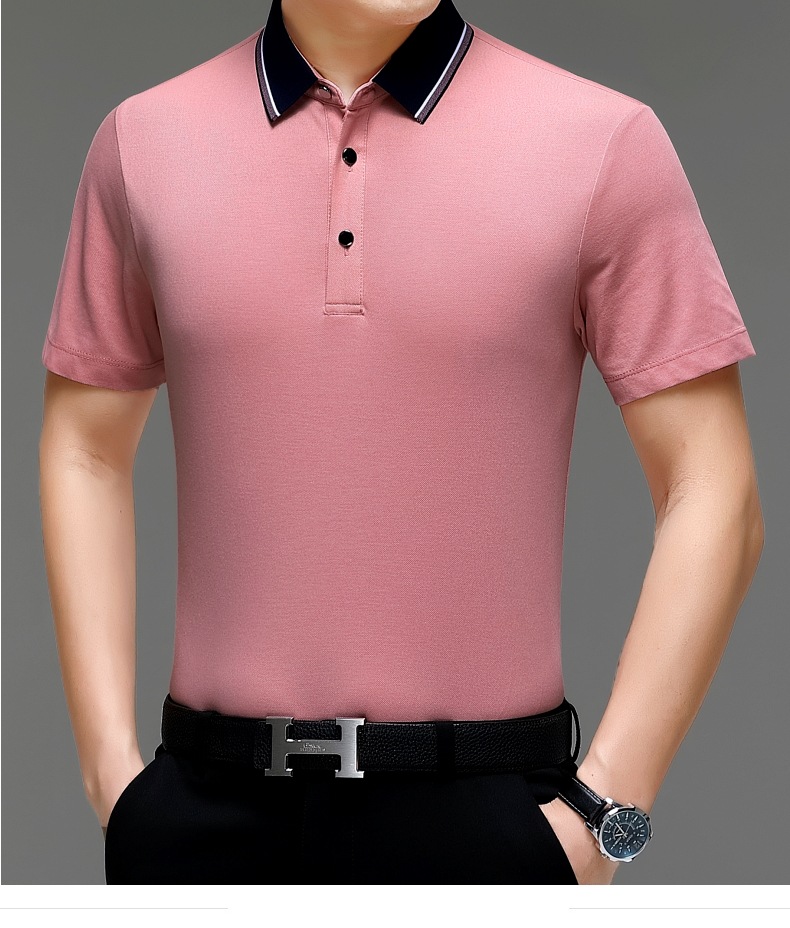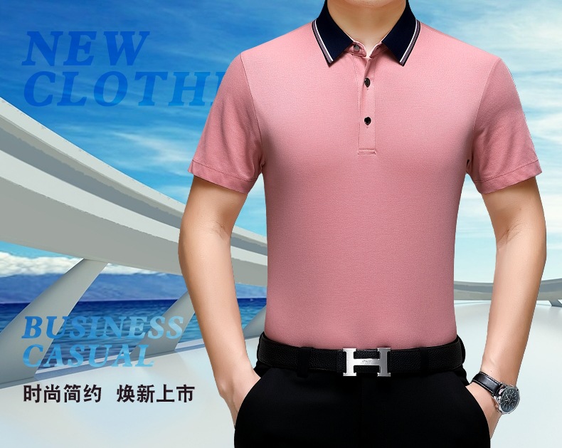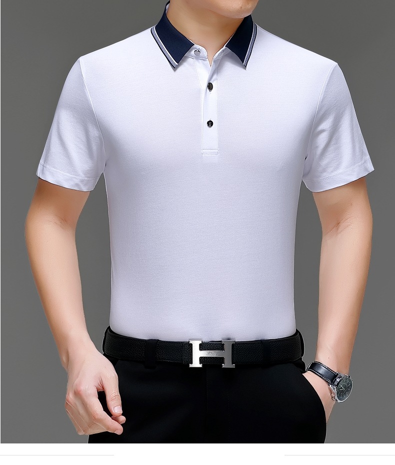 공장 도매 고급 뽕나무 실크 주름 방지 남성용 티셔츠 짧은 소매 비즈니스 캐주얼 중년 여름 POLO 셔츠 탑스토어 가기