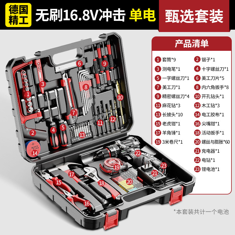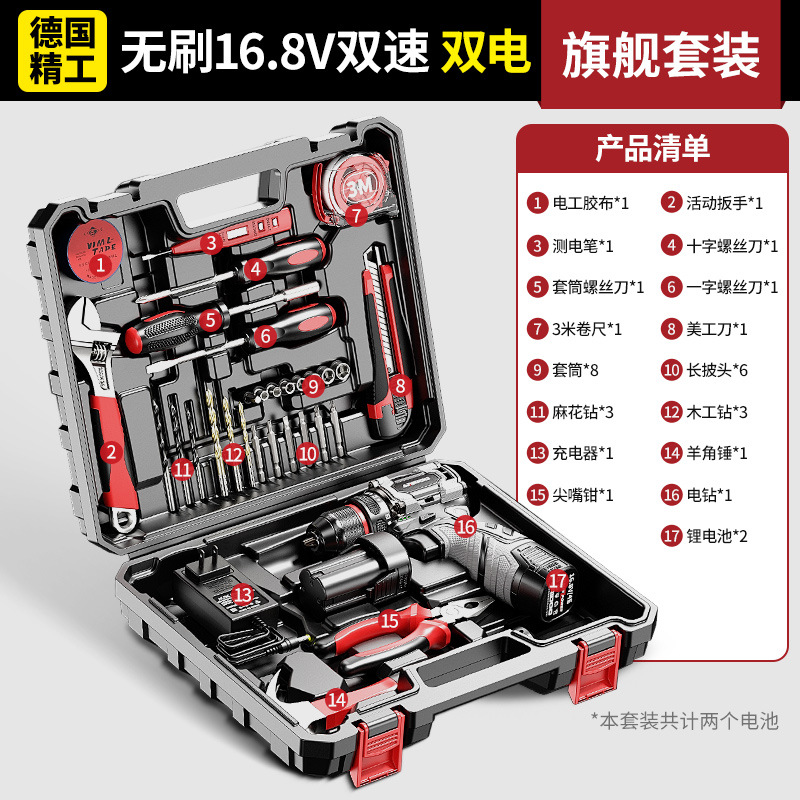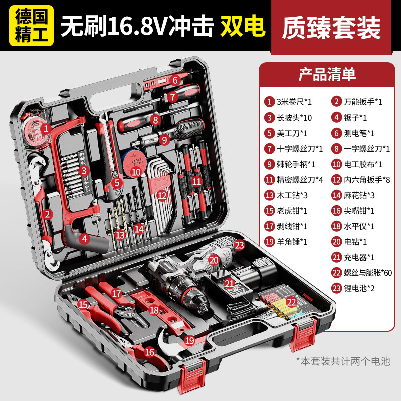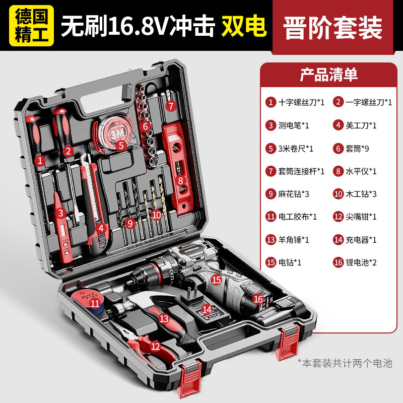 충전식 브러시리스 리튬 전기 드릴 다기능 전기 충격 드릴 가정용 세트 드라이버 다기능 도구 상자