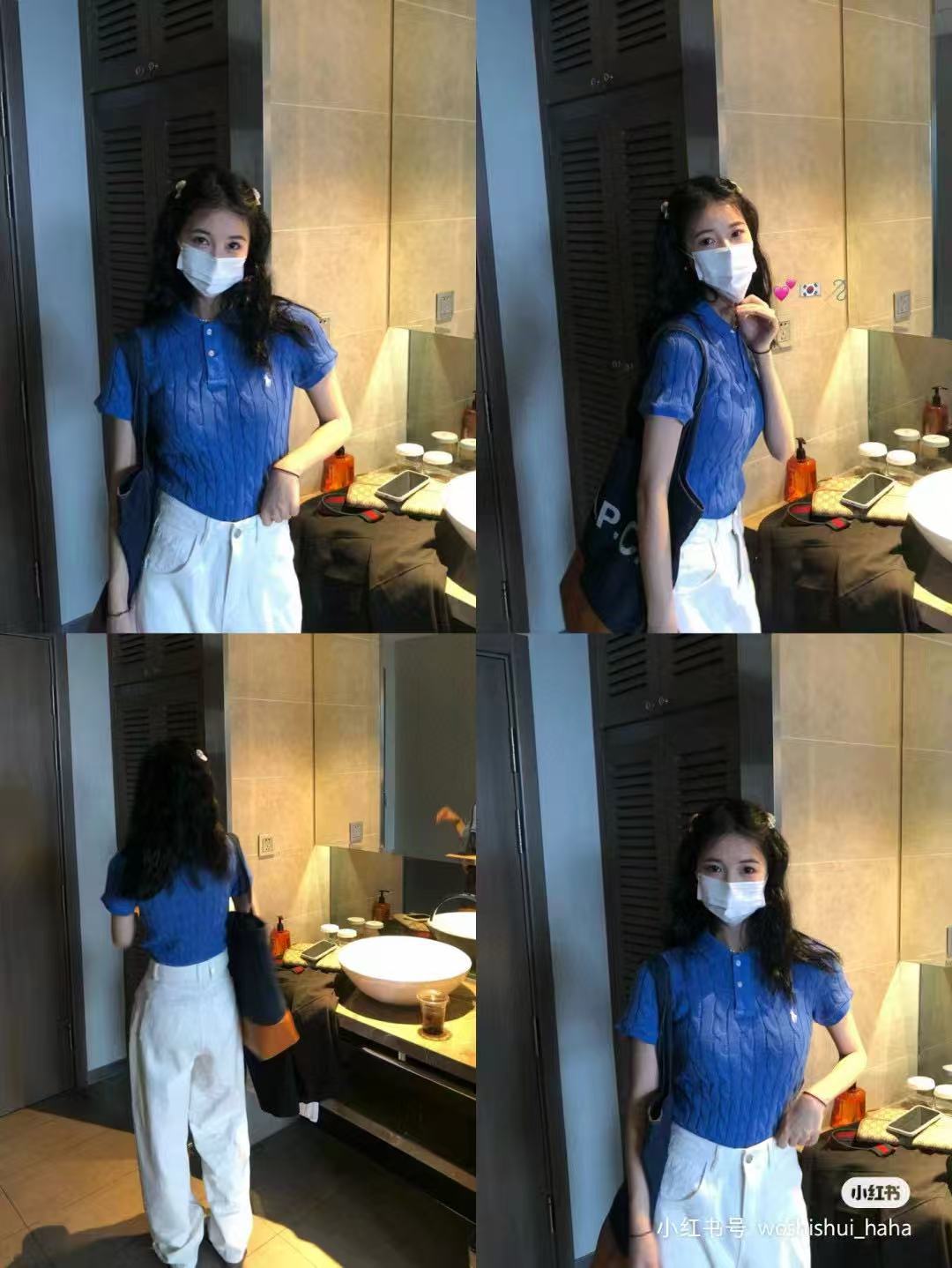 스윕 코드 하이 퀄리티 Ma 표준 POLO 옷깃 니트 짧은 소매 트위스트 옷깃 티셔츠 재킷 여성 머리카락 세대스토어 가기