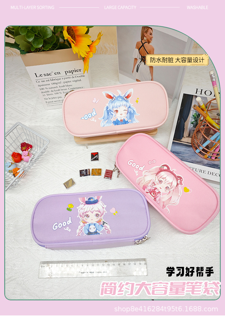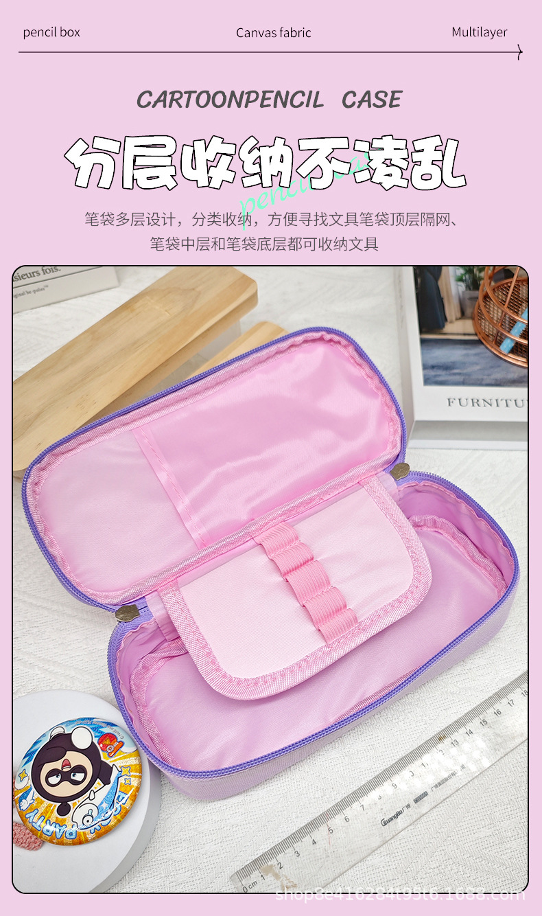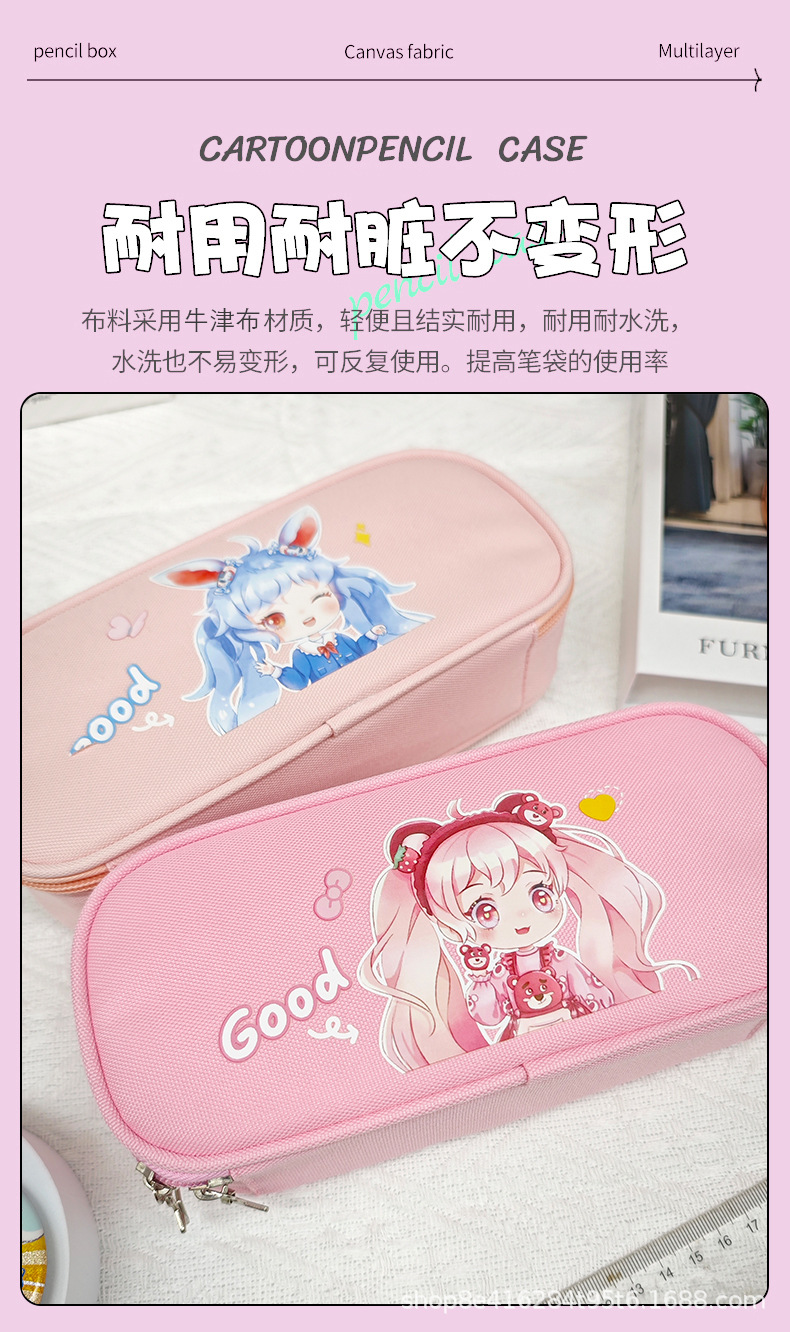 더블 레이어 대용량 연필 가방 학생 문구 가방 간단한 만화 옥스포드 헝겊 문구 상자 연필 케이스 도매스토어 가기