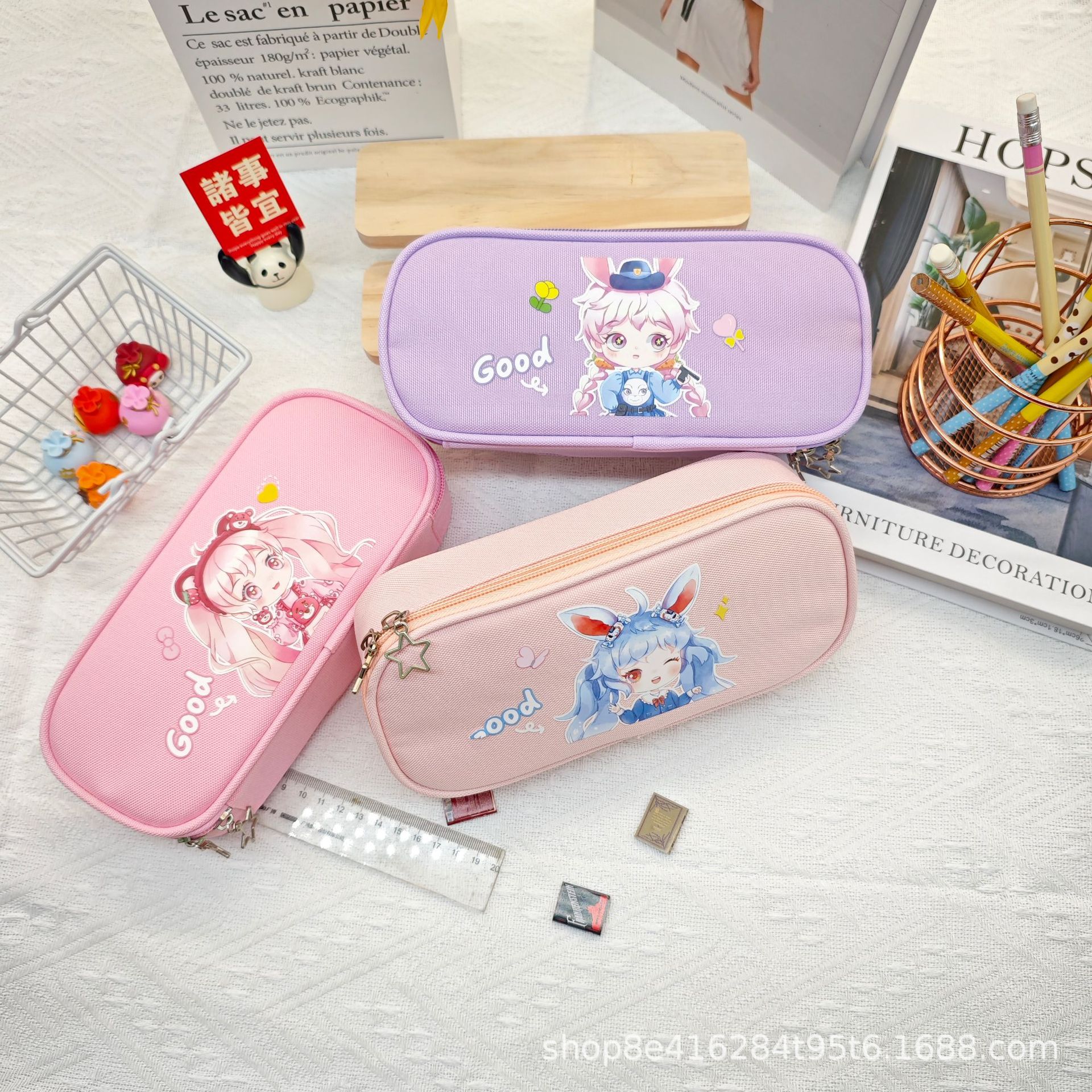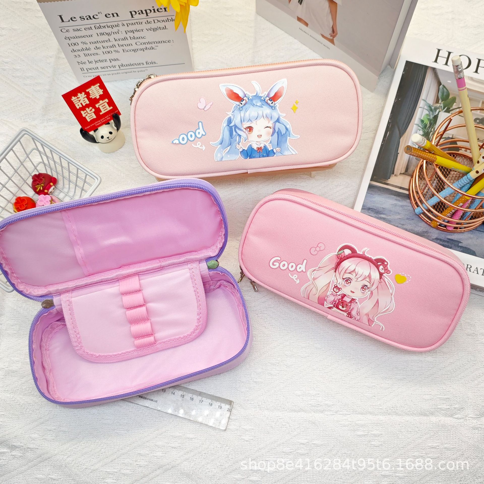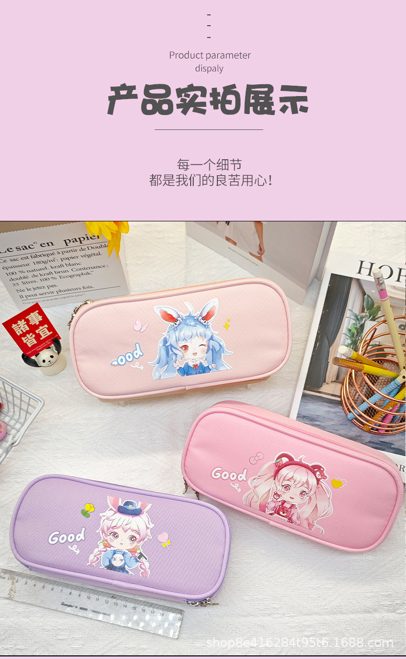 더블 레이어 대용량 연필 가방 학생 문구 가방 간단한 만화 옥스포드 헝겊 문구 상자 연필 케이스 도매스토어 가기