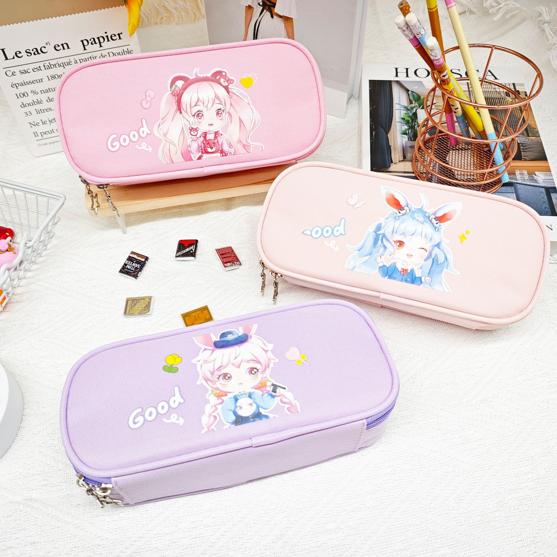 더블 레이어 대용량 연필 가방 학생 문구 가방 간단한 만화 옥스포드 헝겊 문구 상자 연필 케이스 도매
